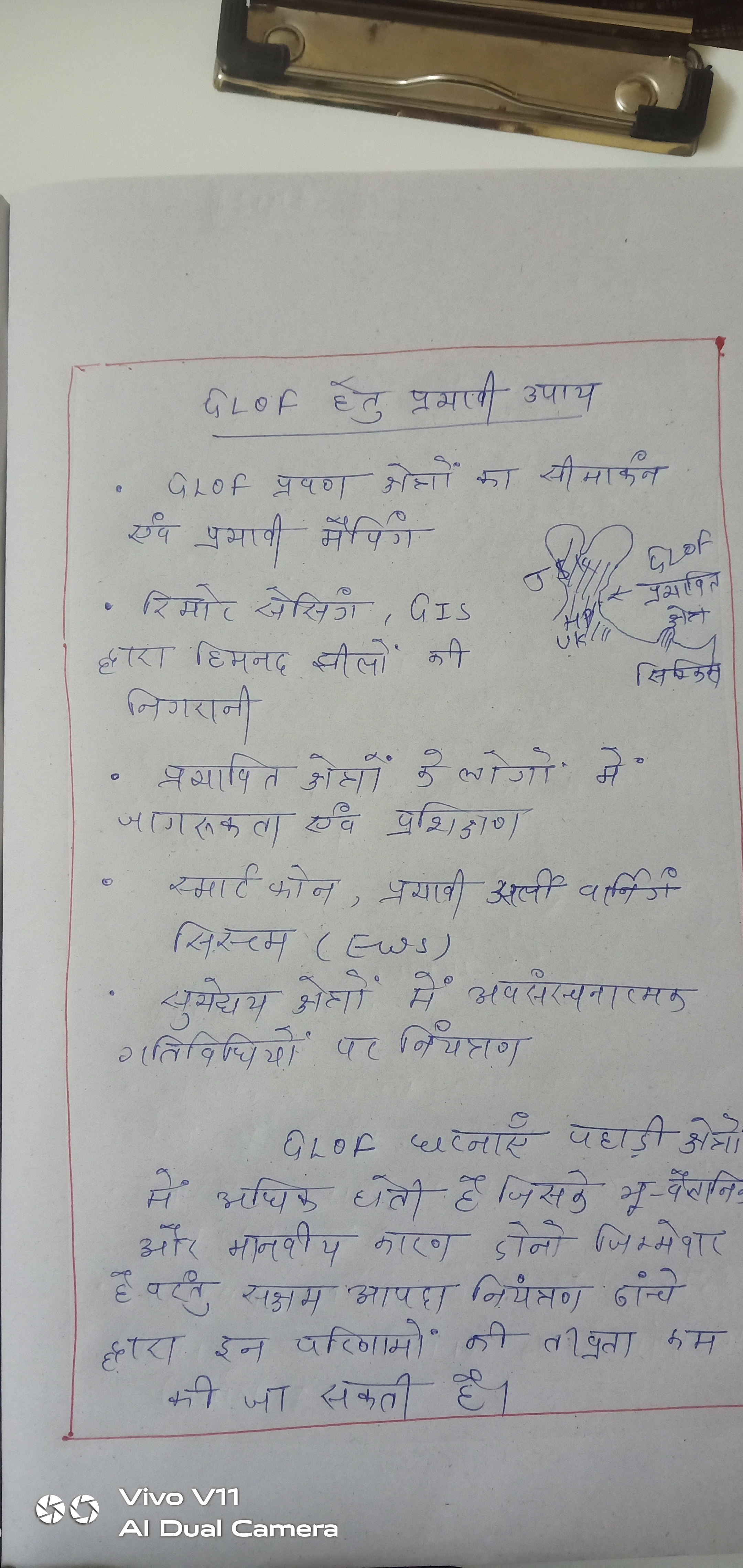 - ऐसे उपाय सुझाएं जो ग्लेशियल लेक आउटबर्स्ट फ्लड के प्रभाव को कम करने के लिए उठाए जा सकते हैं।