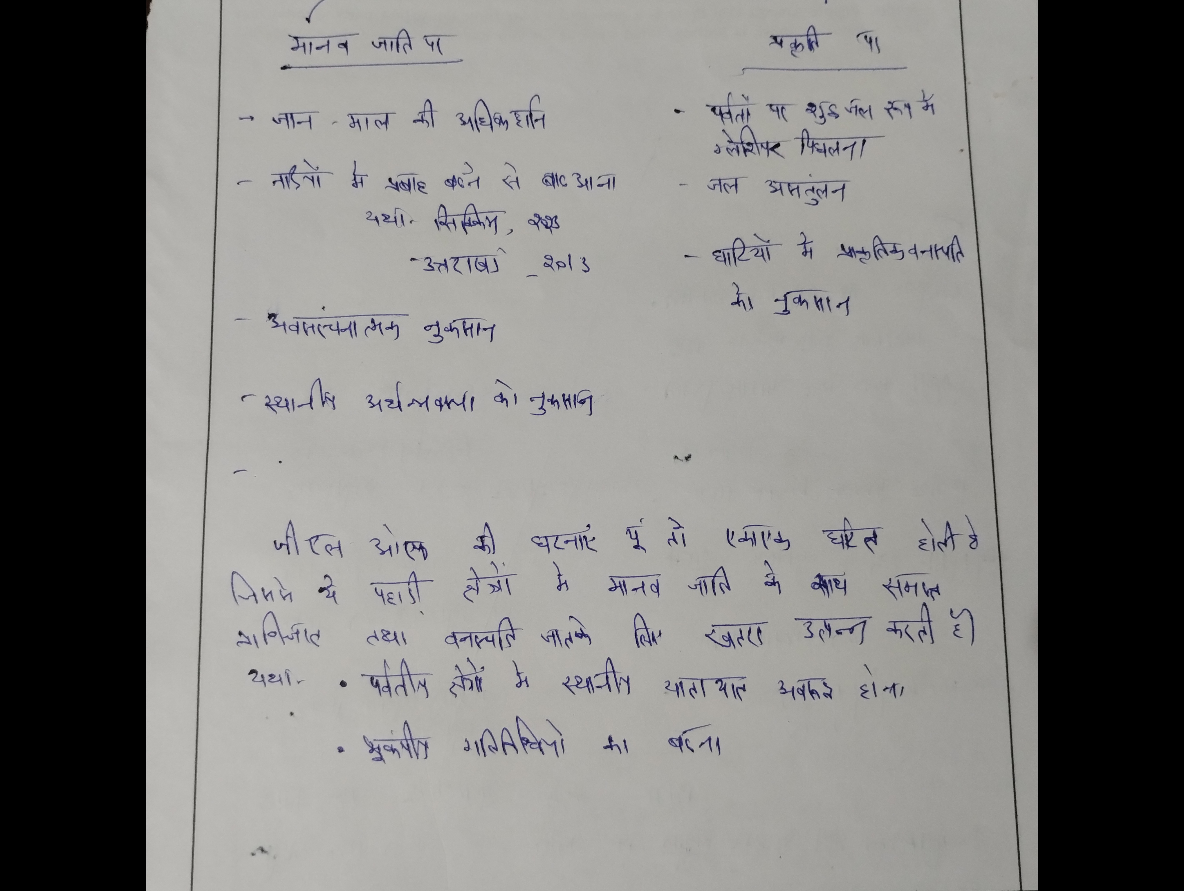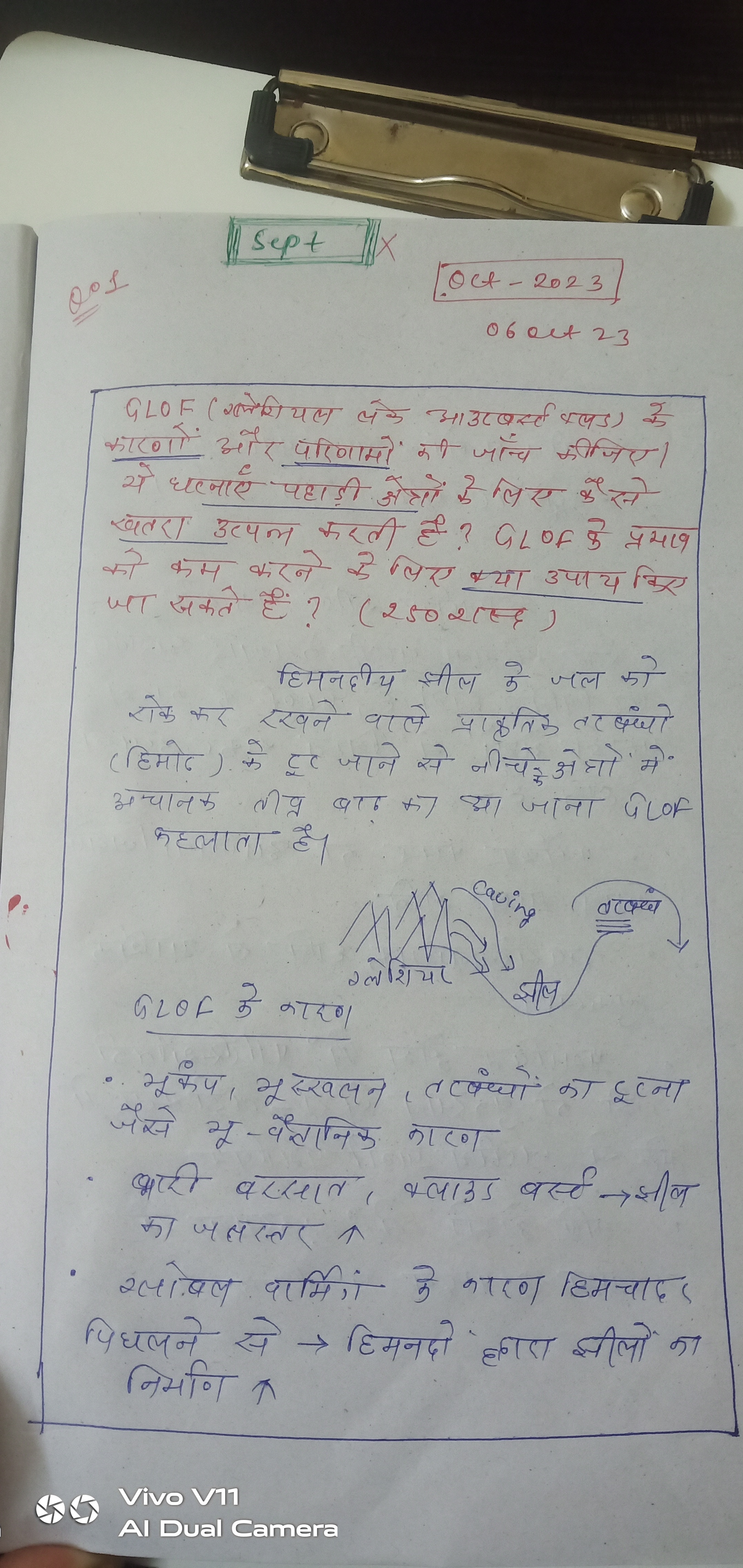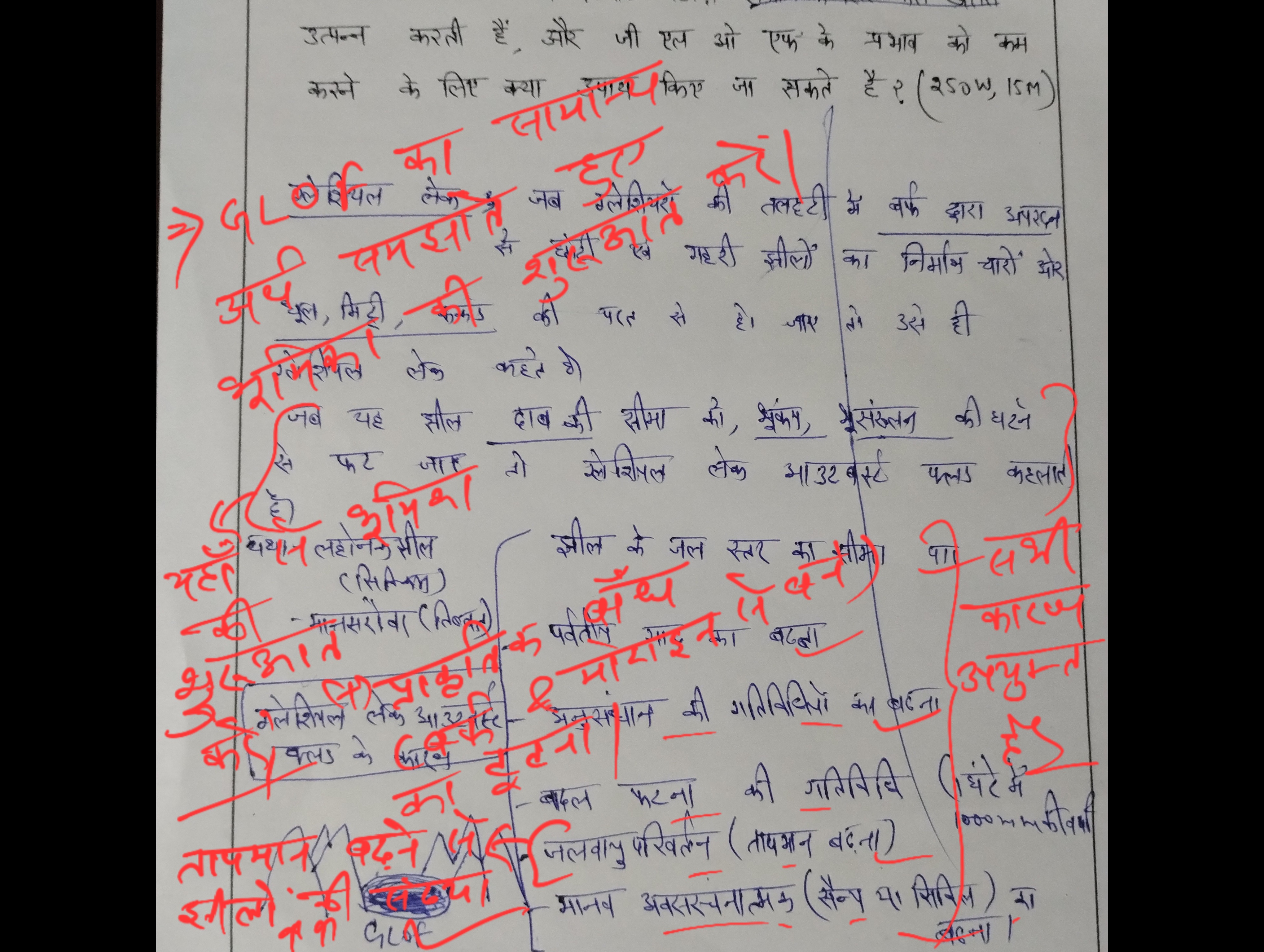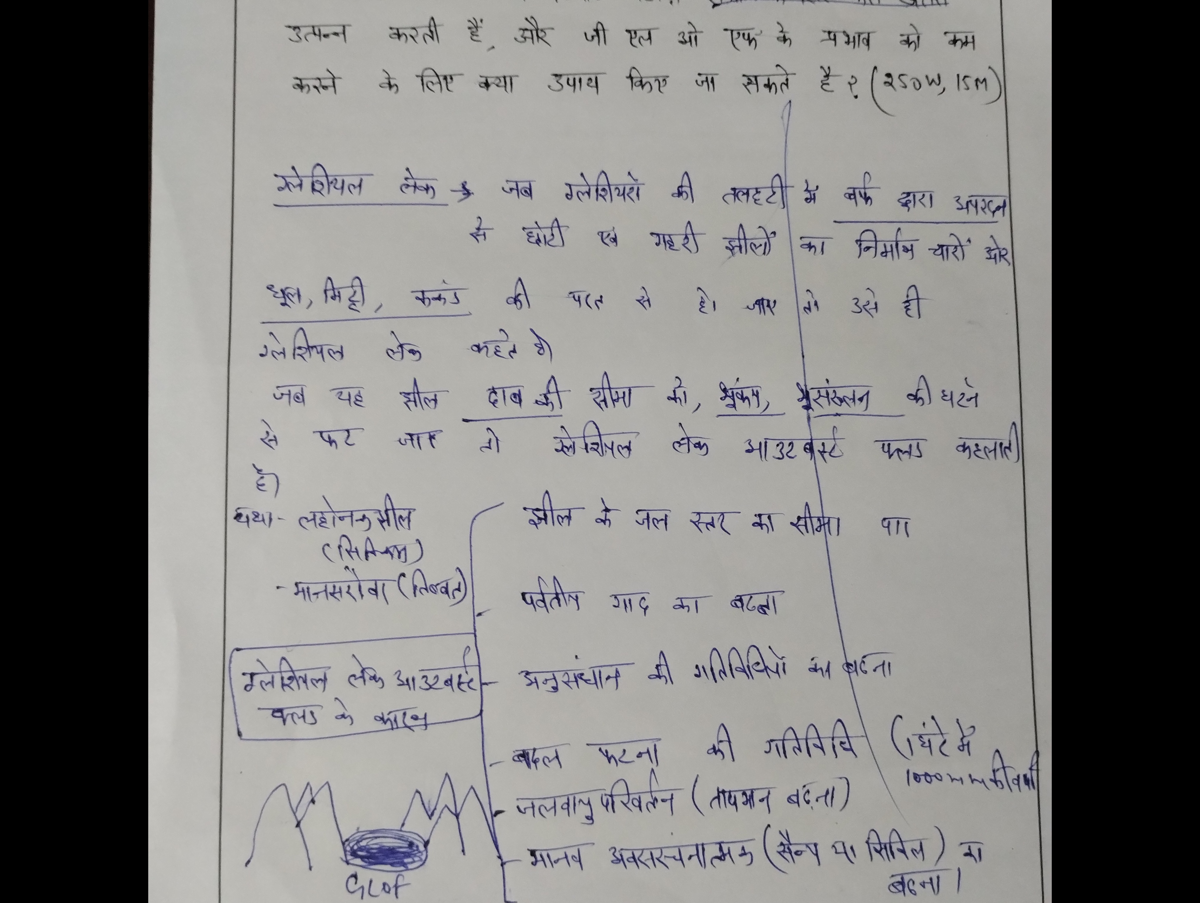 - ग्लेशियल लेक आउटबर्स्ट फ्लड के कारणों पर चर्चा कीजिए।