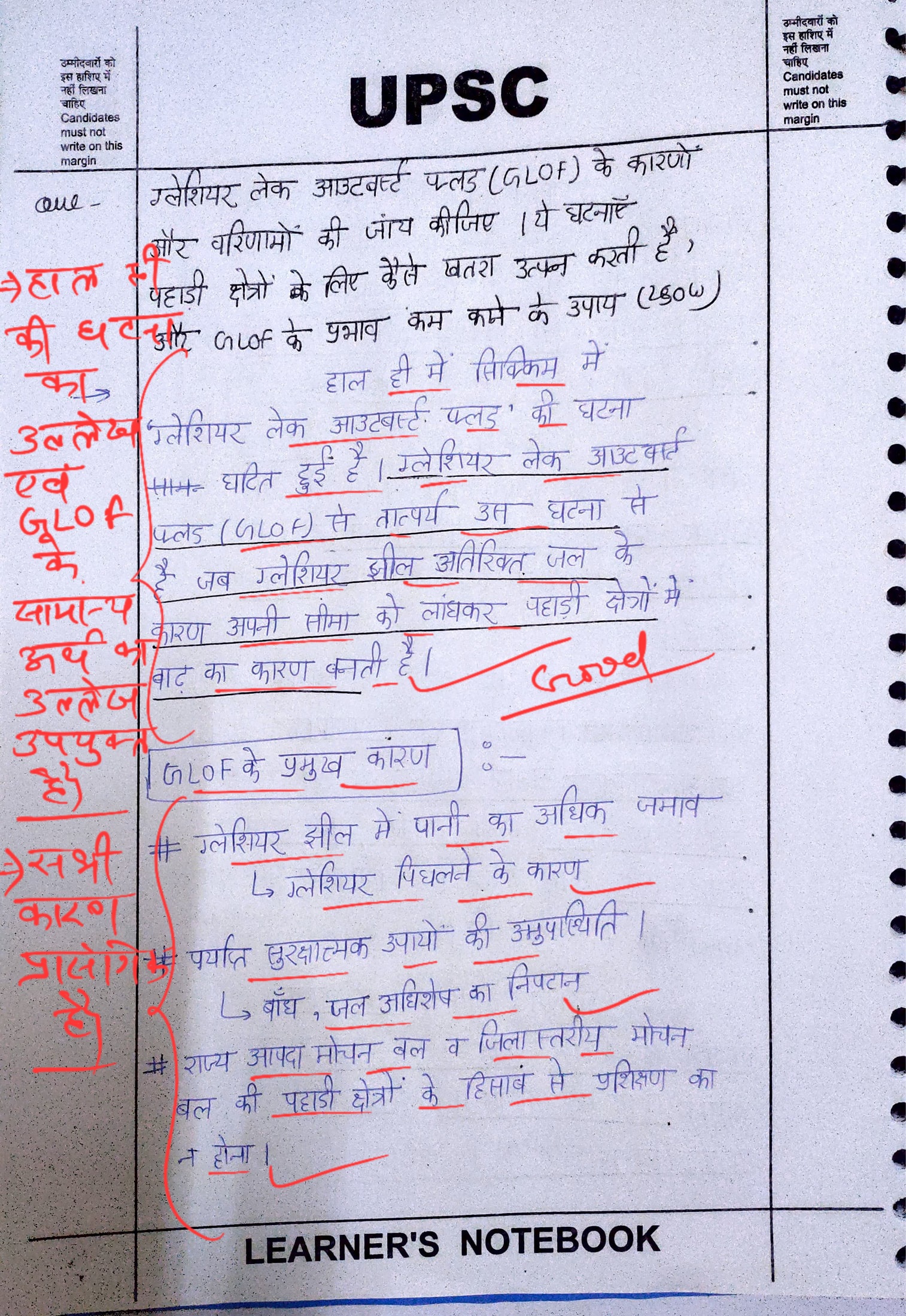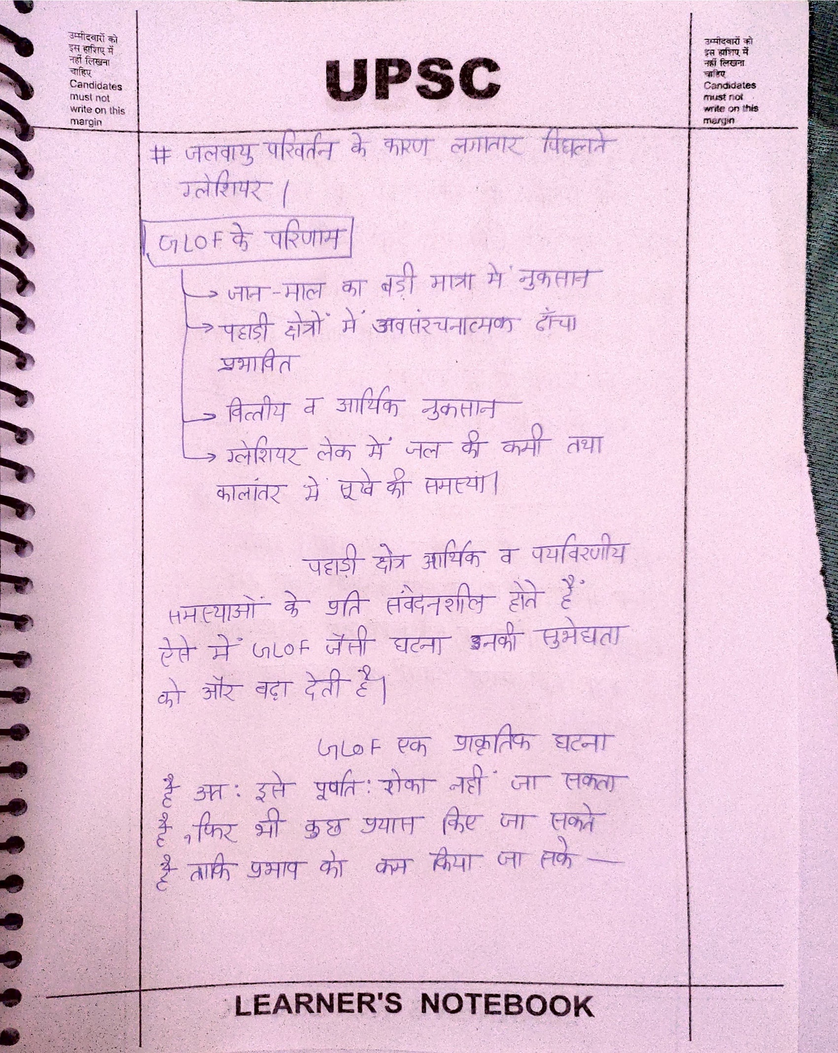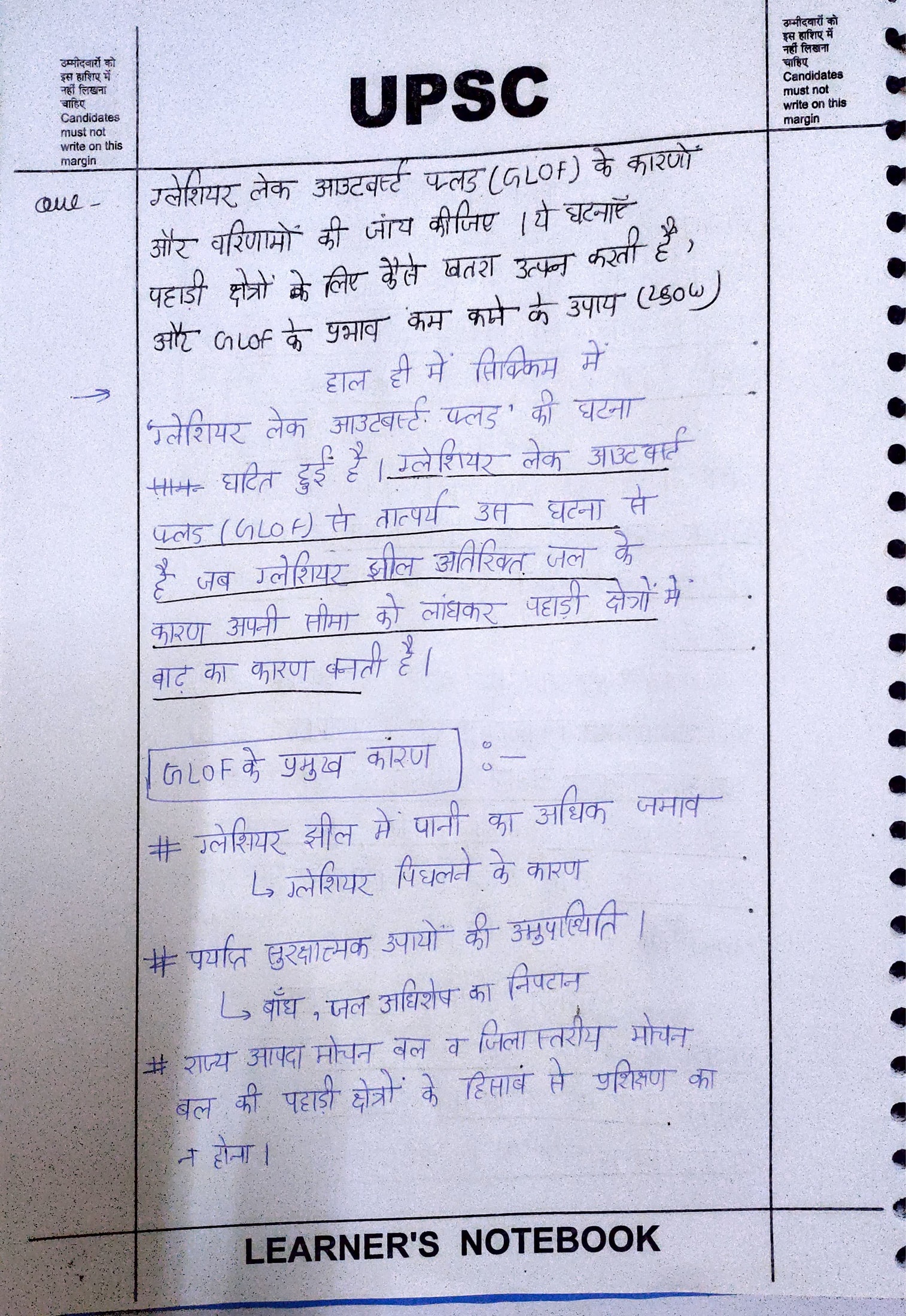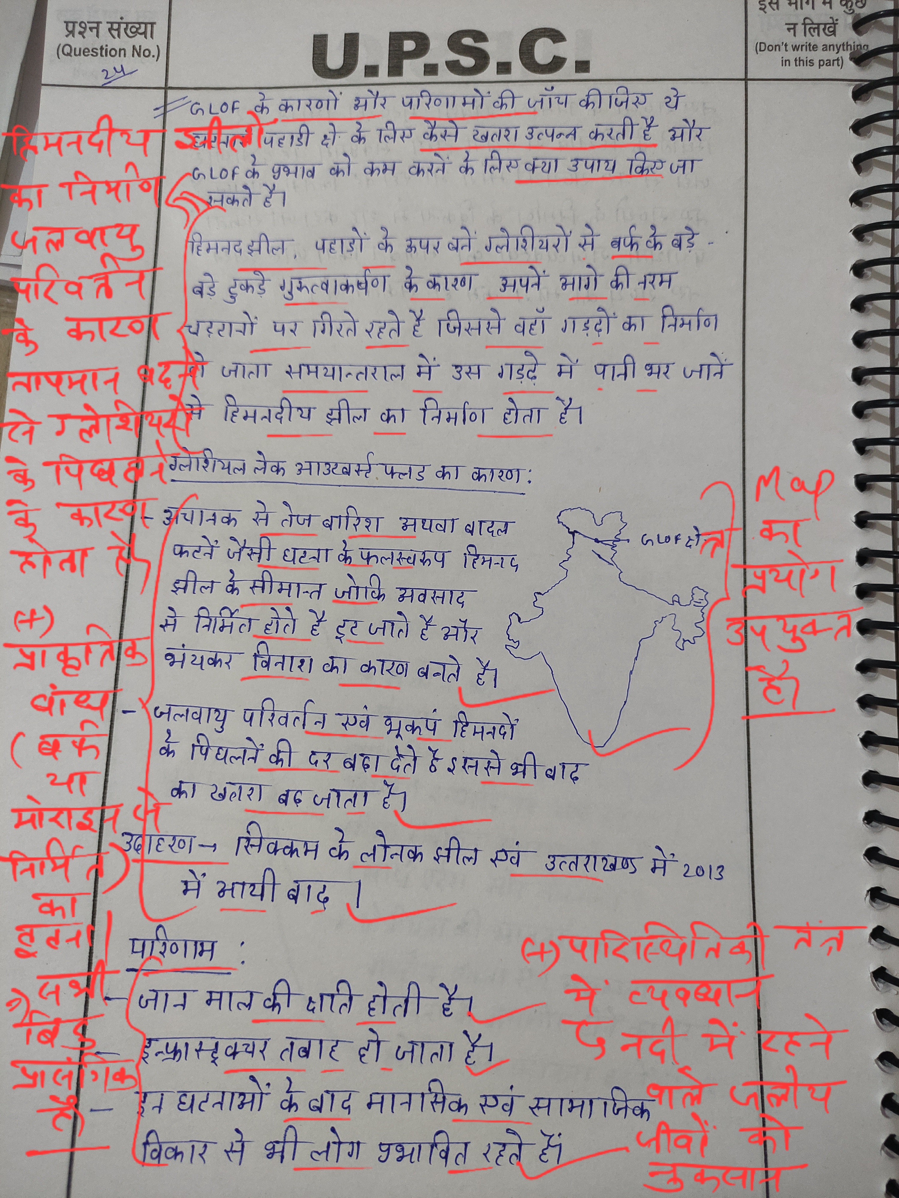 - परिचय: ग्लेशियल लेक आउटबर्स्ट फ्लड (Glacial Lake Outburst Floods) को परिभाषित कीजिए। जलवायु परिवर्तन और हाल की घटनाओं के मद्देनजर इनकी बढ़ती संख्या पर प्रकाश डालिए।
