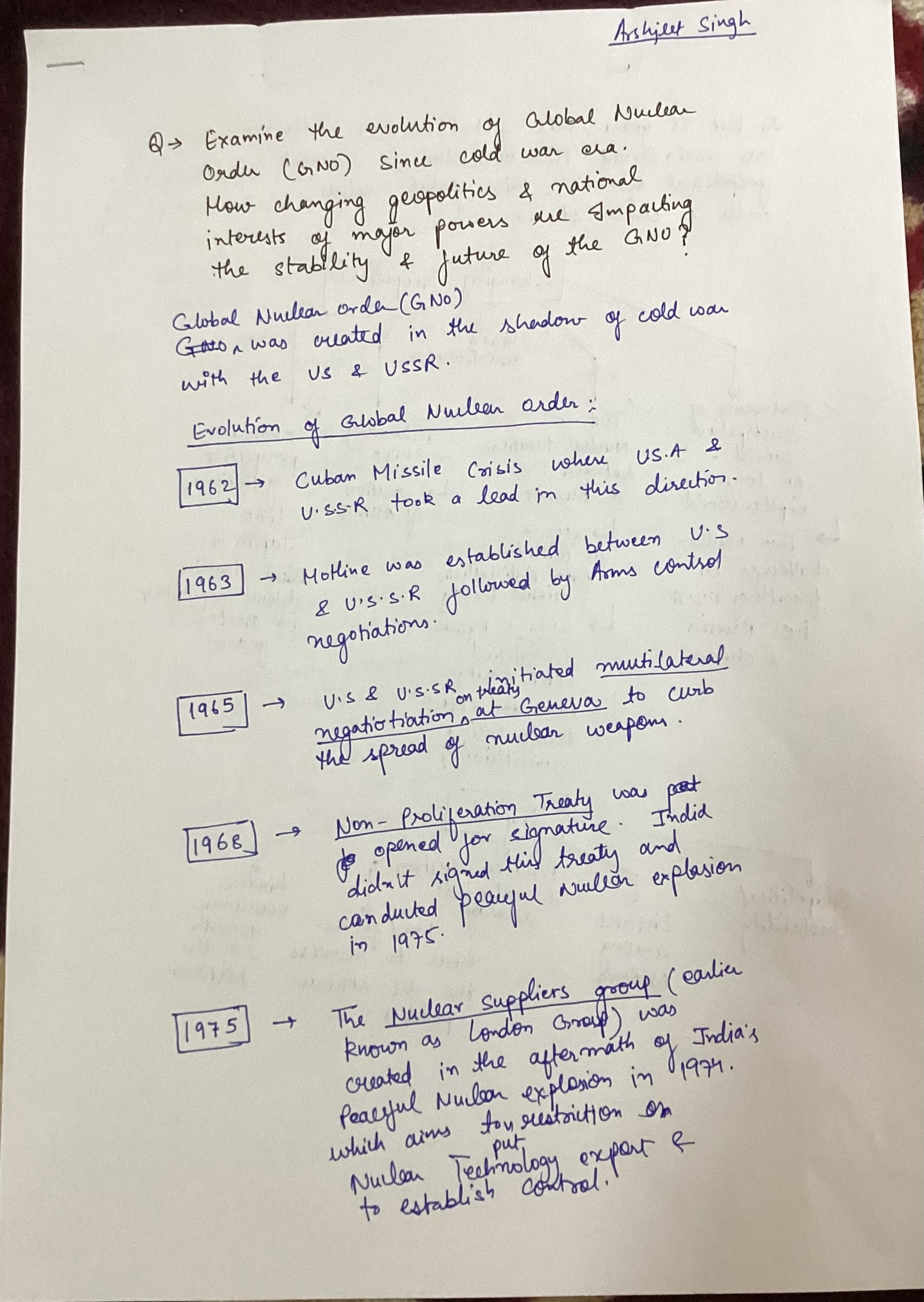 - Introduction: Set the context by explaining the establishment of the Global Nuclear Order (GNO) during the Cold War, aimed at mitigating nuclear dangers and preventing the proliferation of nuclear weapons.