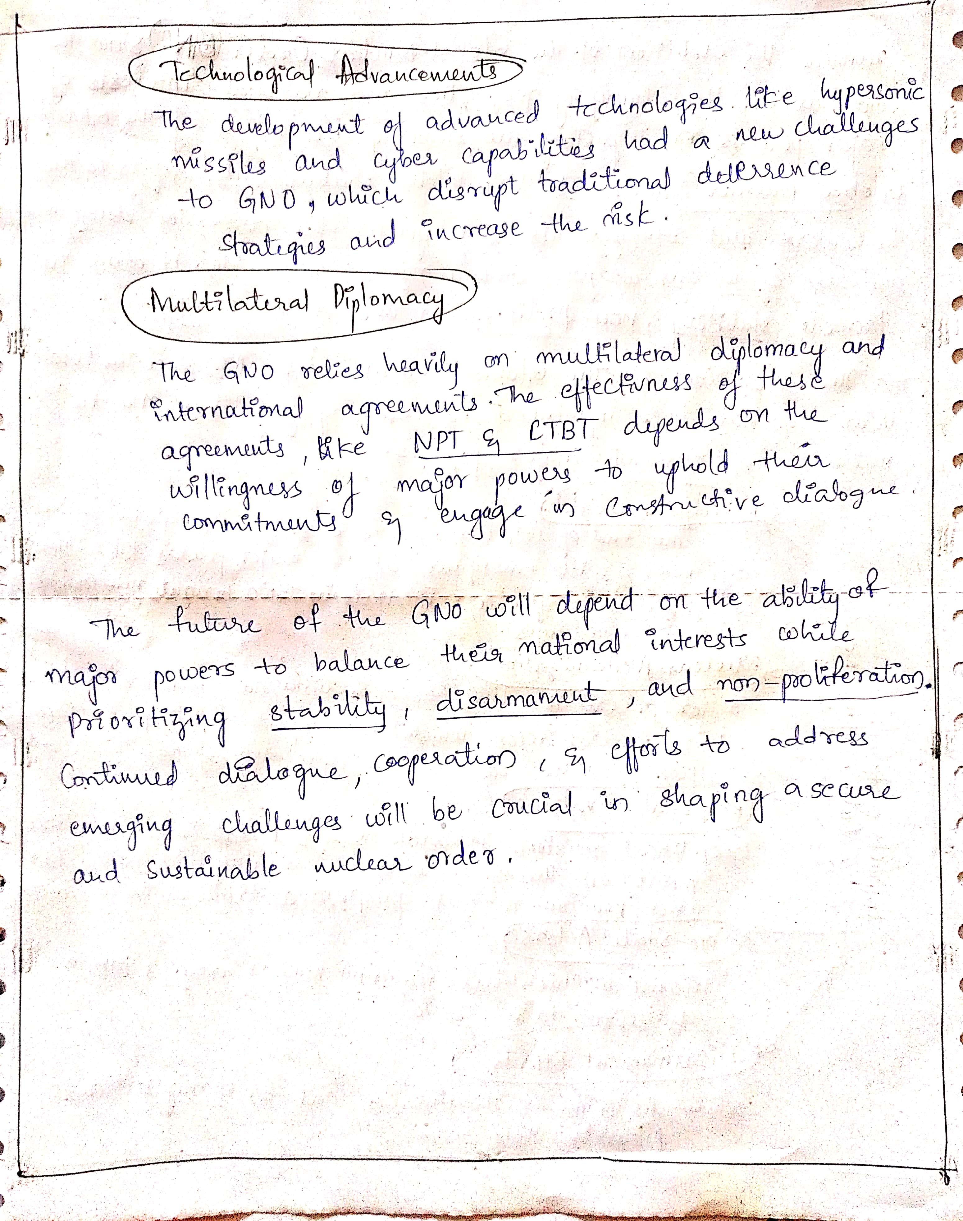 - Analyze how recent geopolitical changes and national interests of major powers have impacted the stability of the GNO, including the strain on arms control models and the deteriorating non-proliferation environment.