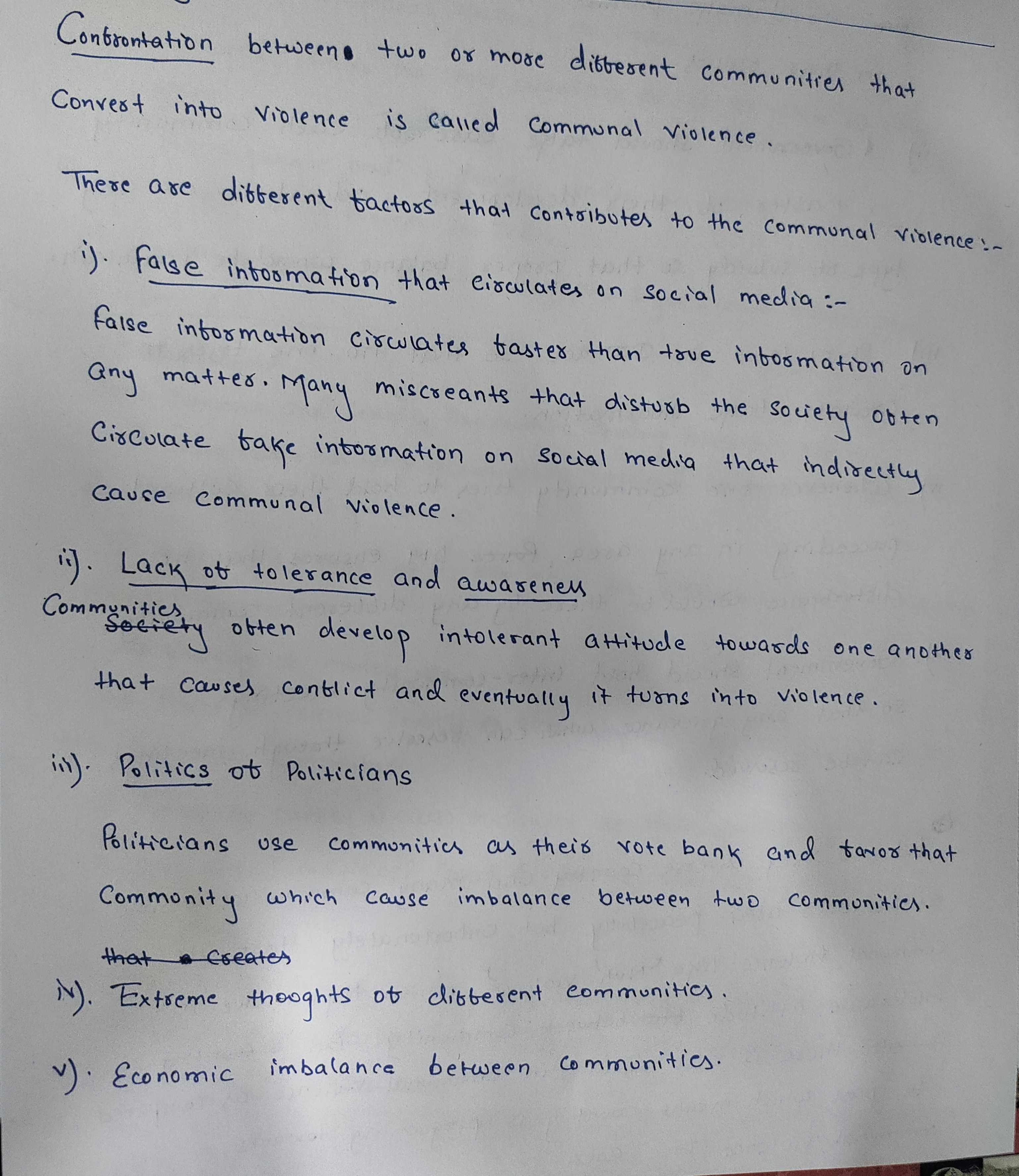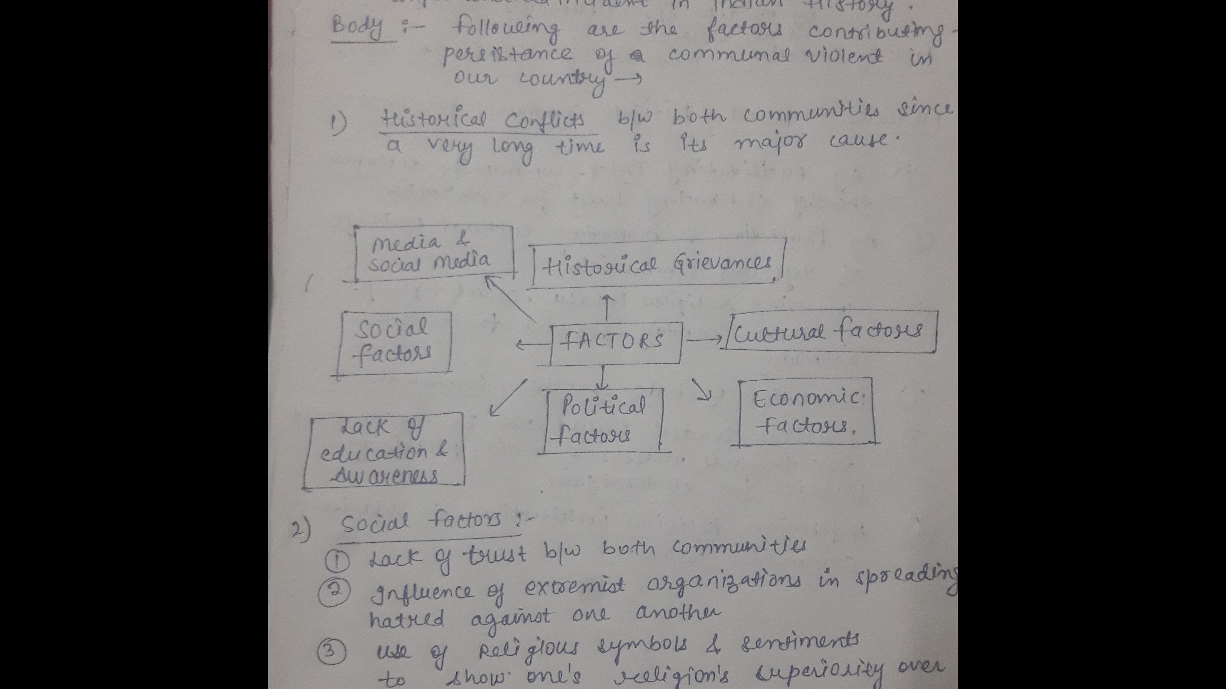 - Briefly enumerate various reasons like historical grievances, political manipulations, economic disparities, the role of social media, and the lack of law and order.