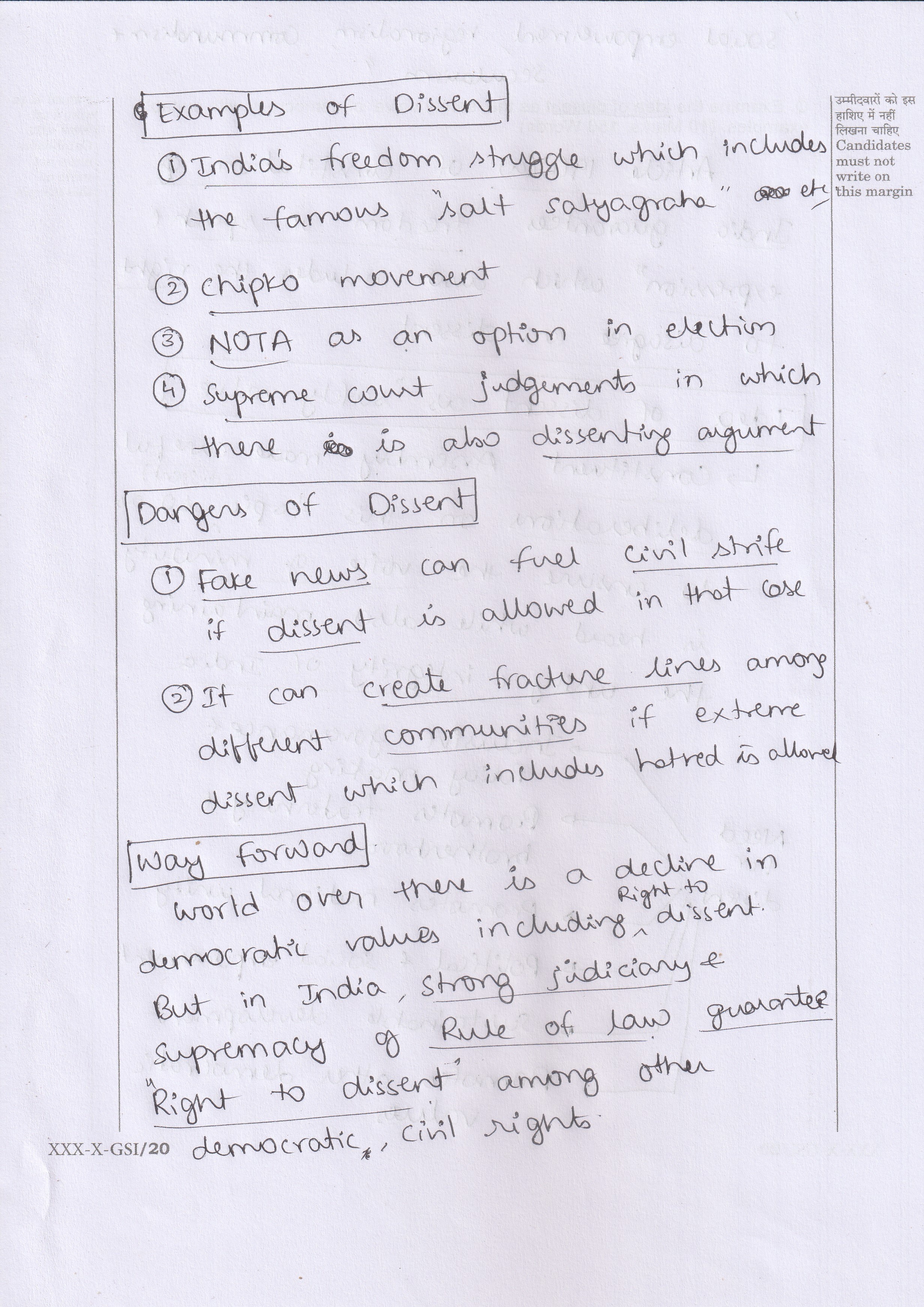 - Conclusion: Summarize by affirming the indispensability of dissent in a democracy, noting its contribution to societal progress, safeguarding freedoms, and enhancing governance through constructive criticism.
