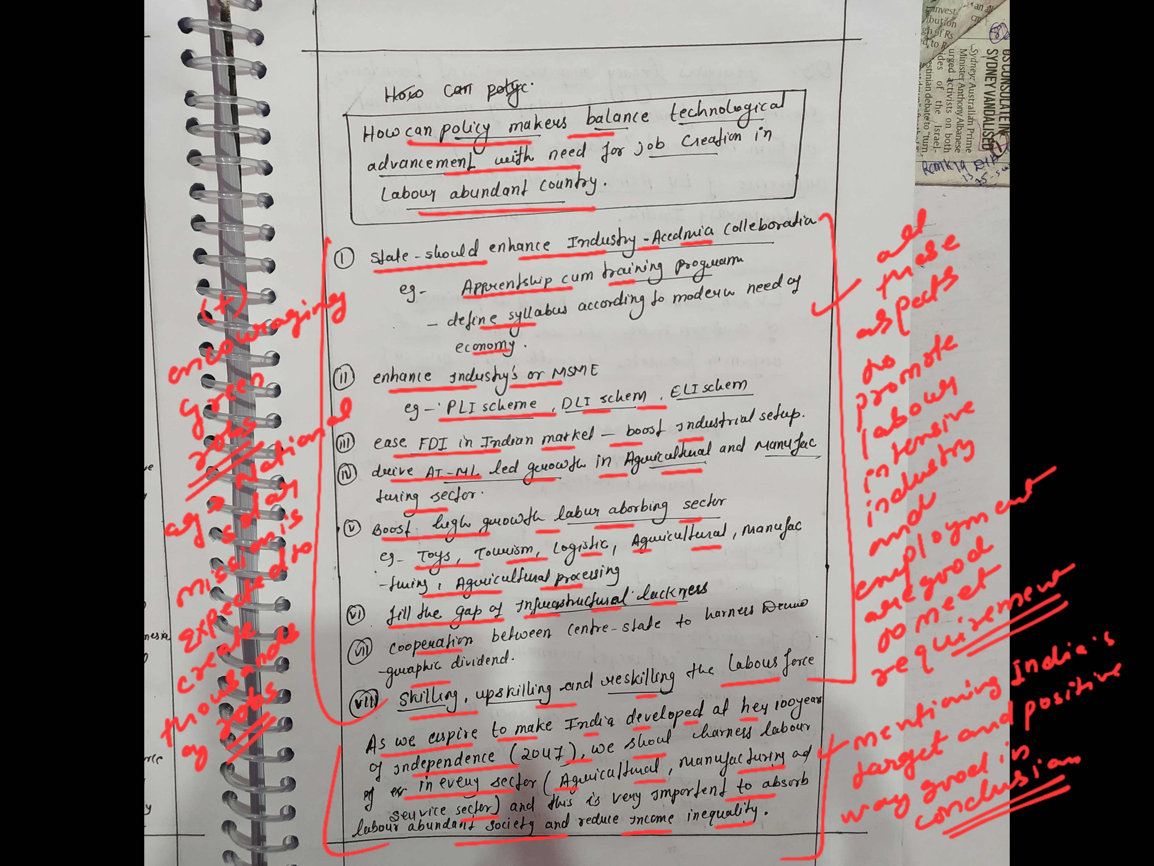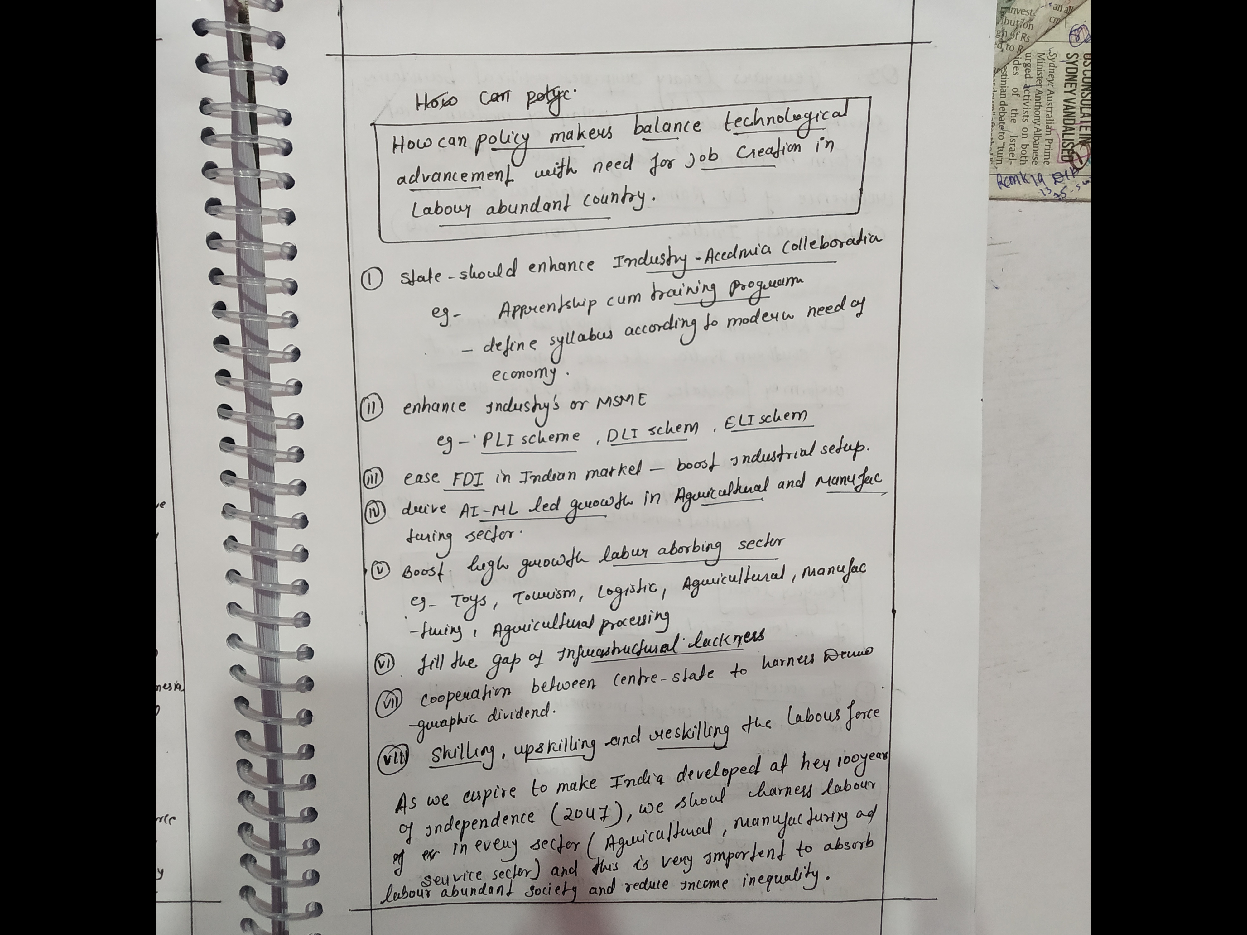- Discuss how policymakers can balance technological advancements with the need for job creation in a labour-abundant country.
