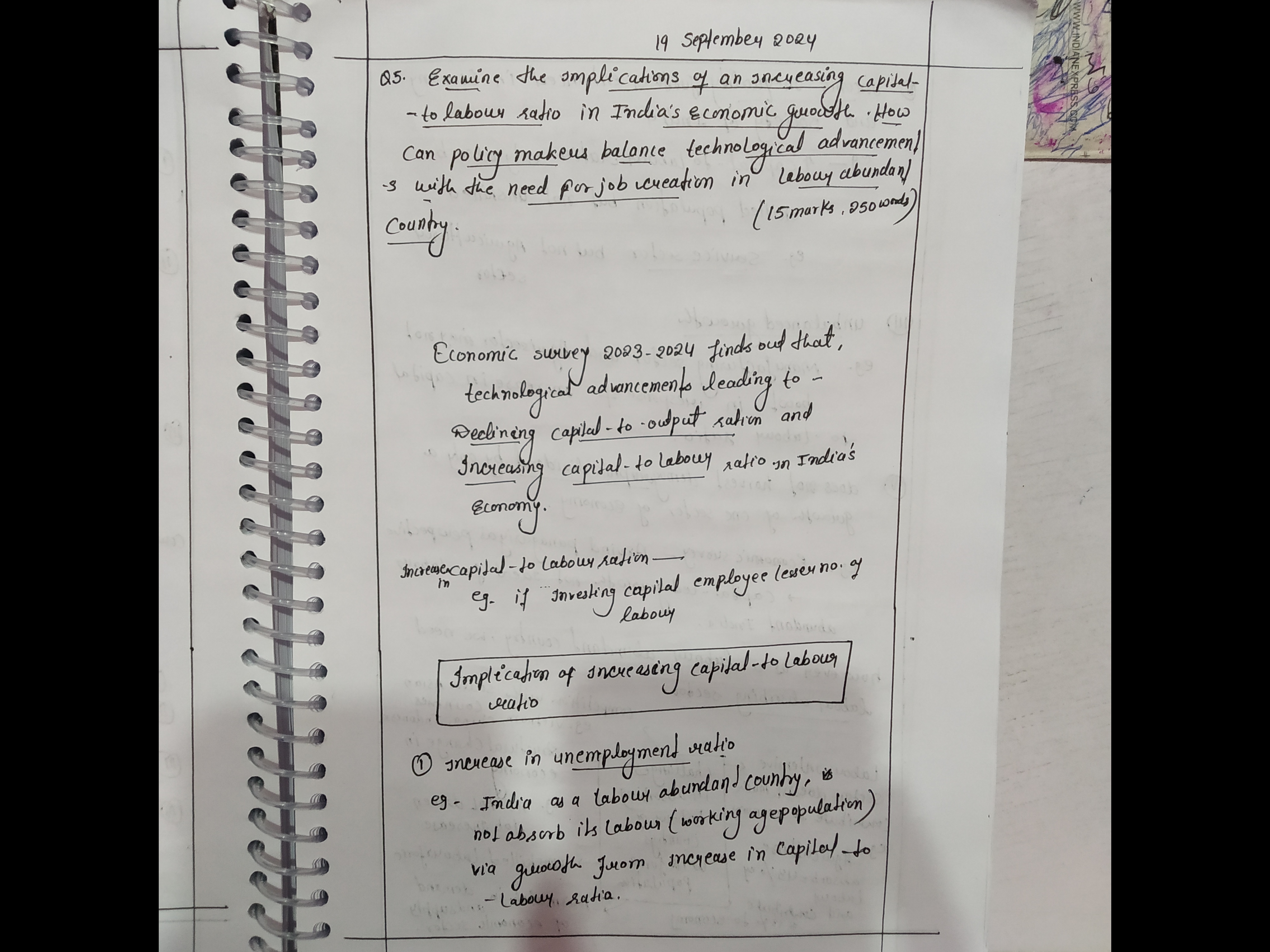 - Examine the implications of an increasing capital-to-labour ratio in India’s economic growth.
