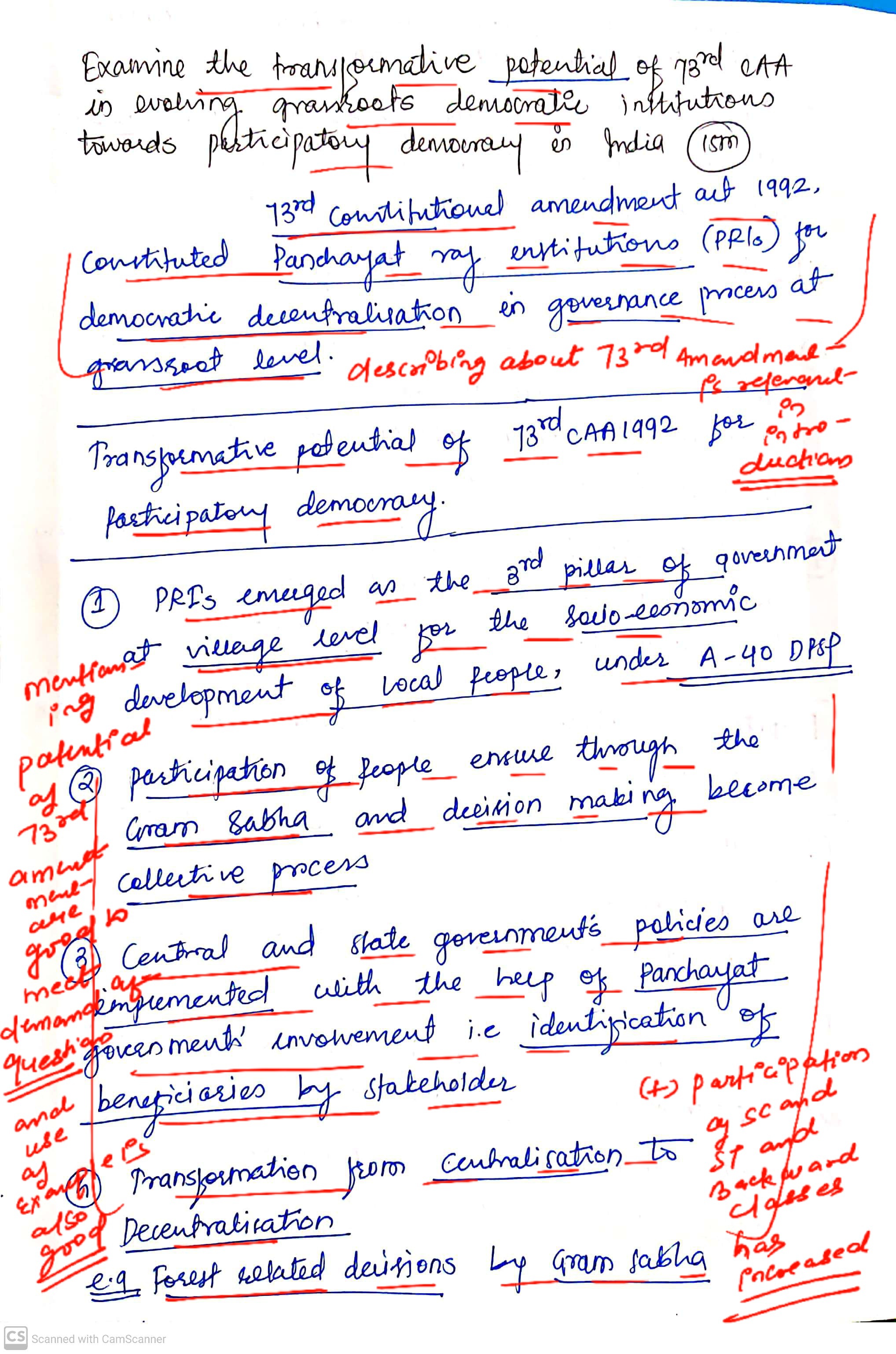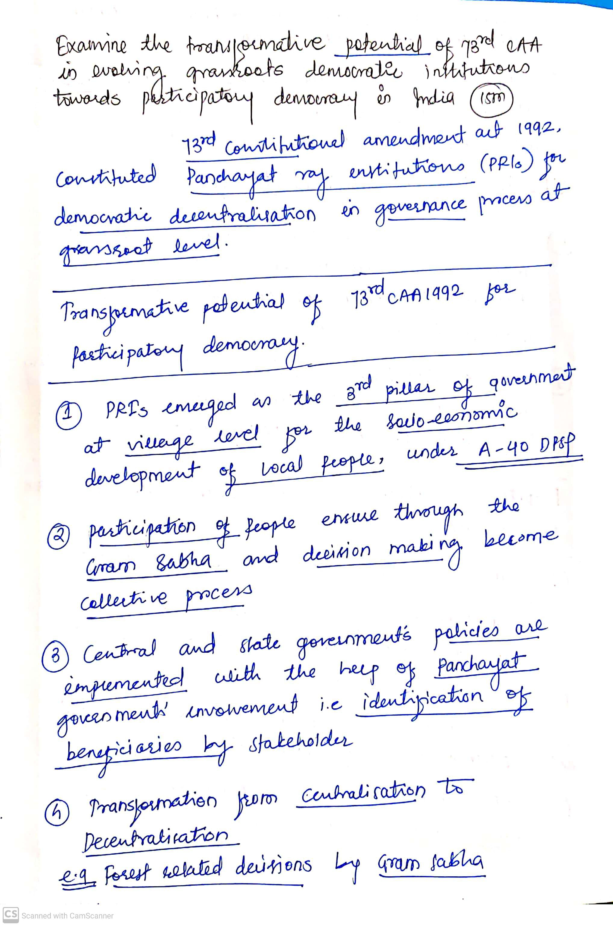 - Highlight the impact of the 73rd amendment act on grassroot institutions.