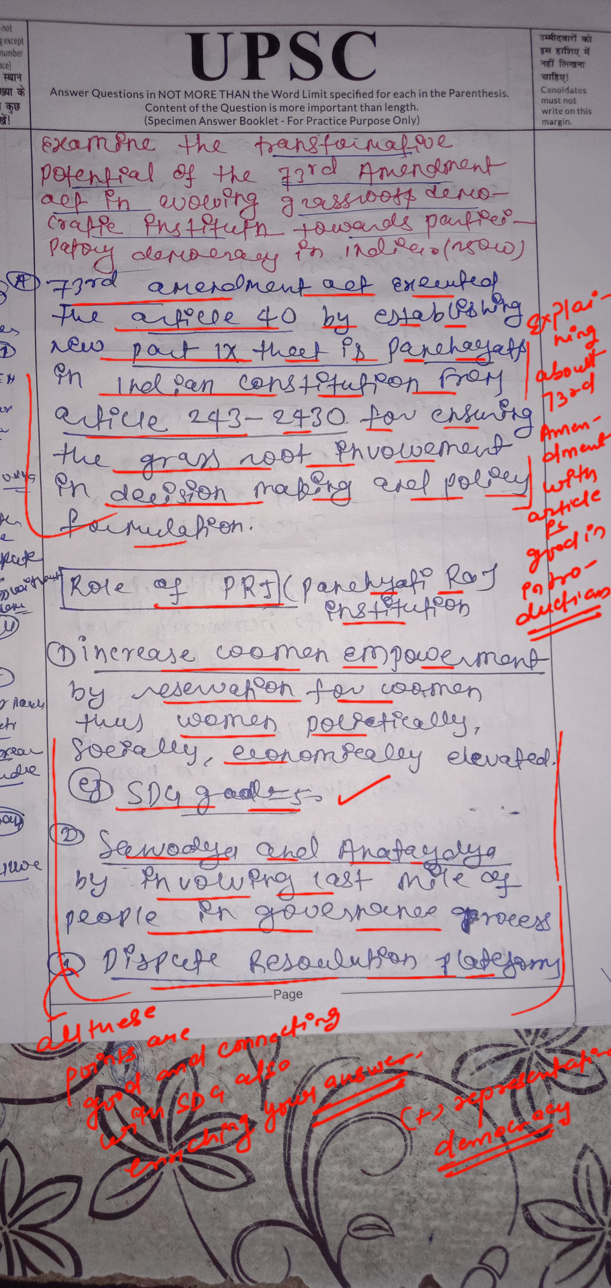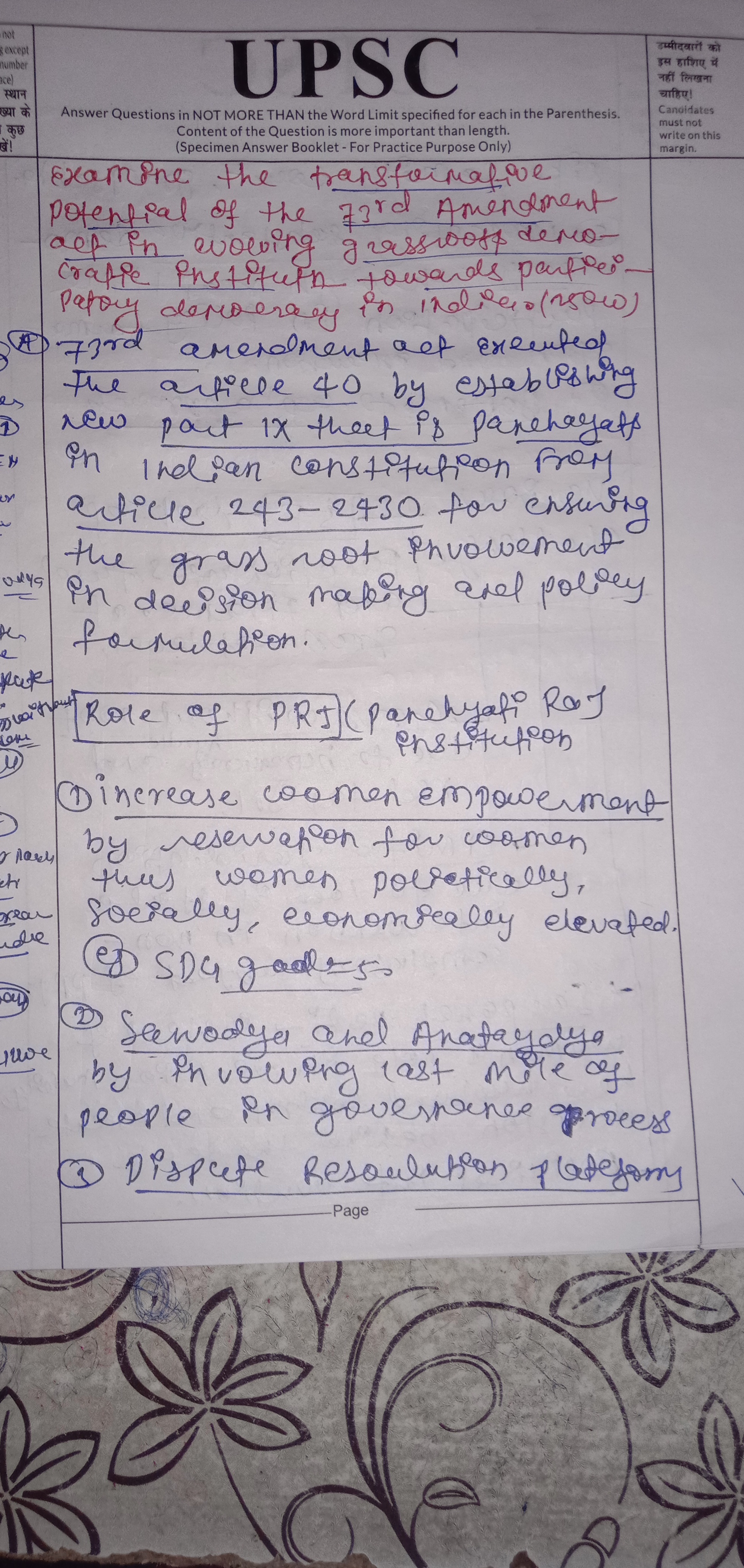 - Rural Development: By devolving 29 subjects to PRI the amendment recognizes the importance of people’s participation in the rural development process.