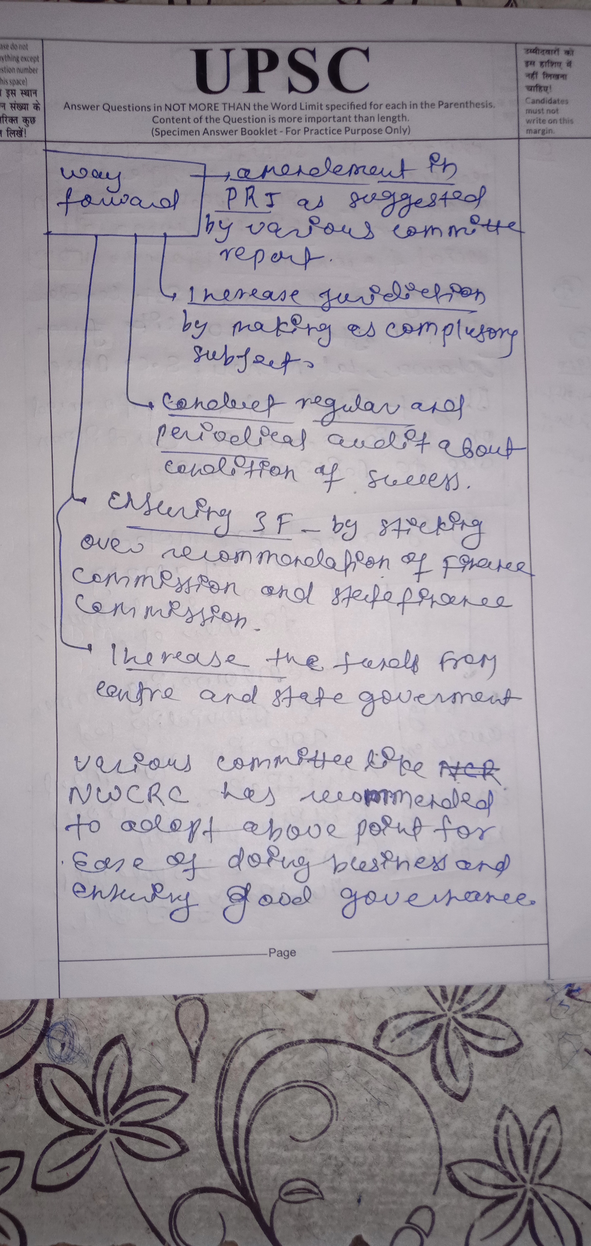 - Establish a separate cadre and provide training for dedicated functionaries in PRIs.