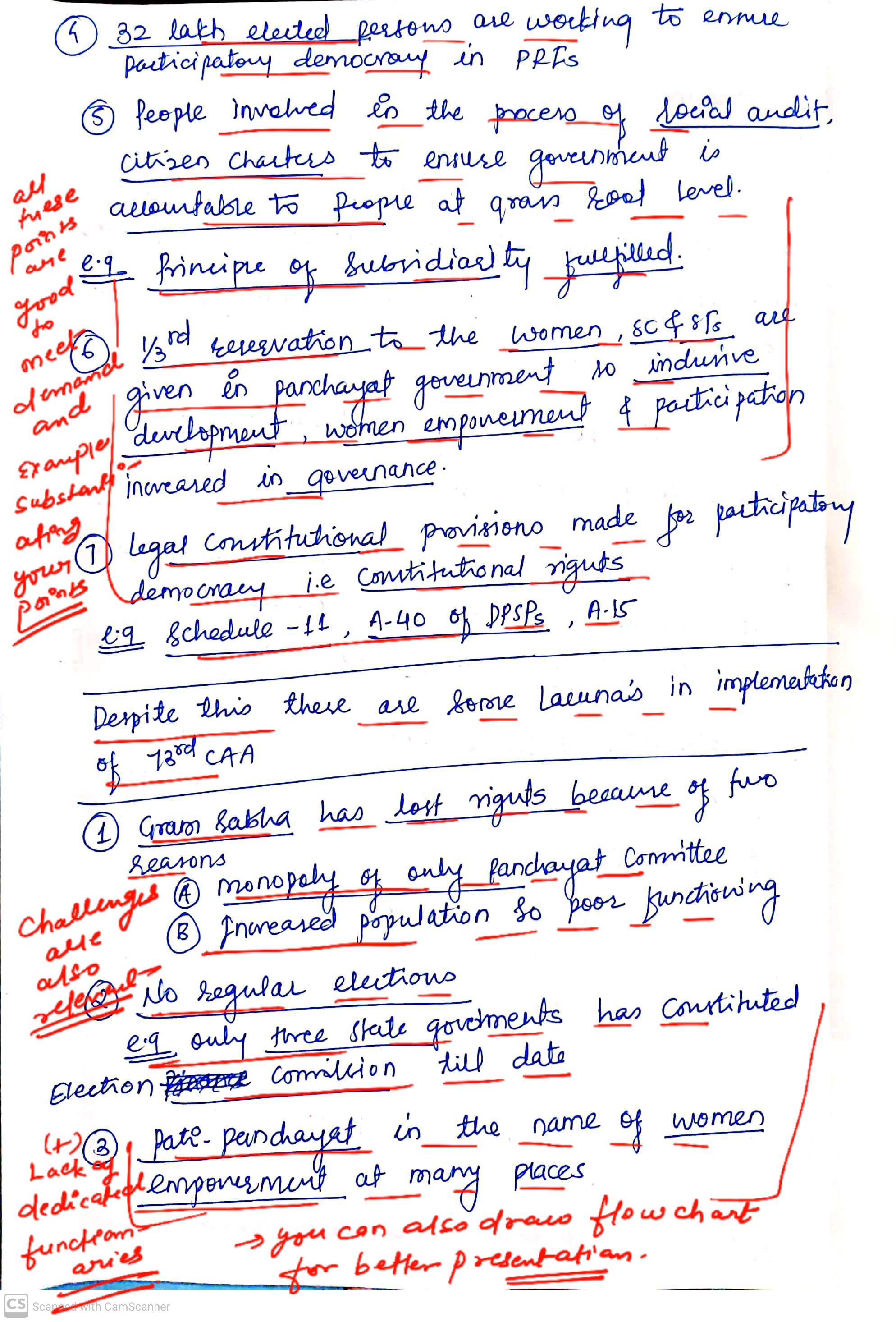 - Accountability and Transparency: in local governance through regular interactions in Gram Sabhas, social audit, promoting public scrutiny and efficient resource utilization.