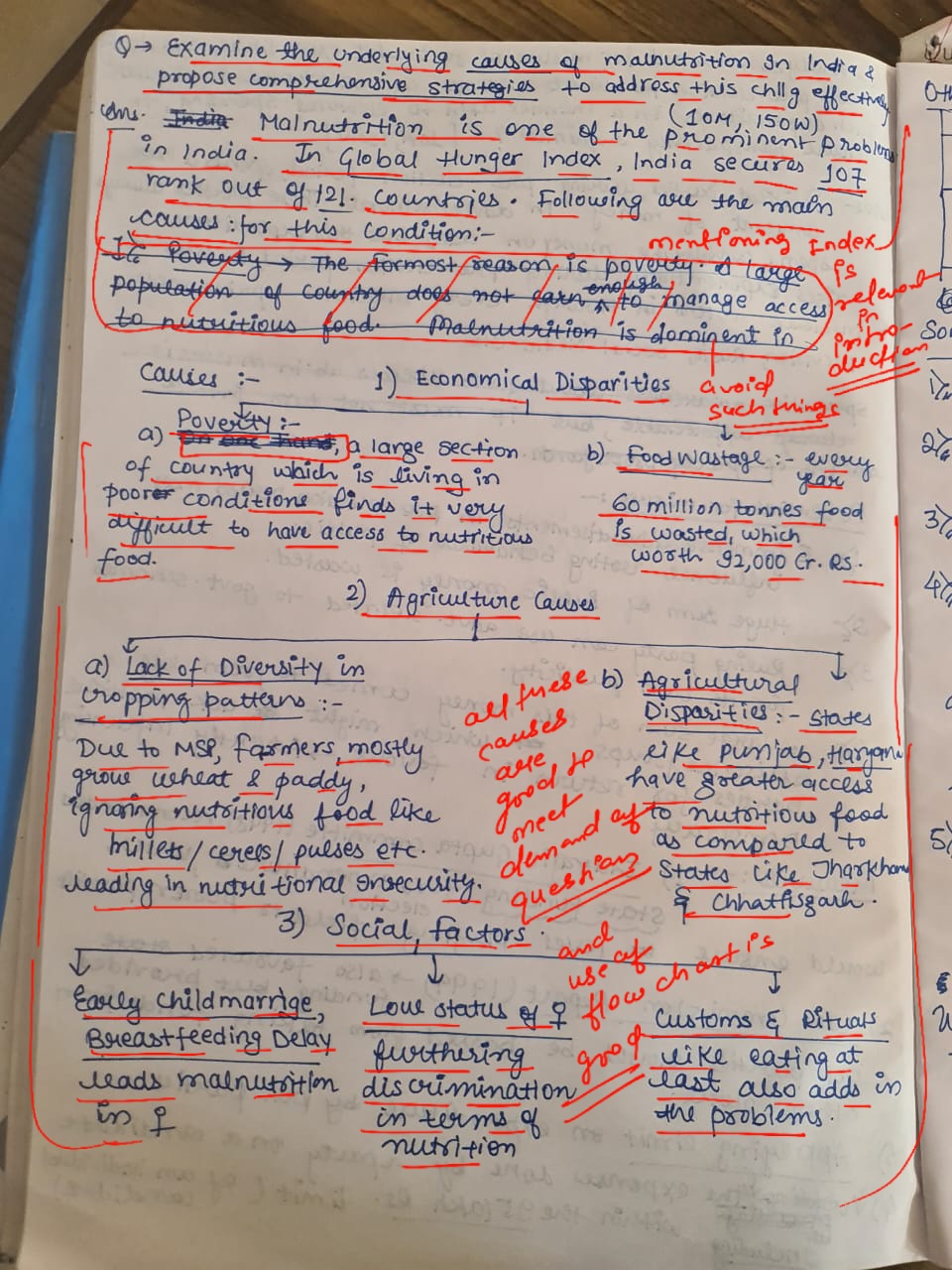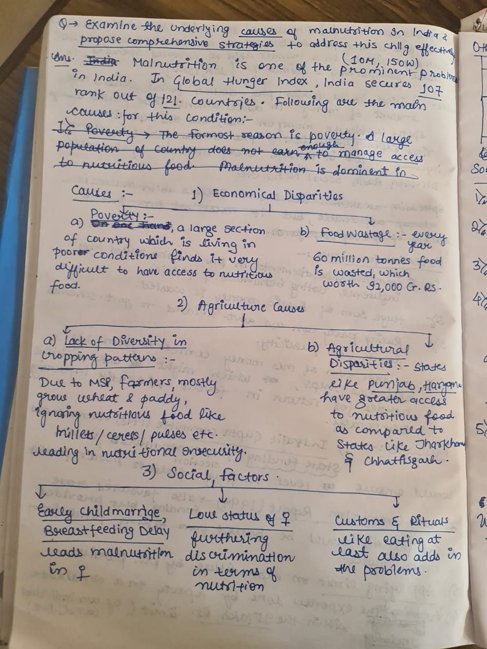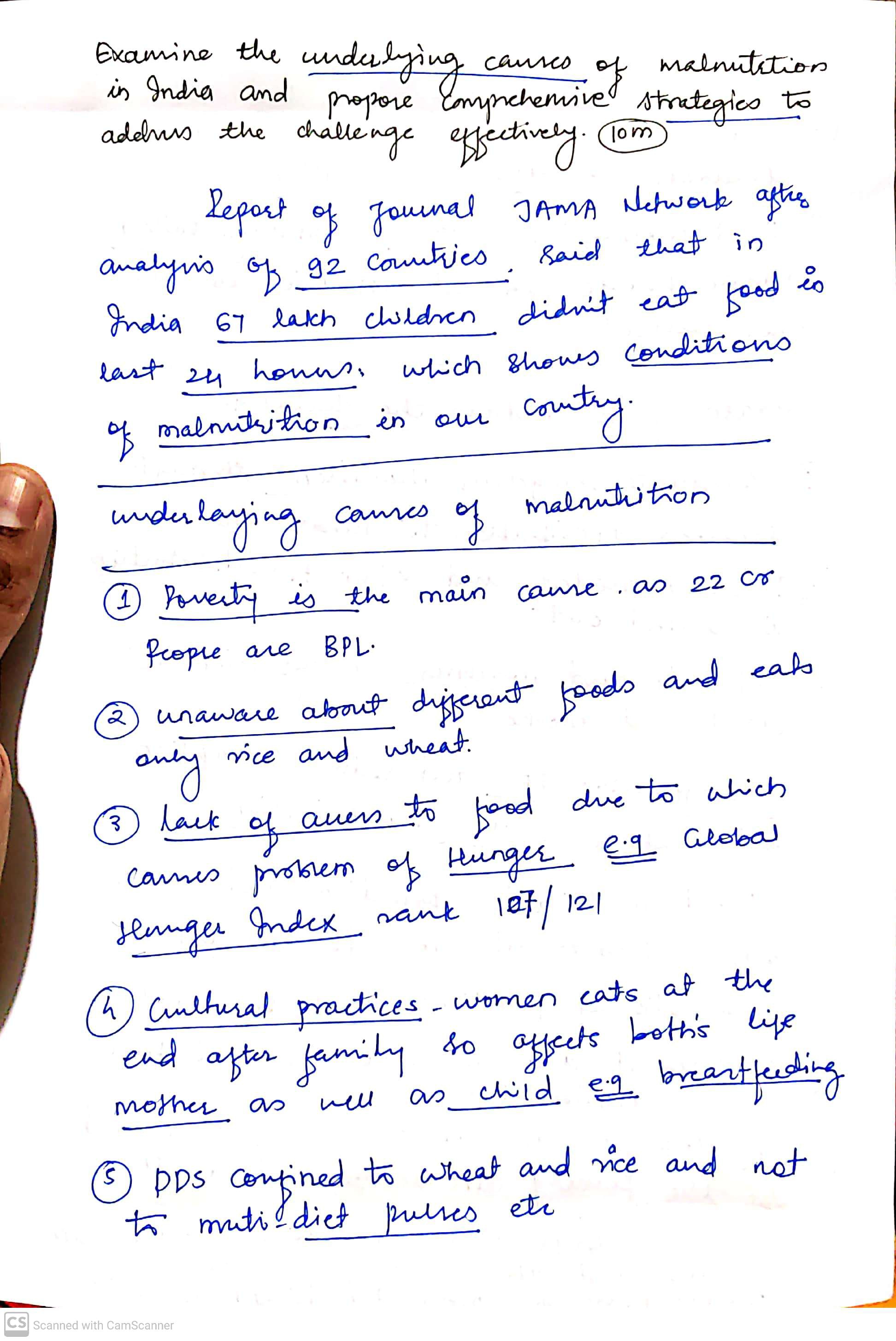 - Introduction: Briefly state the issue of malnutrition in India despite economic growth, affecting millions, especially children, and its impact on national development.