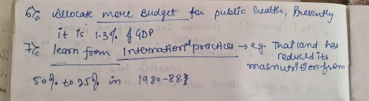 - Strengthening Healthcare and Nutritional Services: Programs like the Integrated Child Development Services (ICDS) and National Nutrition Mission (NNM) should be further strengthened to provide comprehensive nutritional support, including supplementation and fortification initiatives to tackle micronutrient deficiencies.