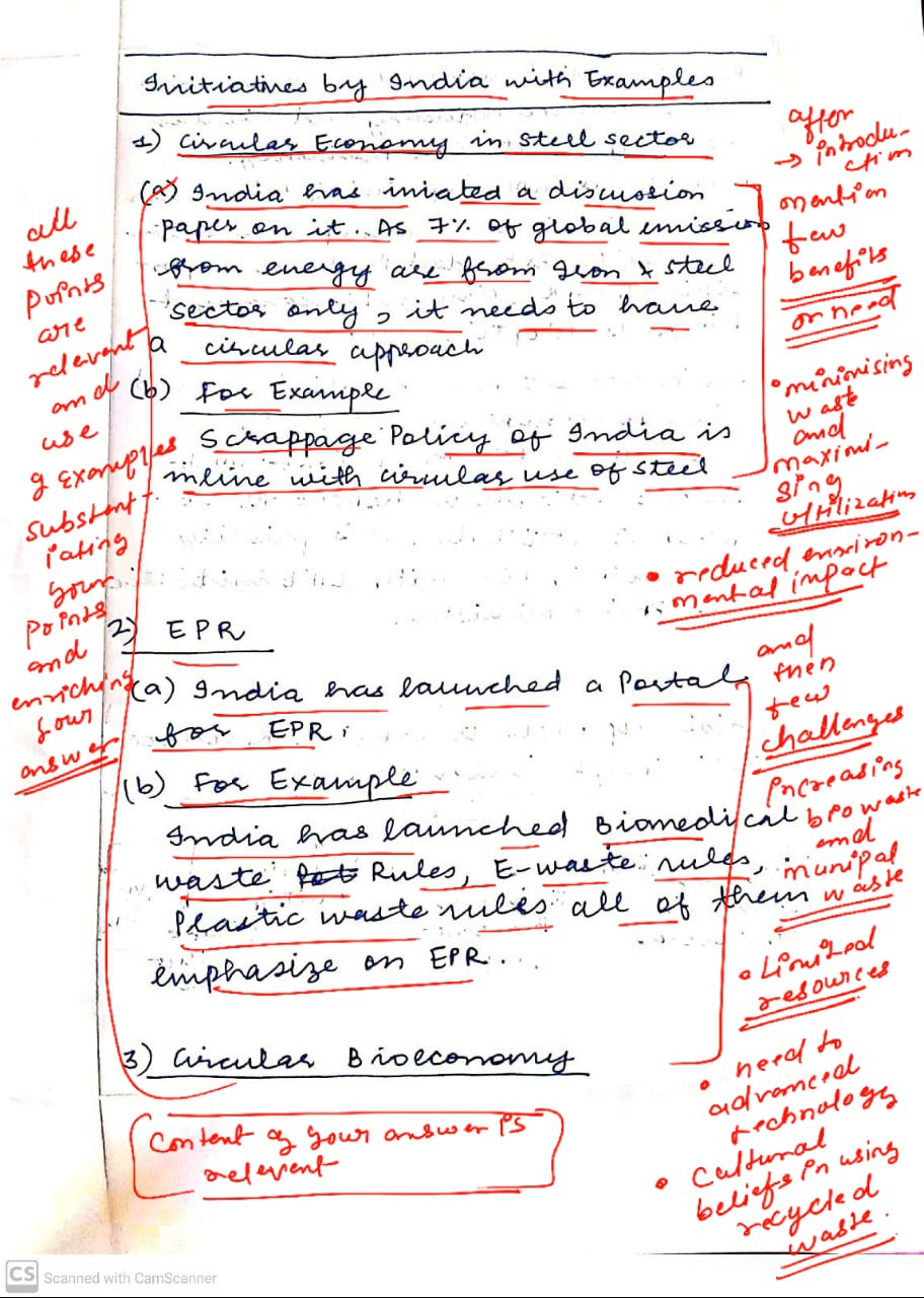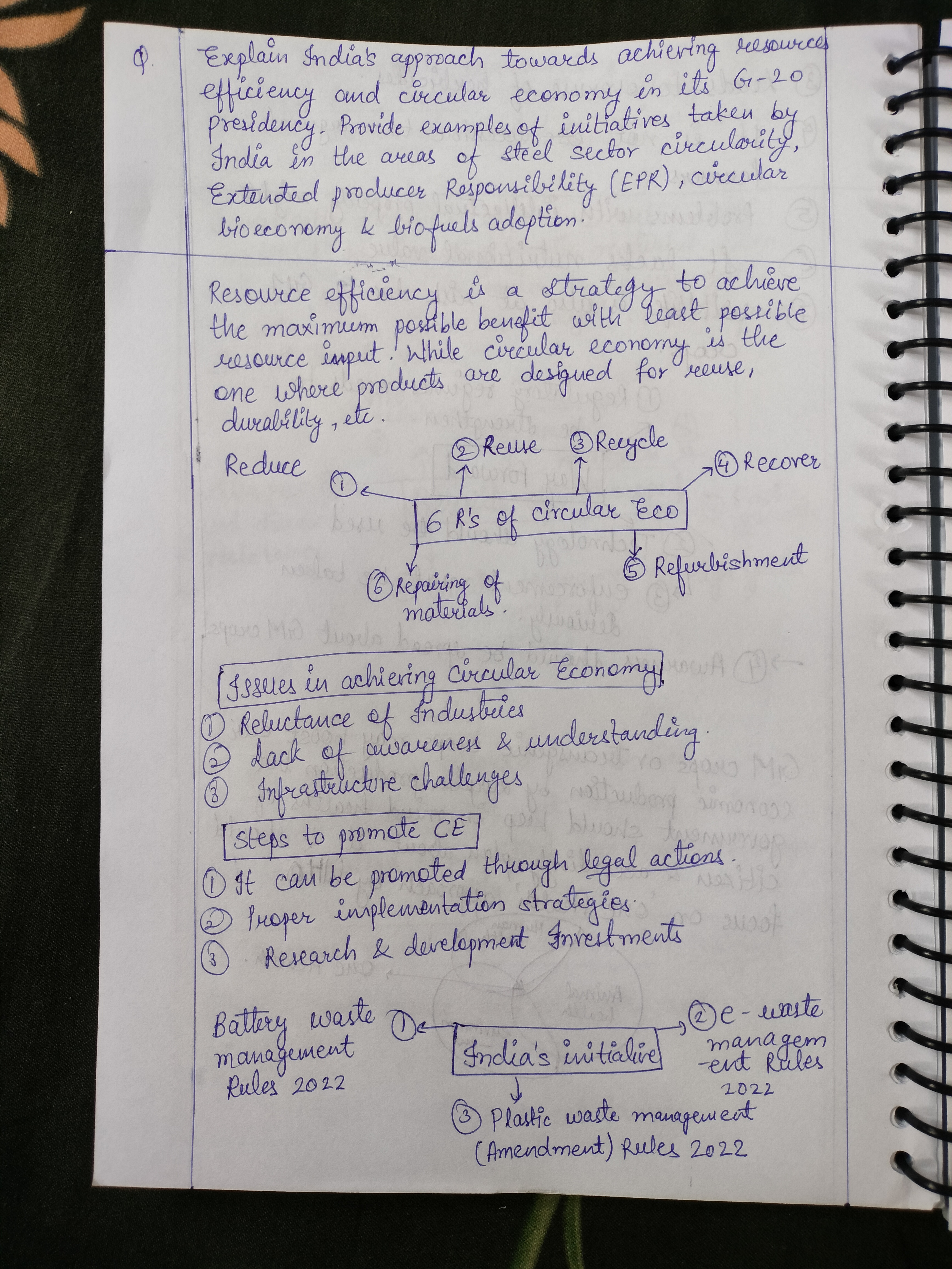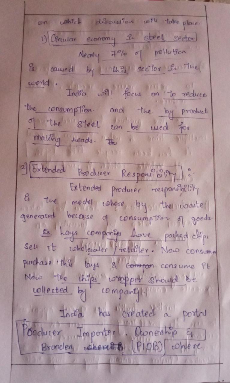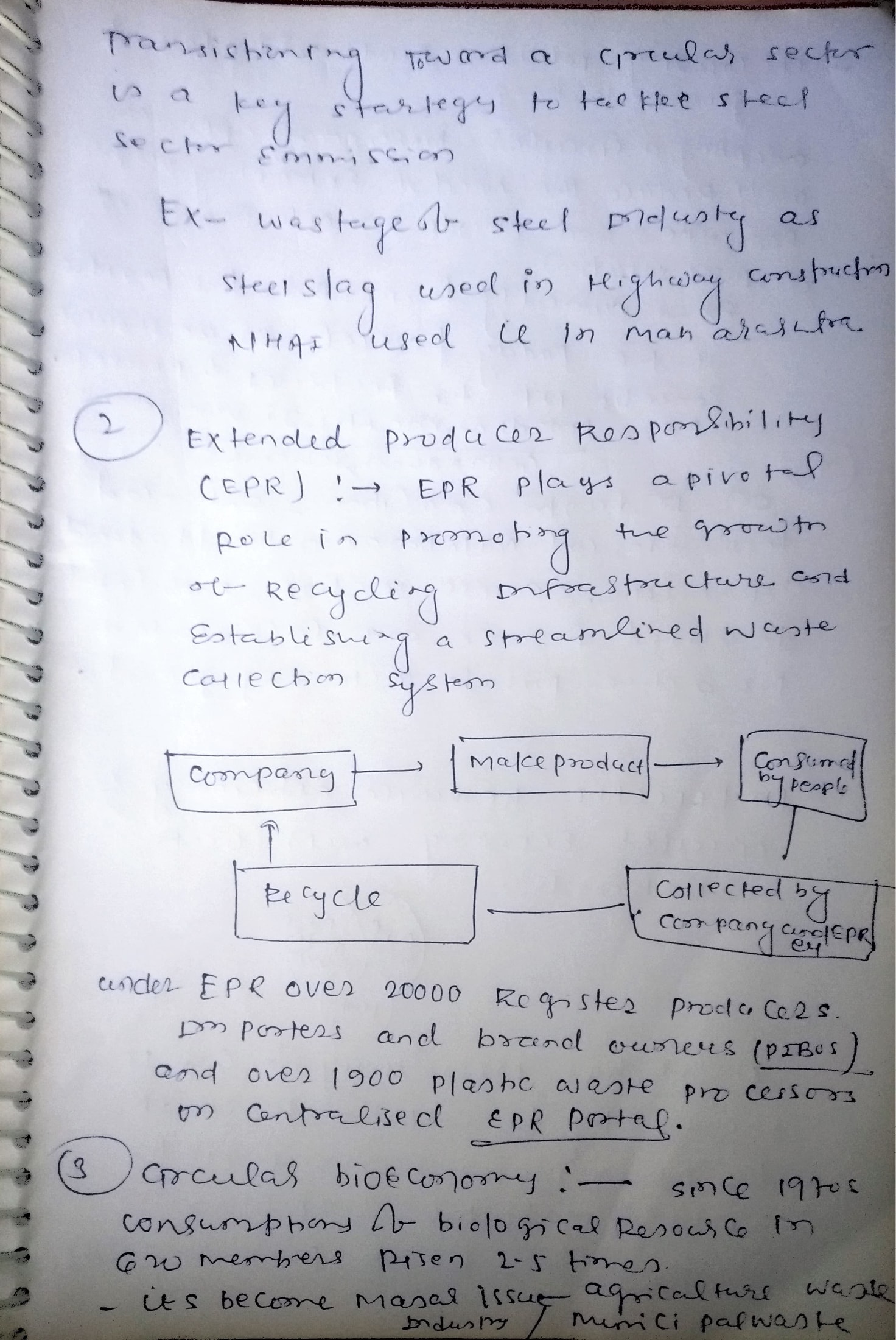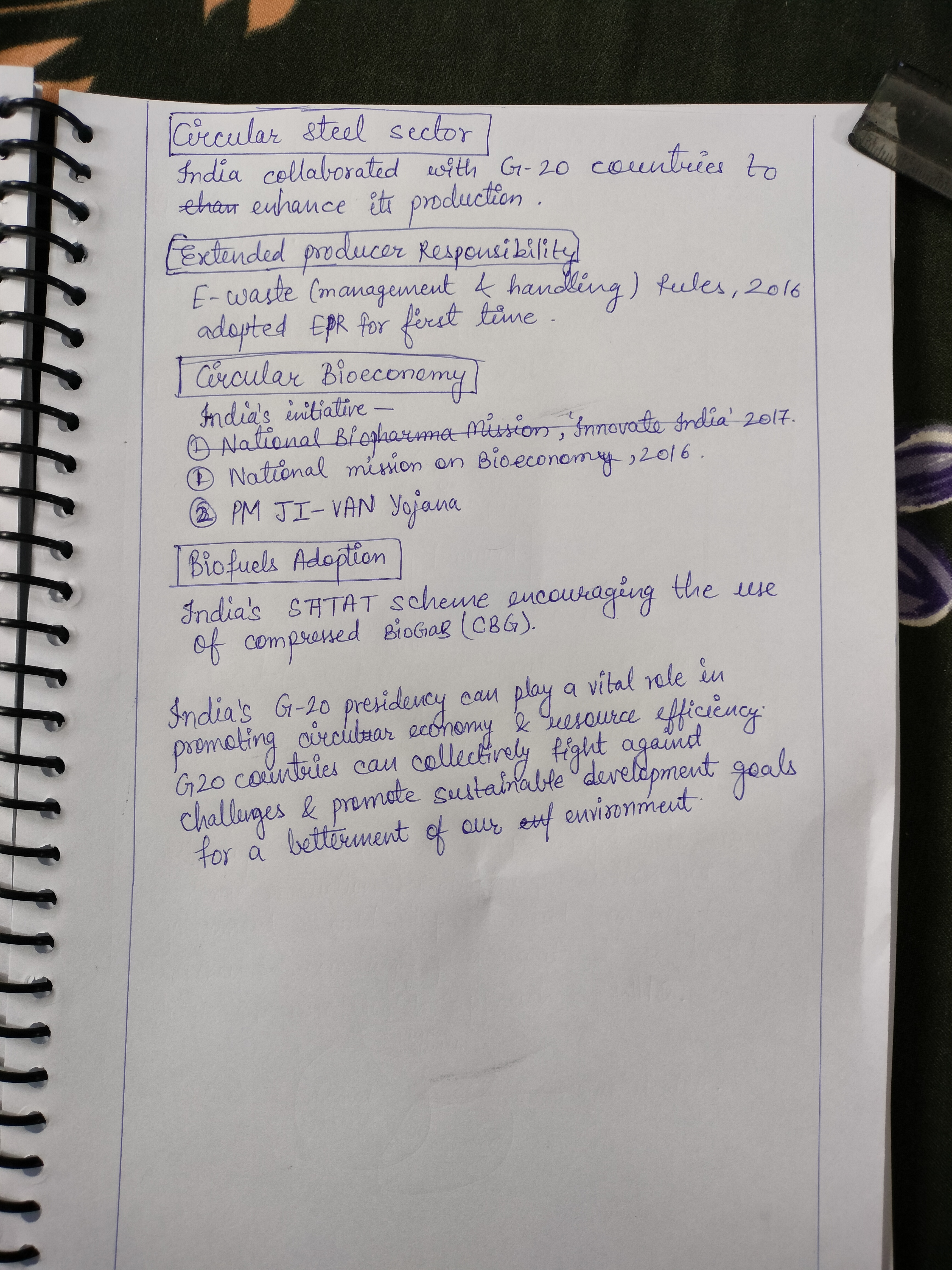 - Provide examples of the initiatives taken by India in the areas of steel sector circularity, Extended Producer Responsibility (EPR), circular bioeconomy, and biofuels adoption.