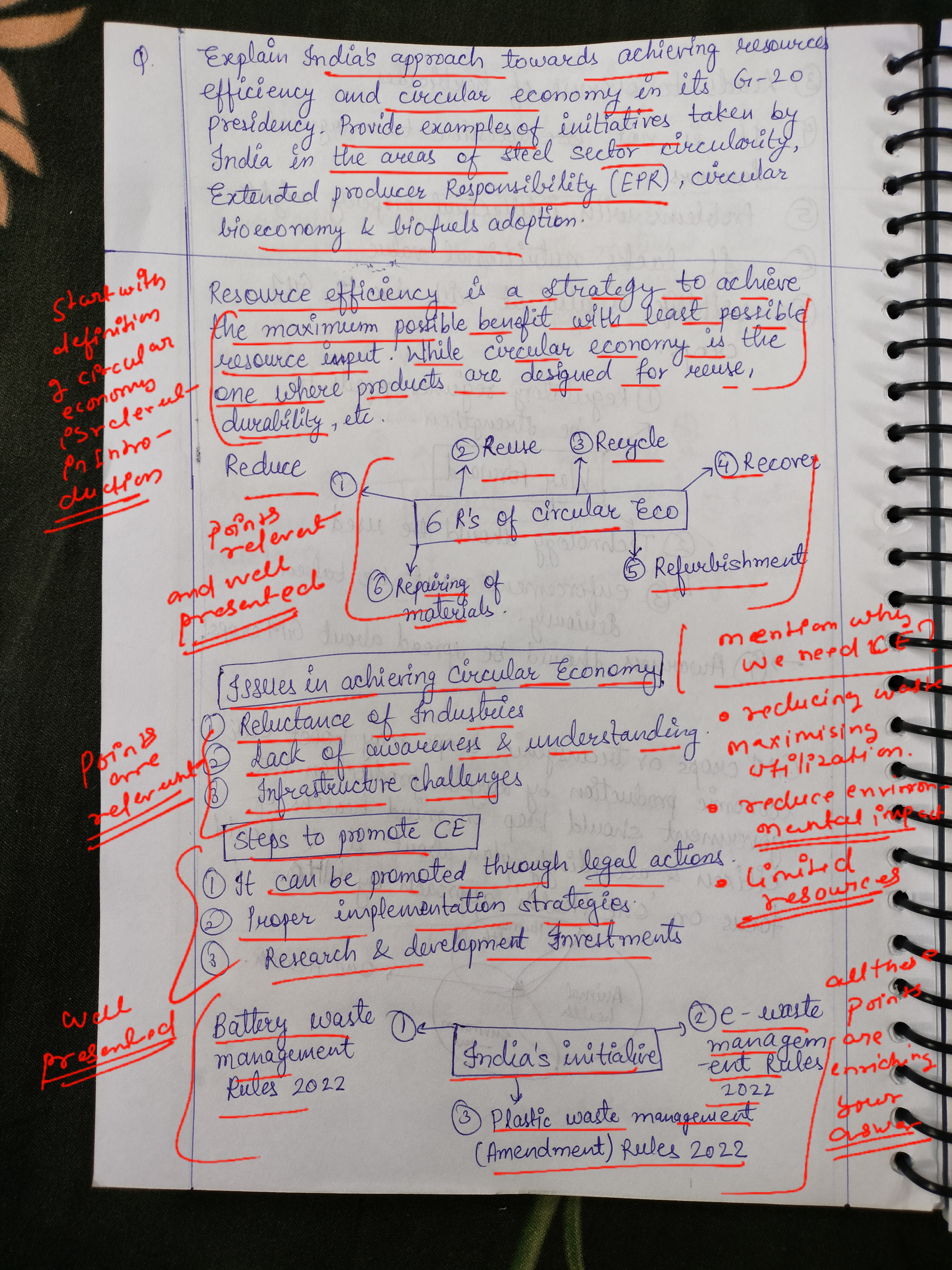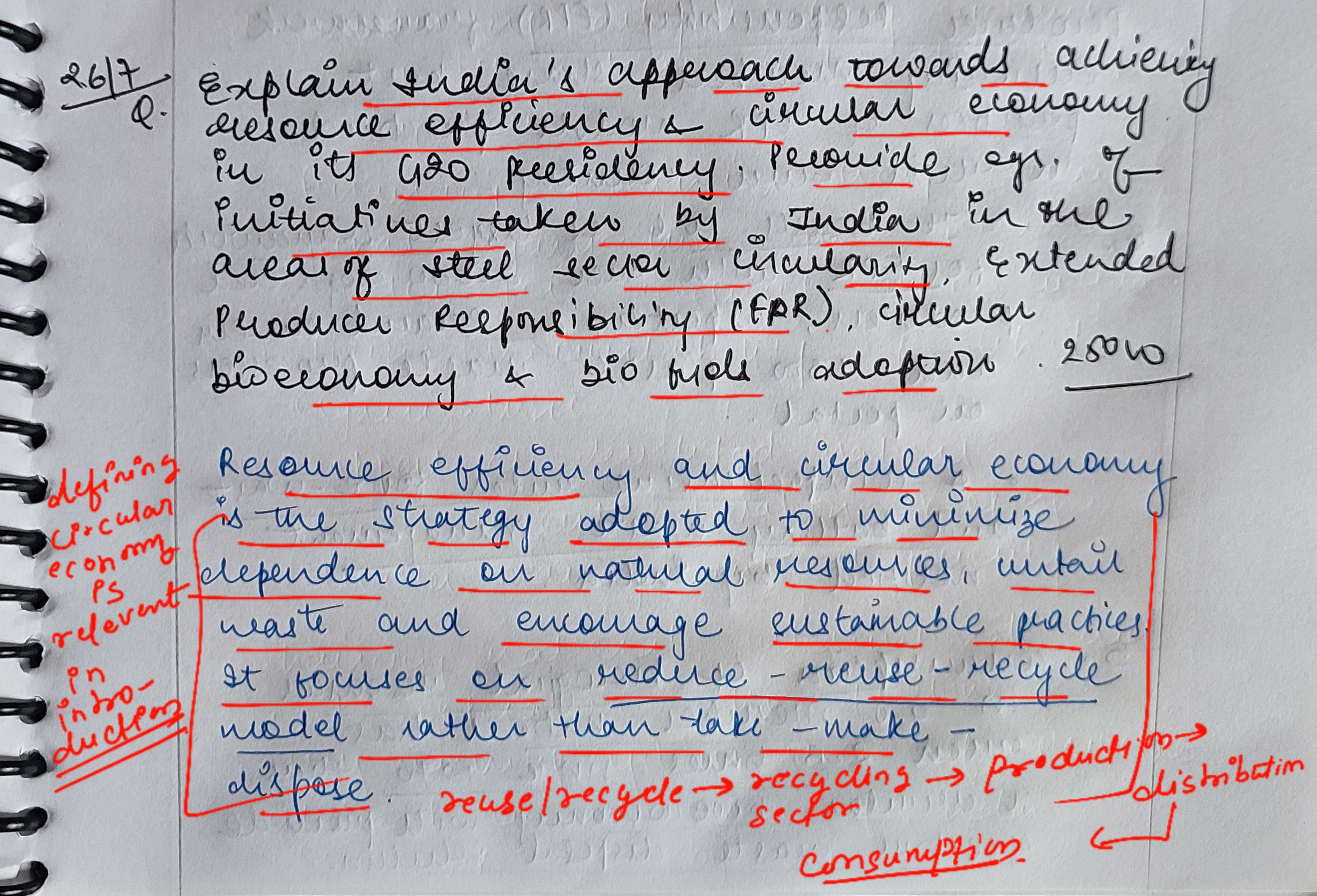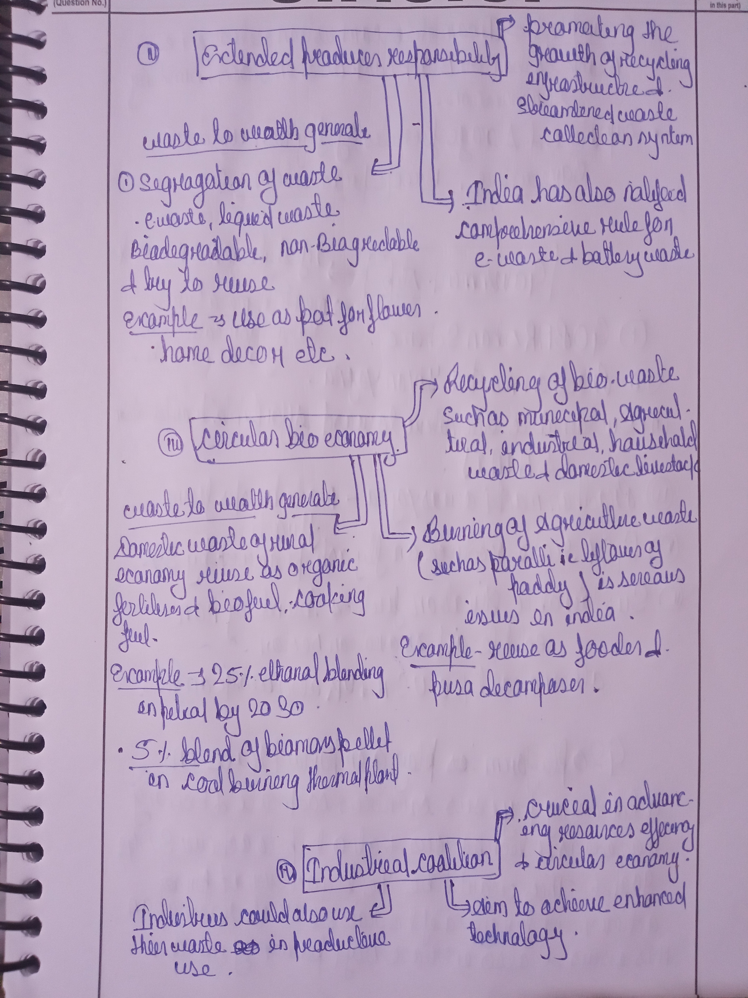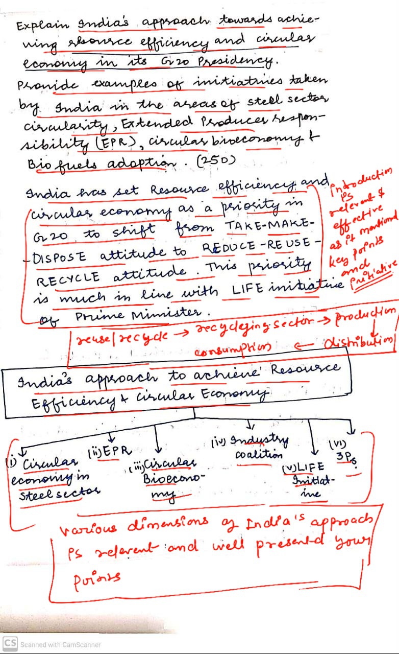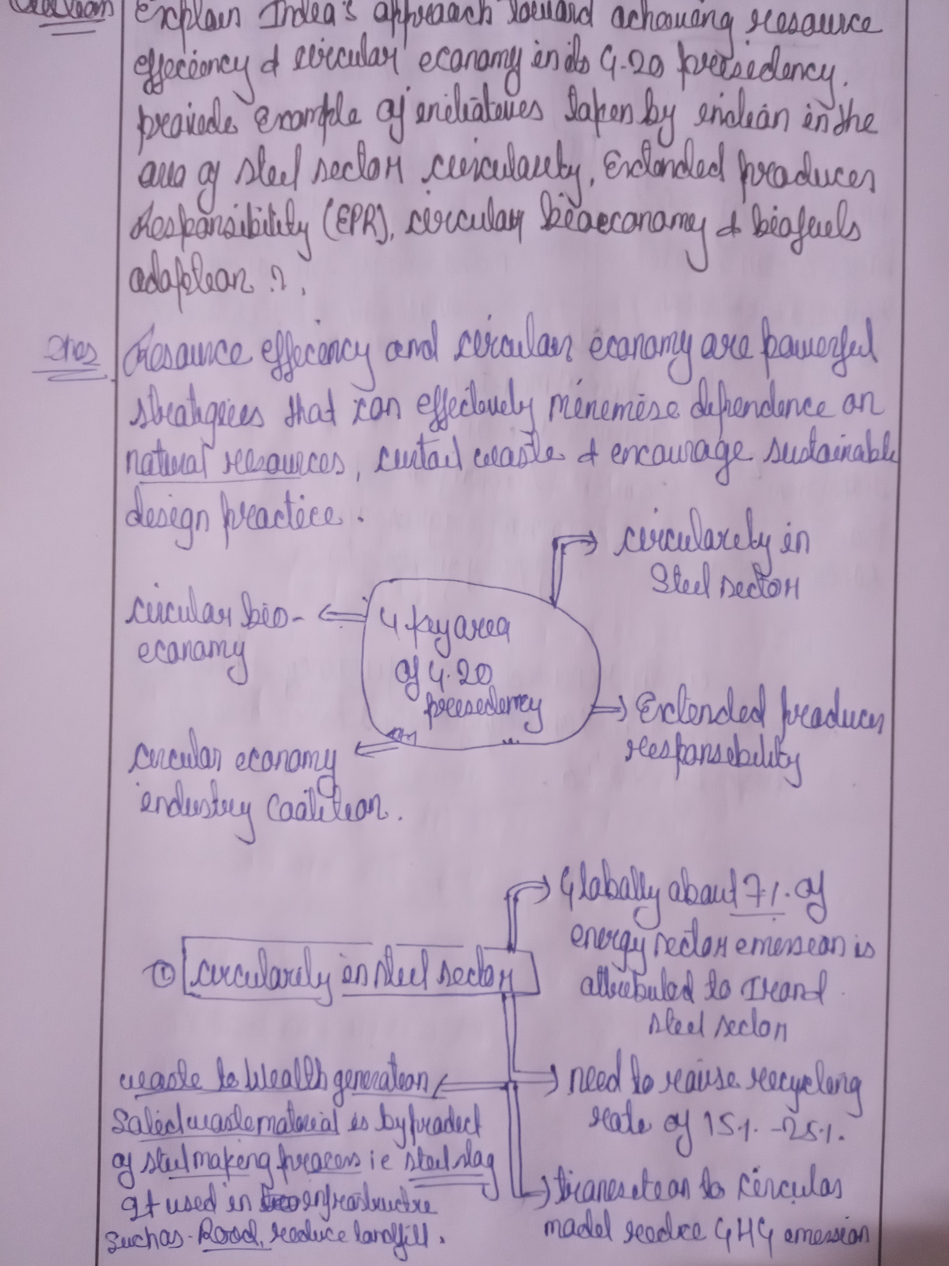 - Provide examples of the initiatives taken by India in the areas of steel sector circularity, Extended Producer Responsibility (EPR), circular bioeconomy, and biofuels adoption.