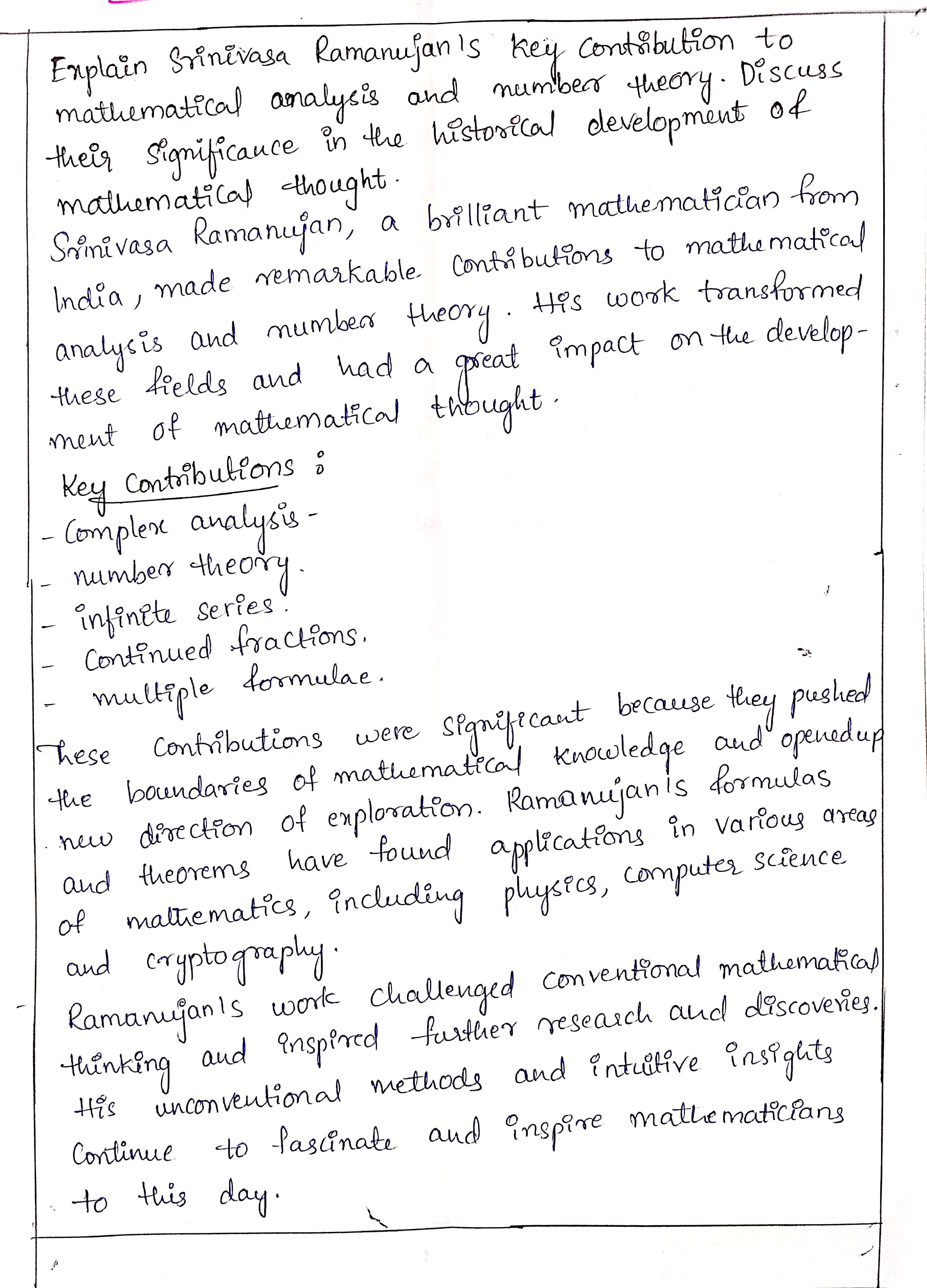 - Discuss his contribution to mathematical analysis and number theory.