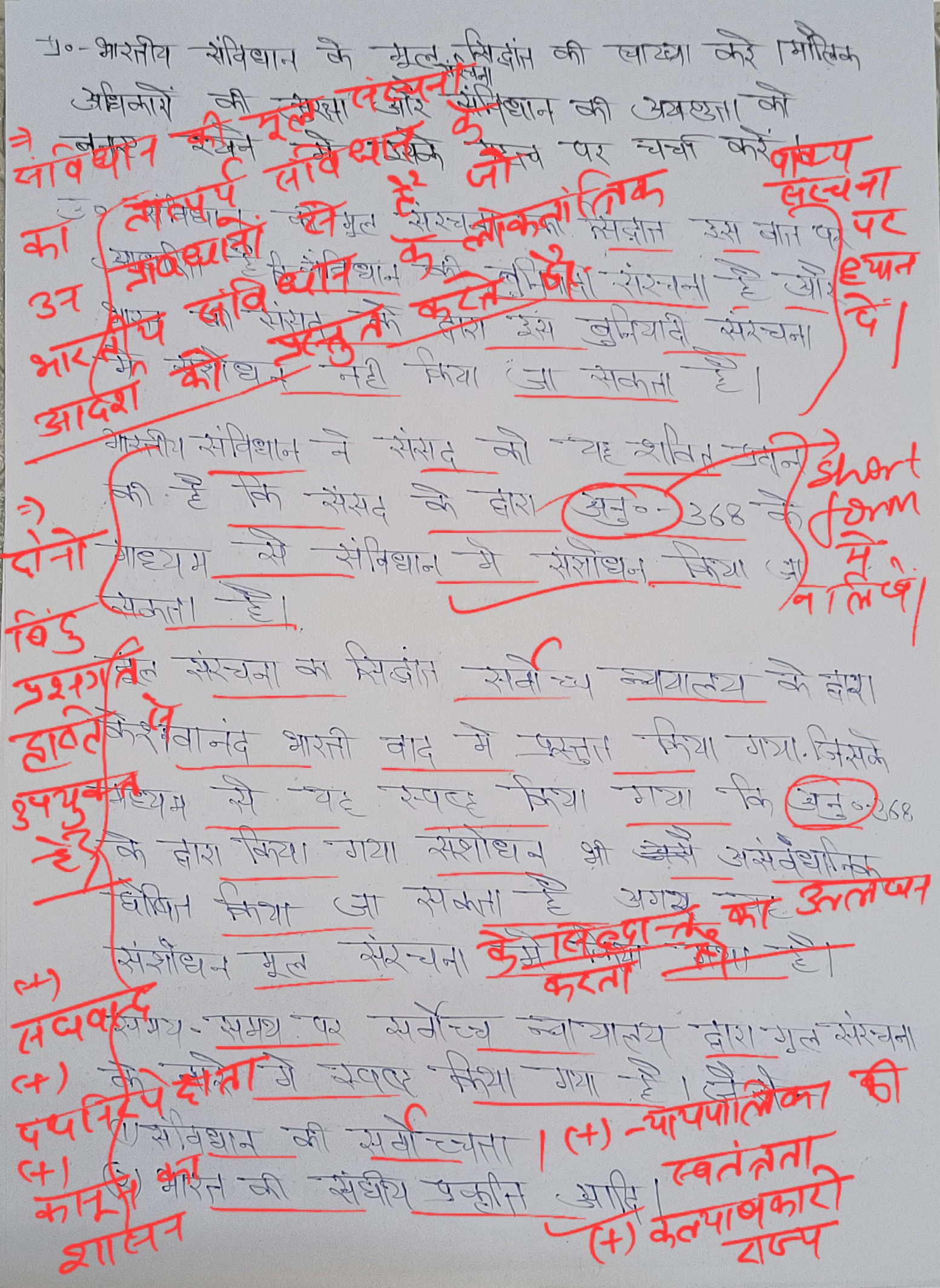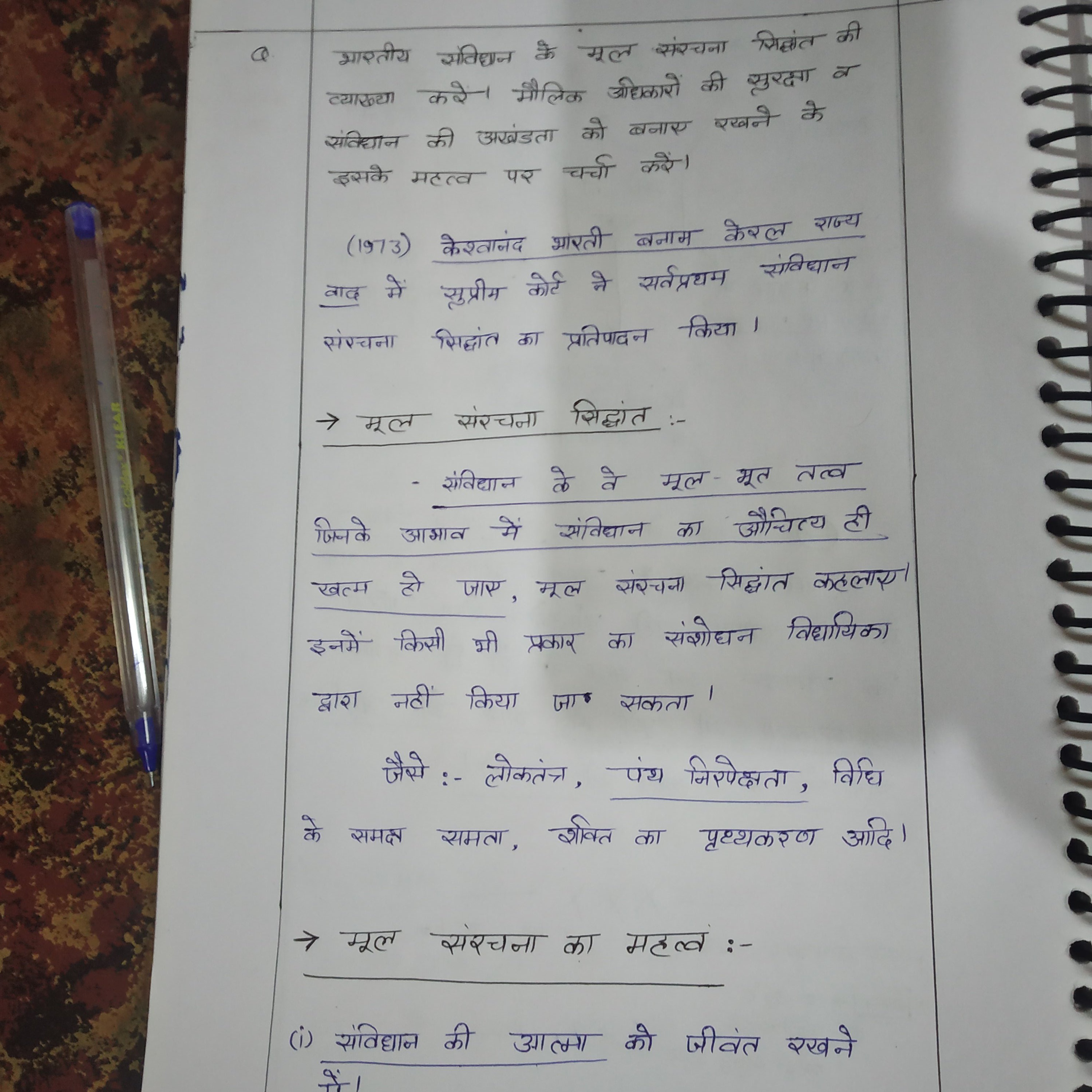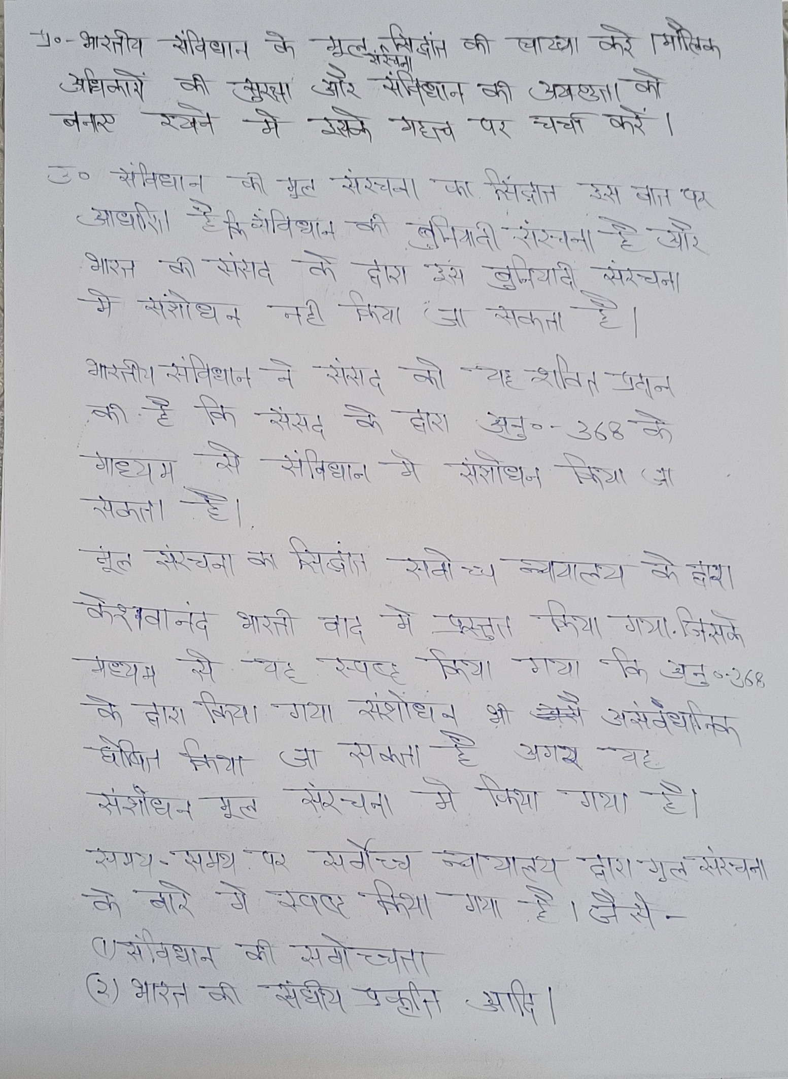 - भारतीय संविधान के मूल संरचना सिद्धांत की व्याख्या कीजिये।