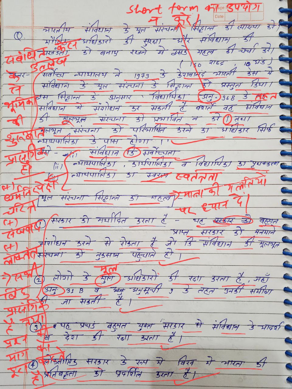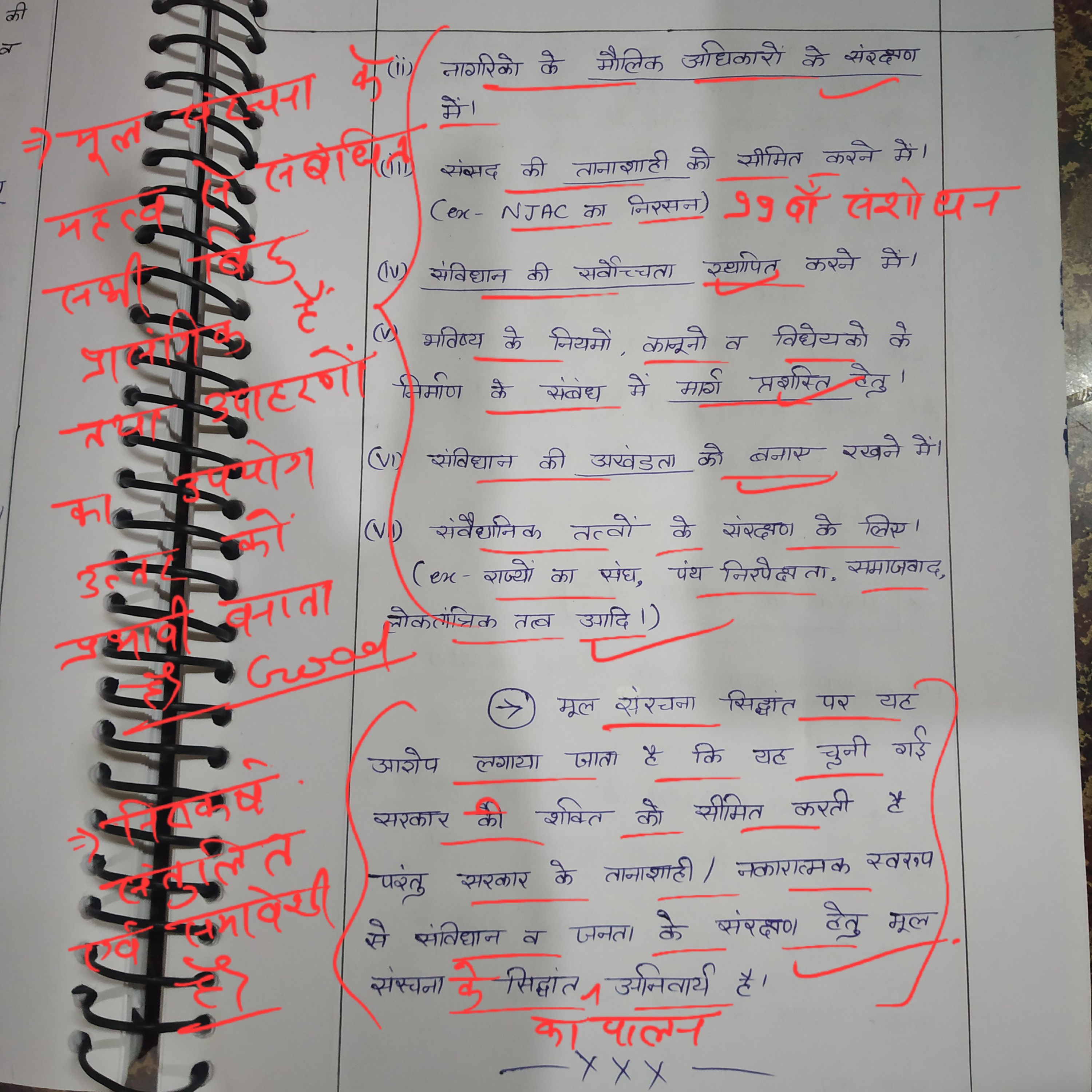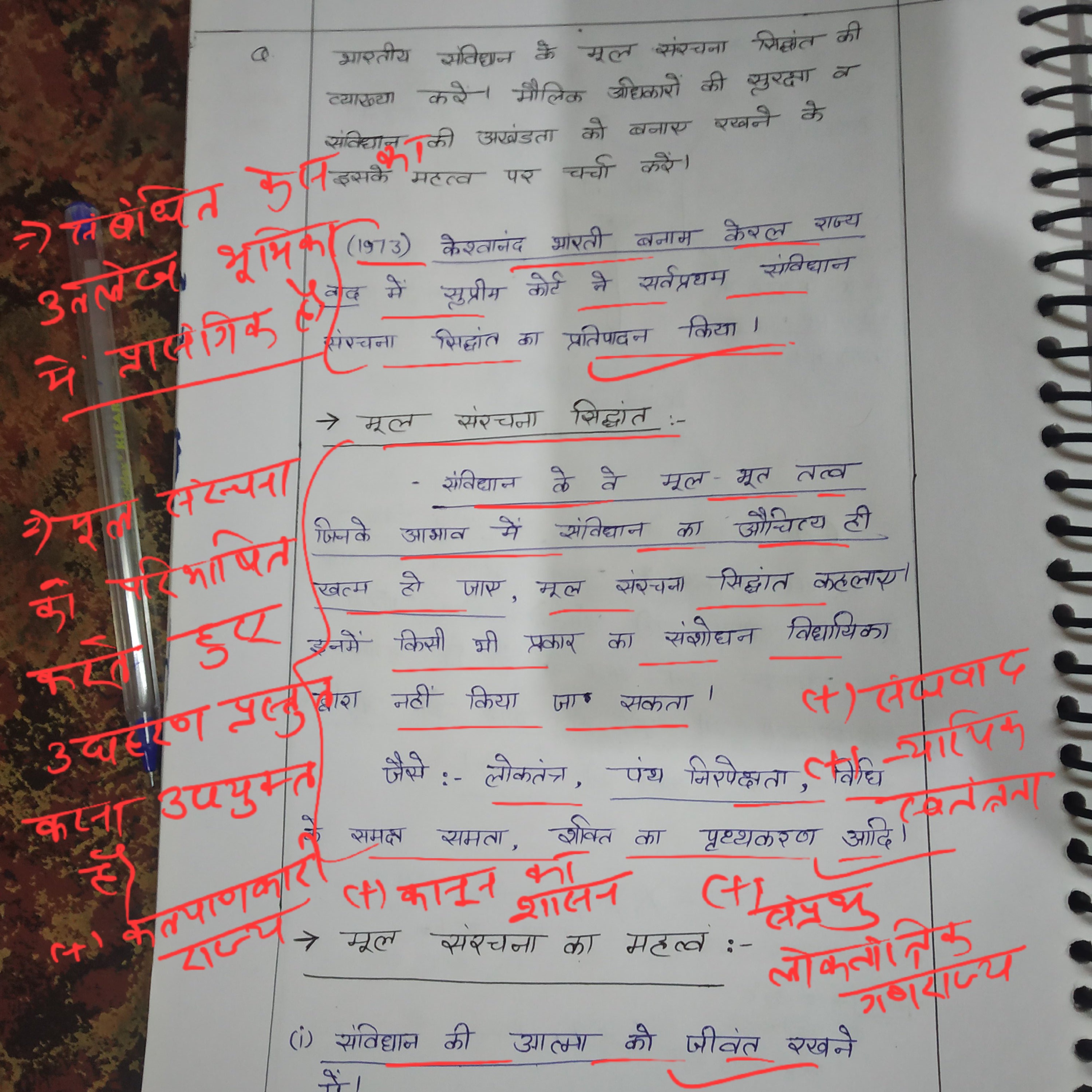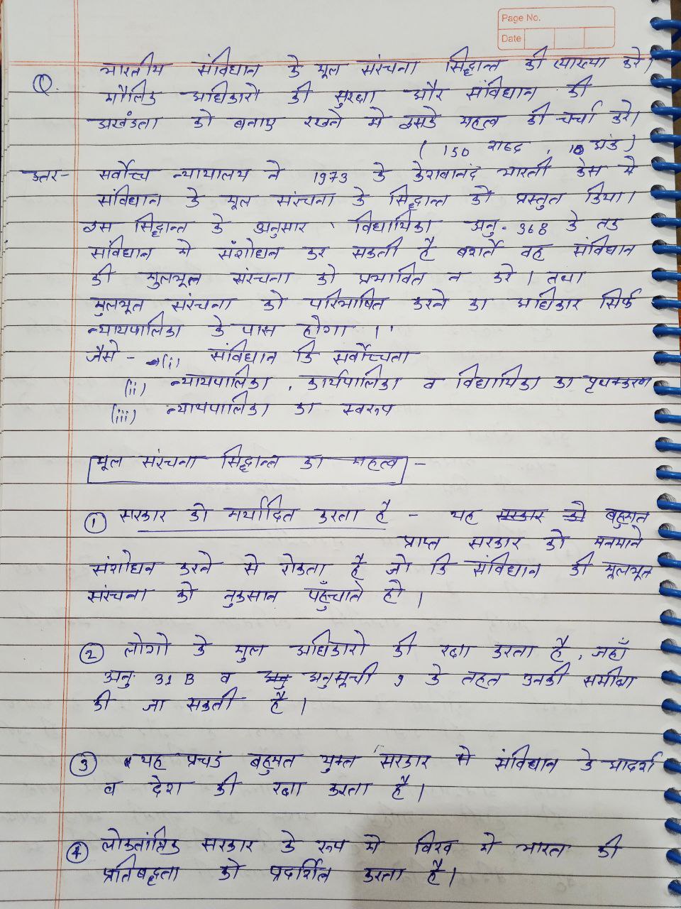 - भारतीय संविधान के मूल संरचना सिद्धांत की व्याख्या कीजिये।