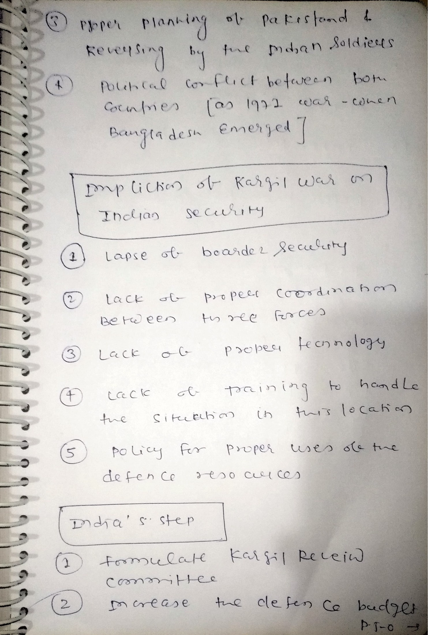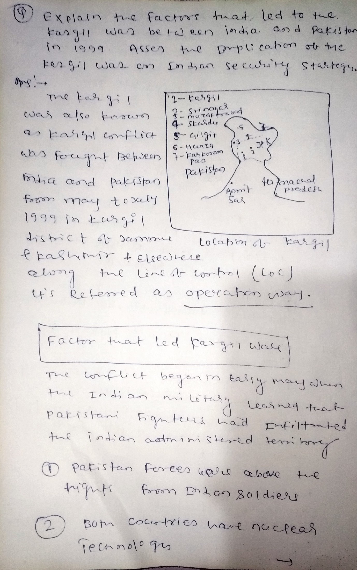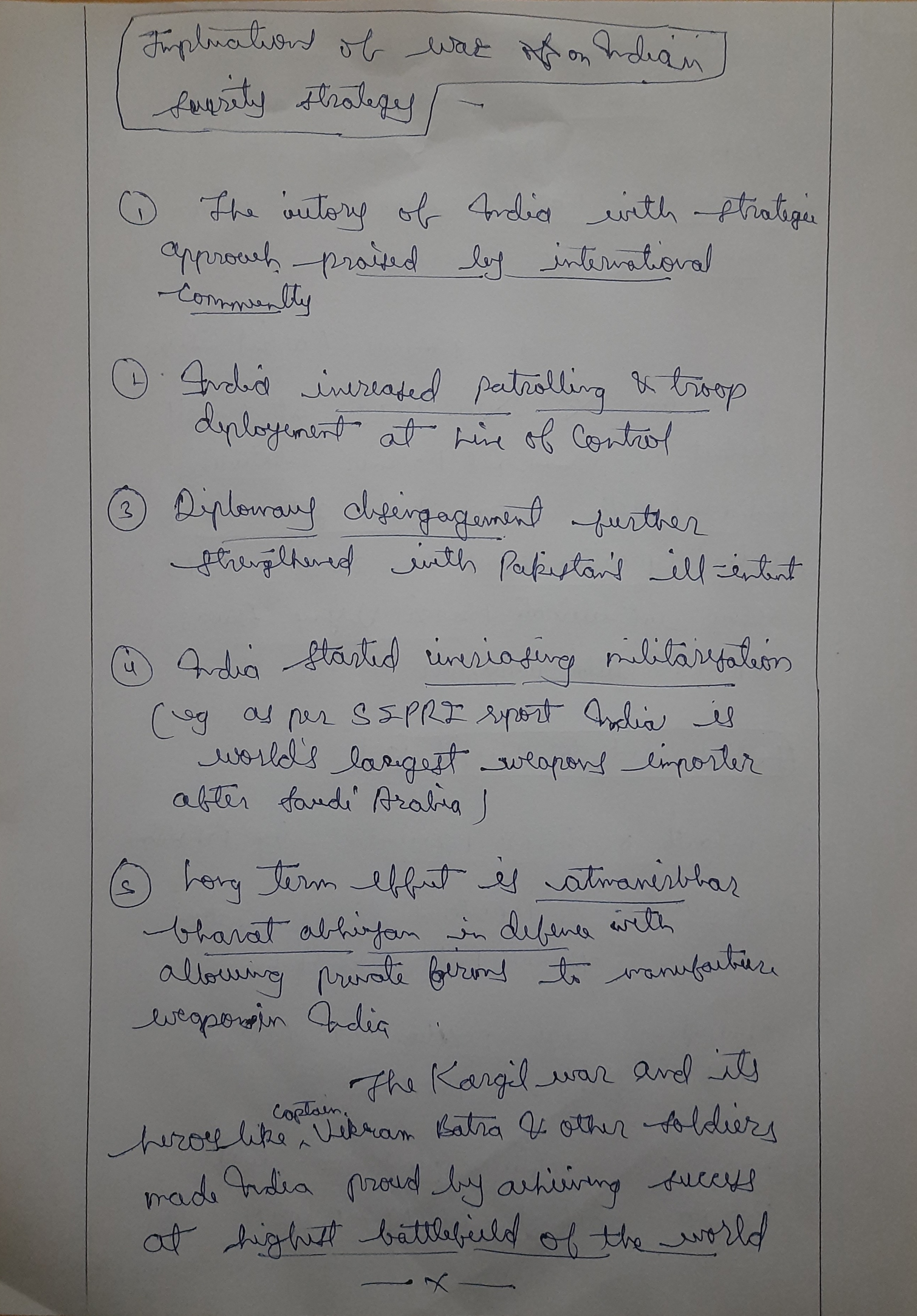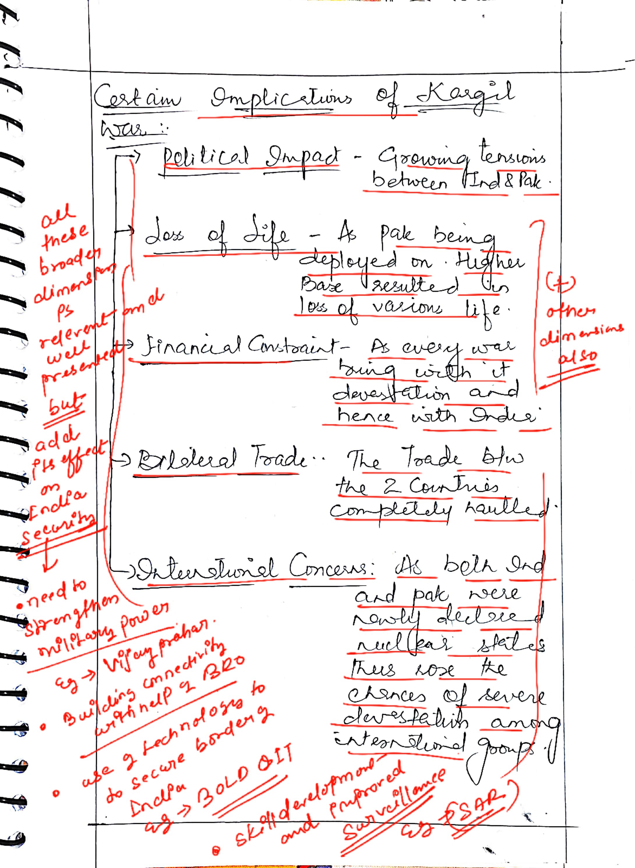 - Identify and mention the implications of the Kargil War on the Indian Security Strategy.