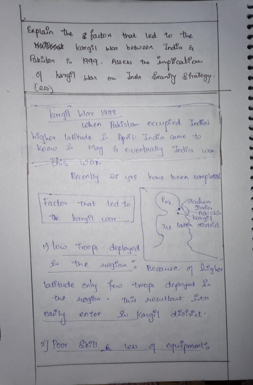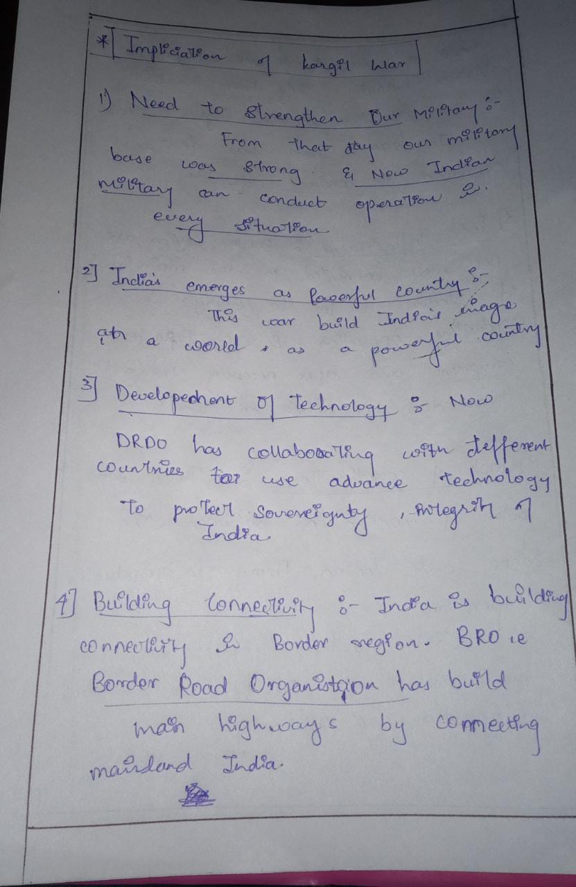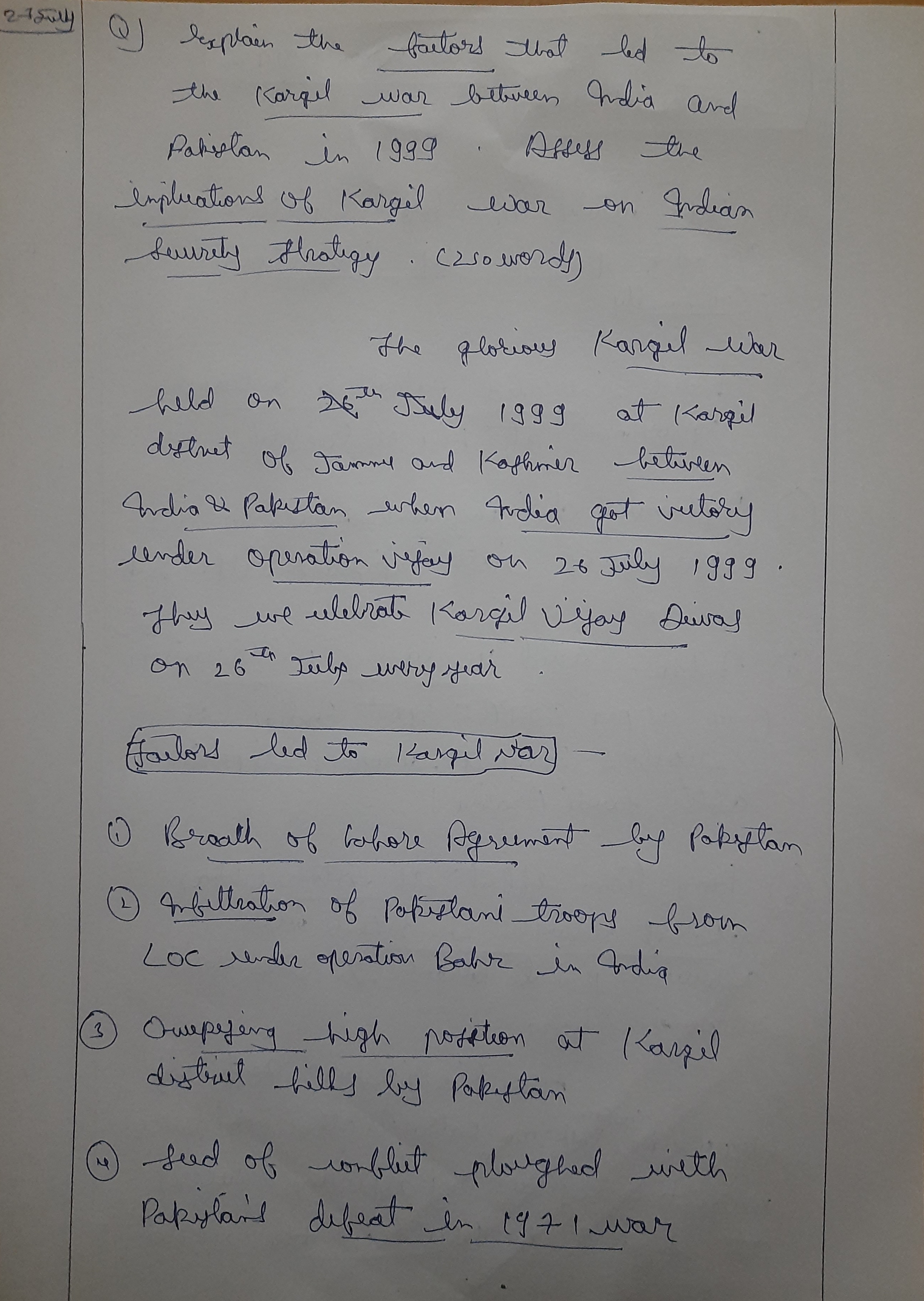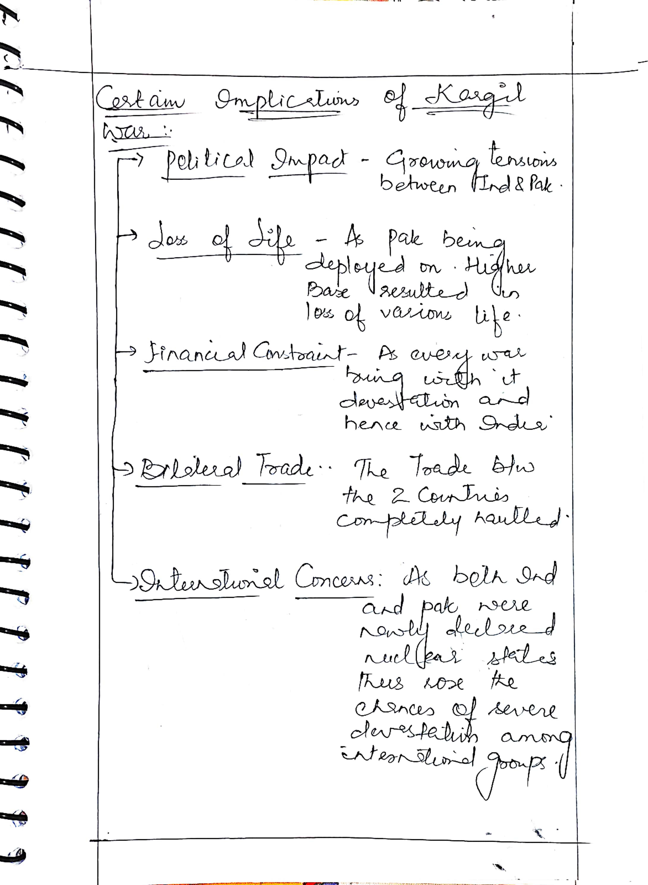 - Identify and mention the implications of the Kargil War on the Indian Security Strategy.