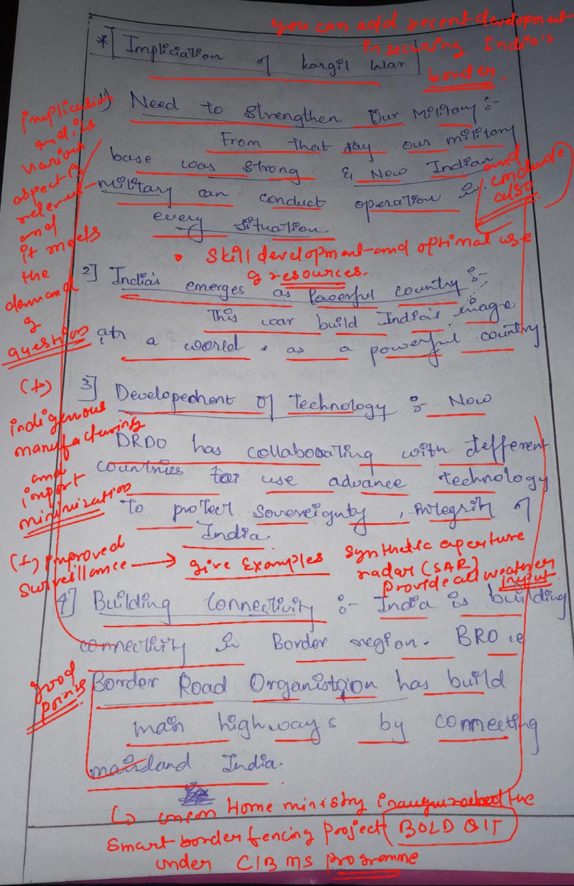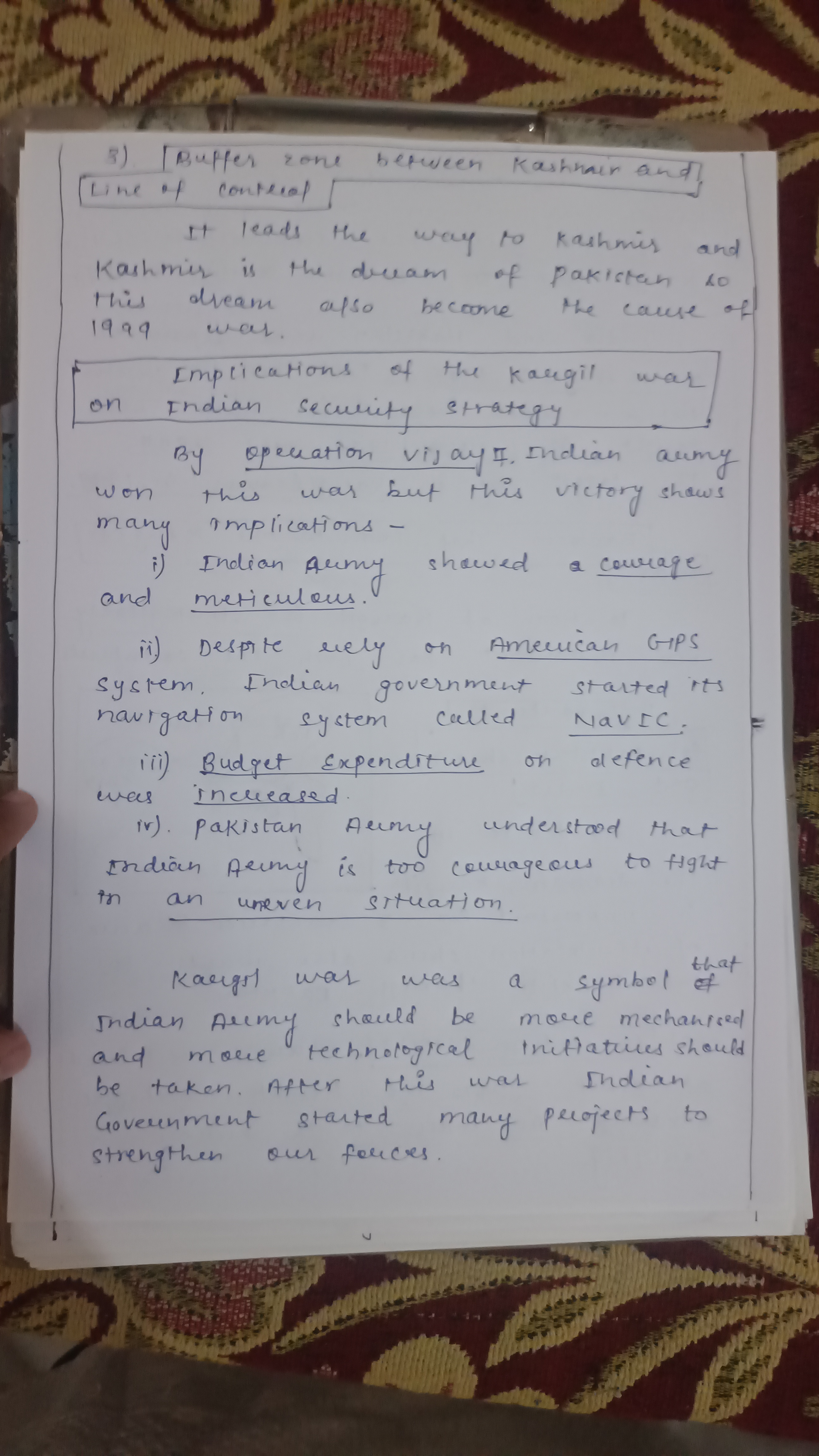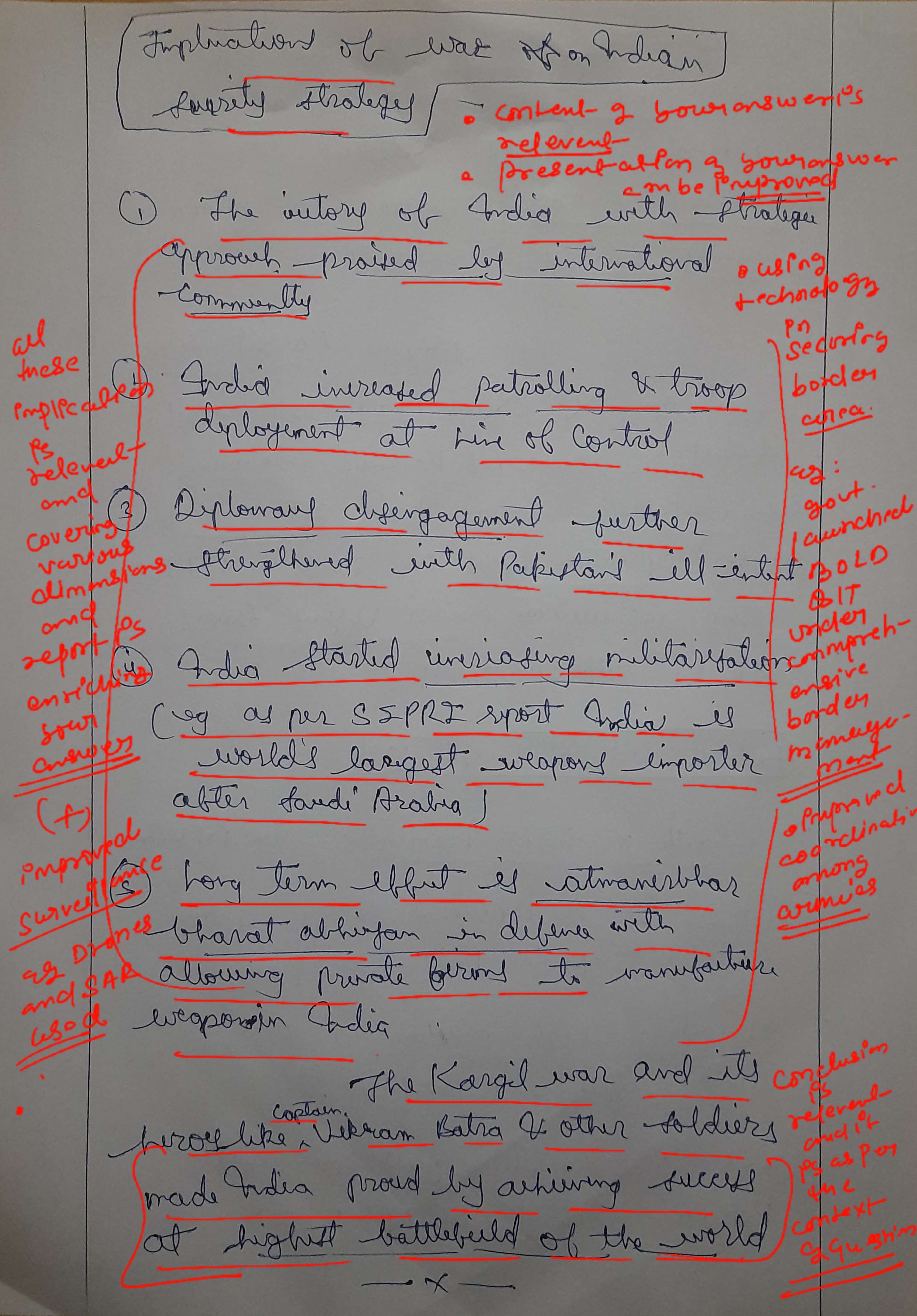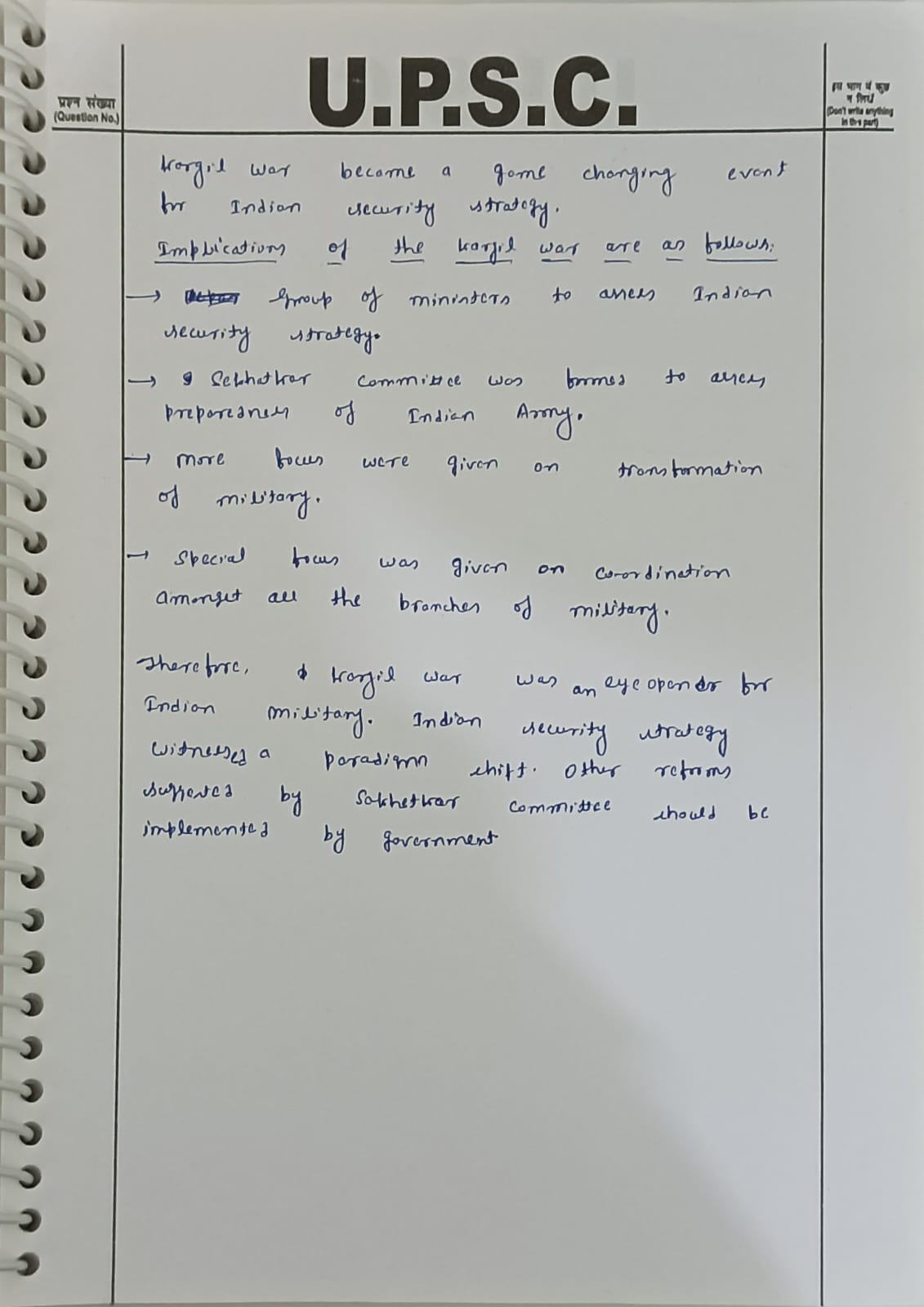 - Identify and mention the implications of the Kargil War on the Indian Security Strategy.