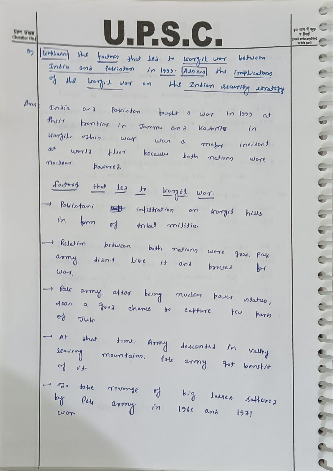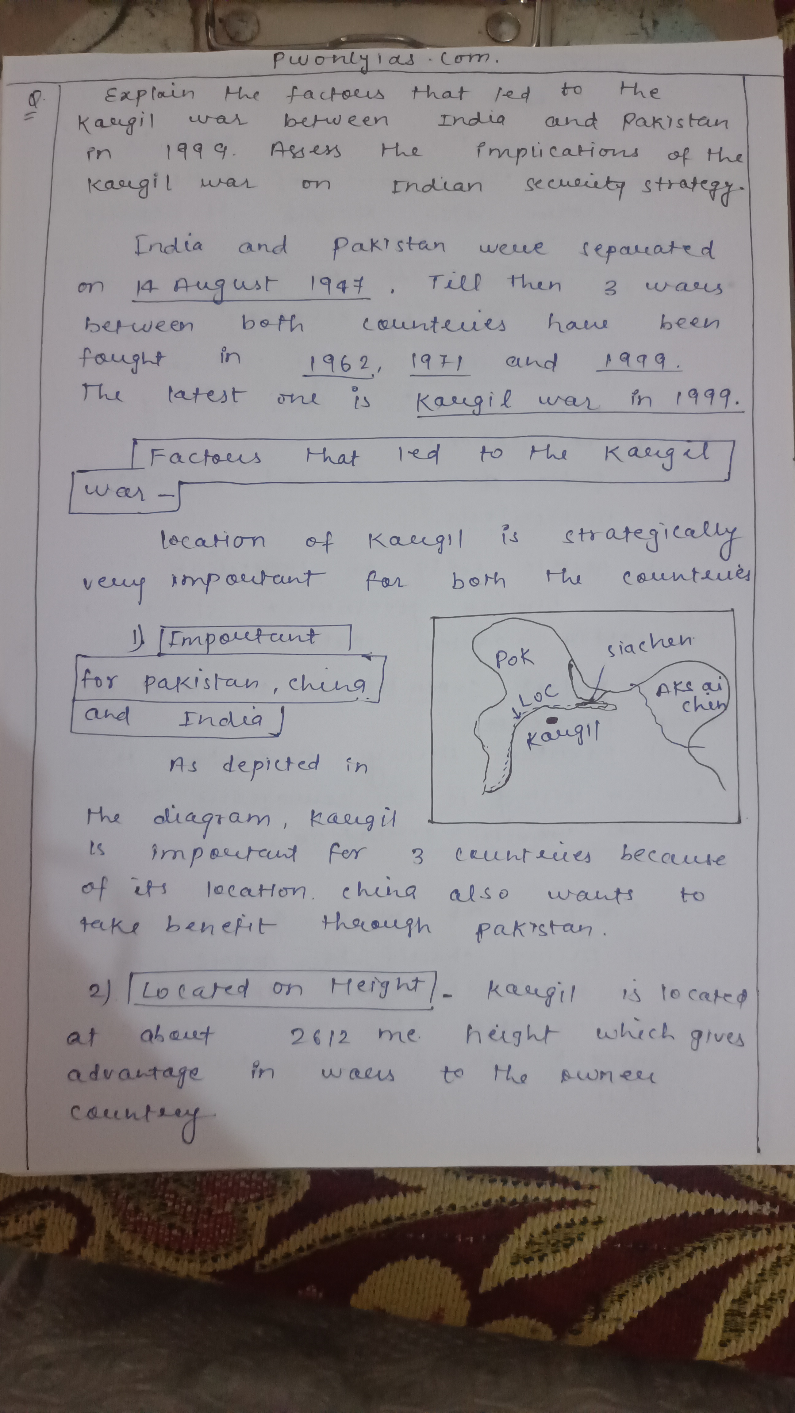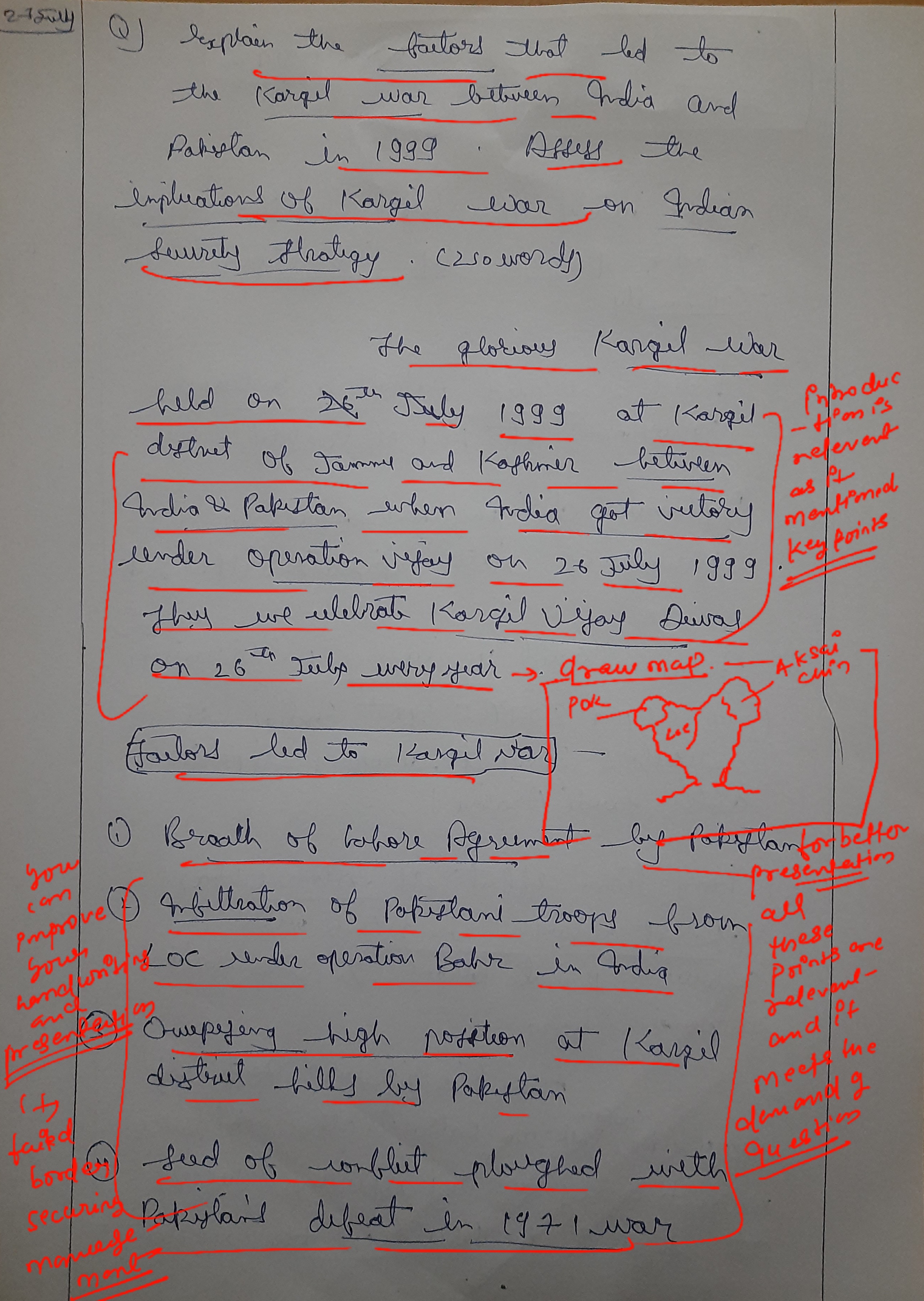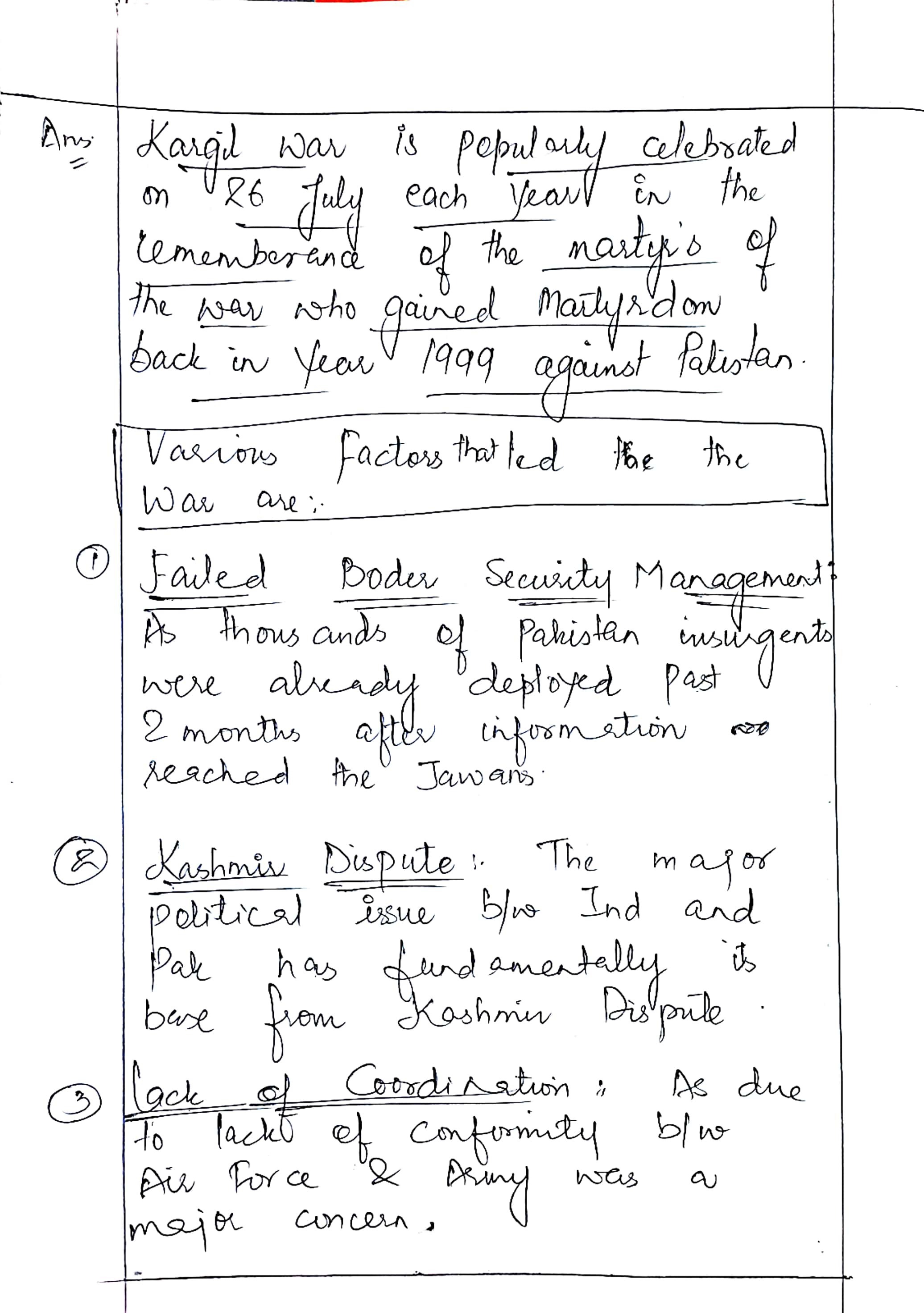 - Identify and mention the implications of the Kargil War on the Indian Security Strategy.