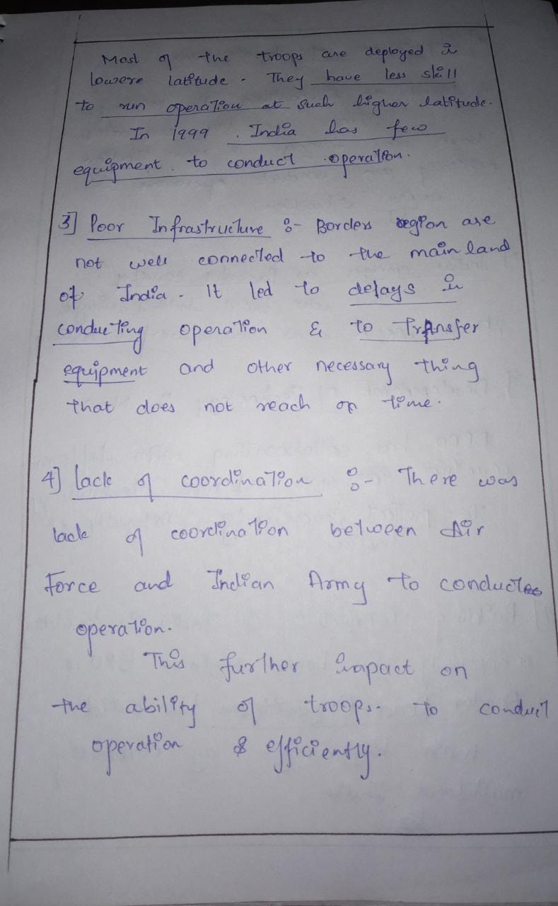 - Pakistan capitalized on the Indian strategy of vacating some border posts during extreme winters, infiltrating its troops and militants into these vacant positions in early 1999.
