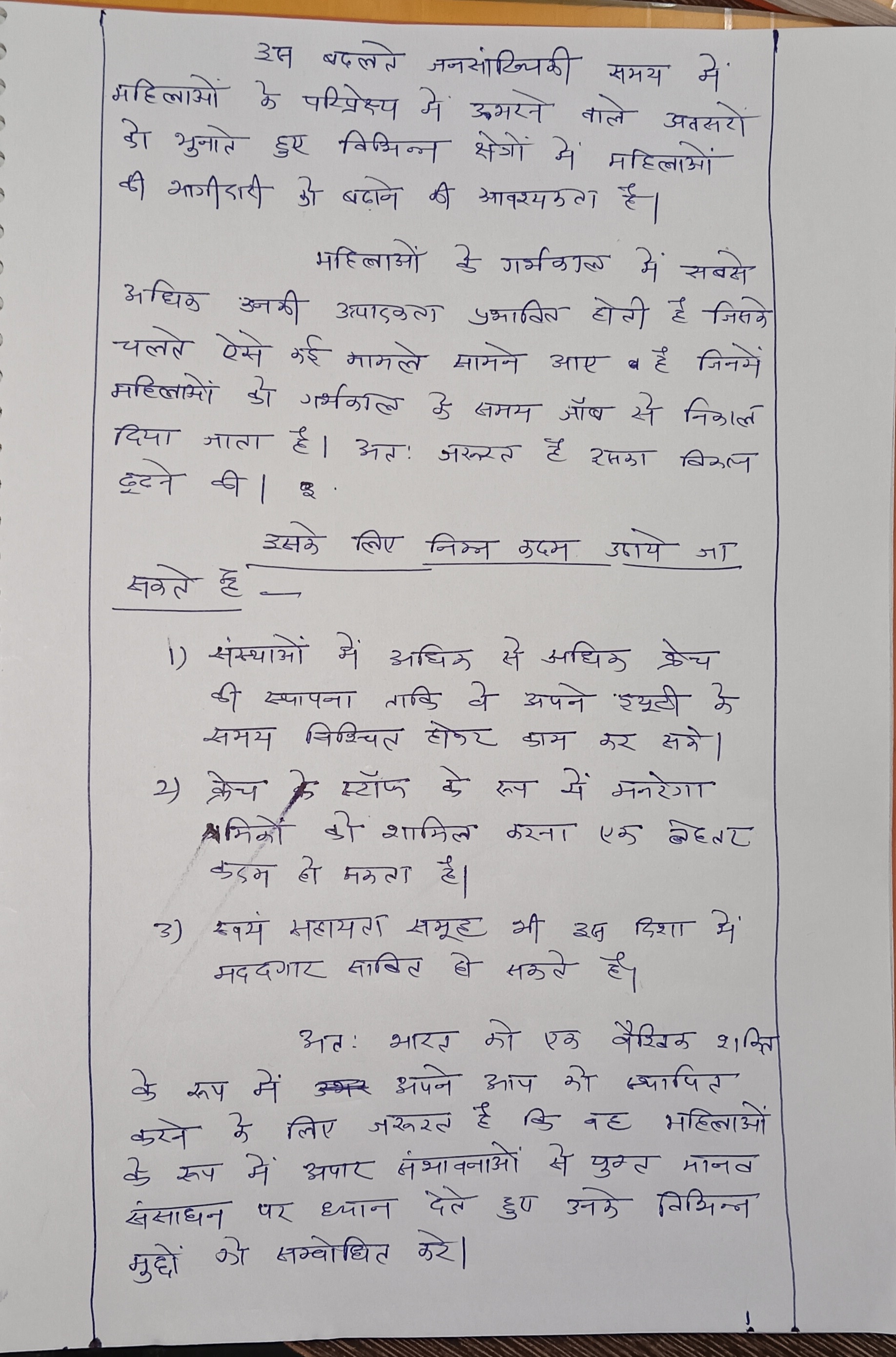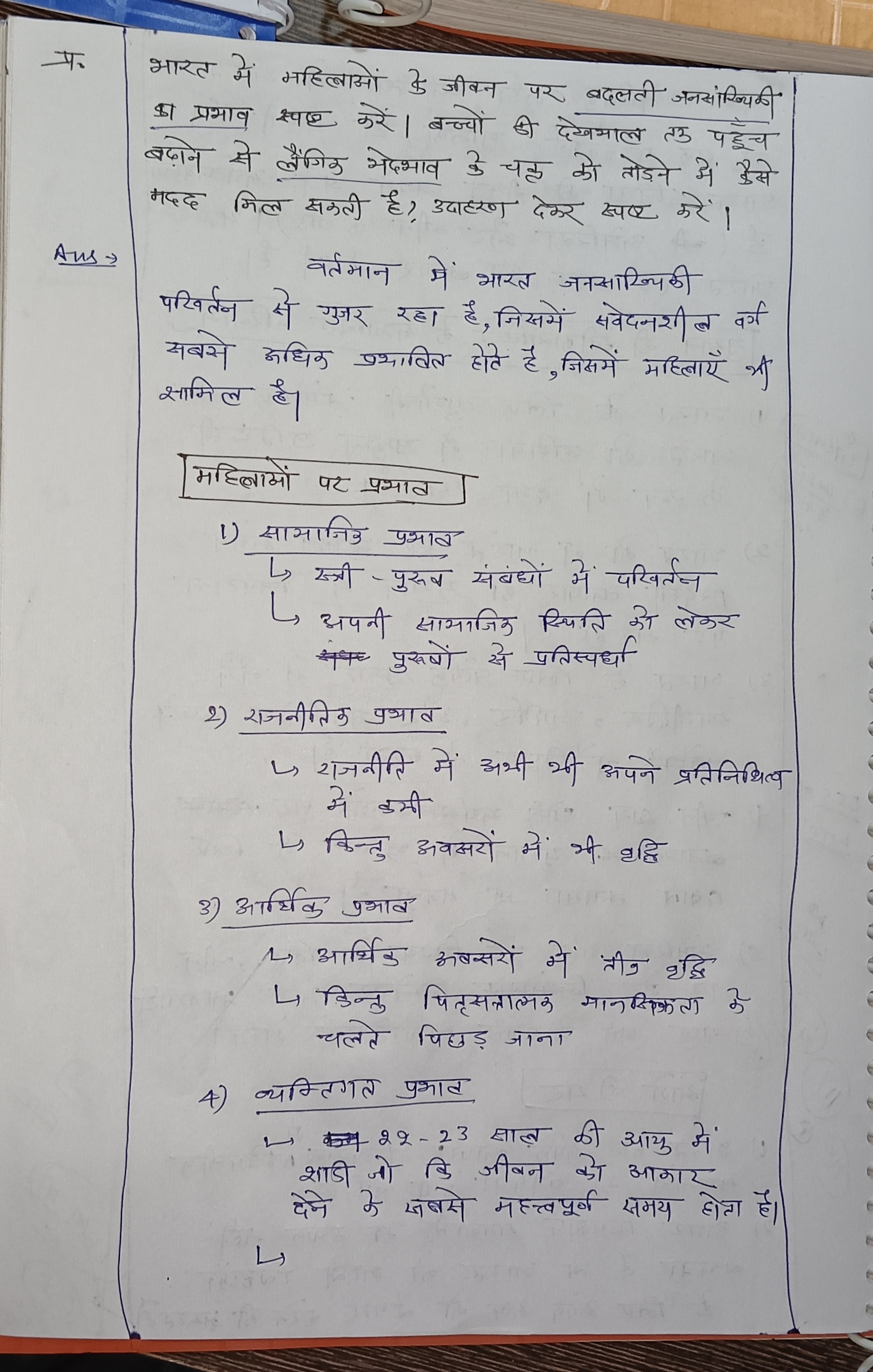 - महिलाओं के जीवन पर बदलती जनसांख्यिकी के प्रभावों पर चर्चा करें।