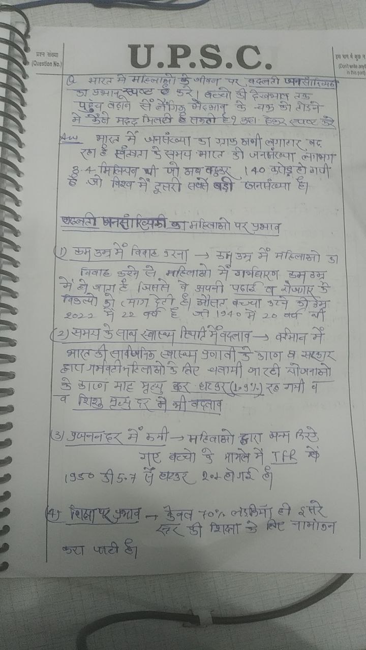 - परिचय: भारतीय जनसांख्यिकी में परिवर्तनकारी बदलावों और महिलाओं पर उनके दोहरे प्रभावों का संक्षेप में प्रकाश डालते हुए उत्तर प्रारम्भ करें।