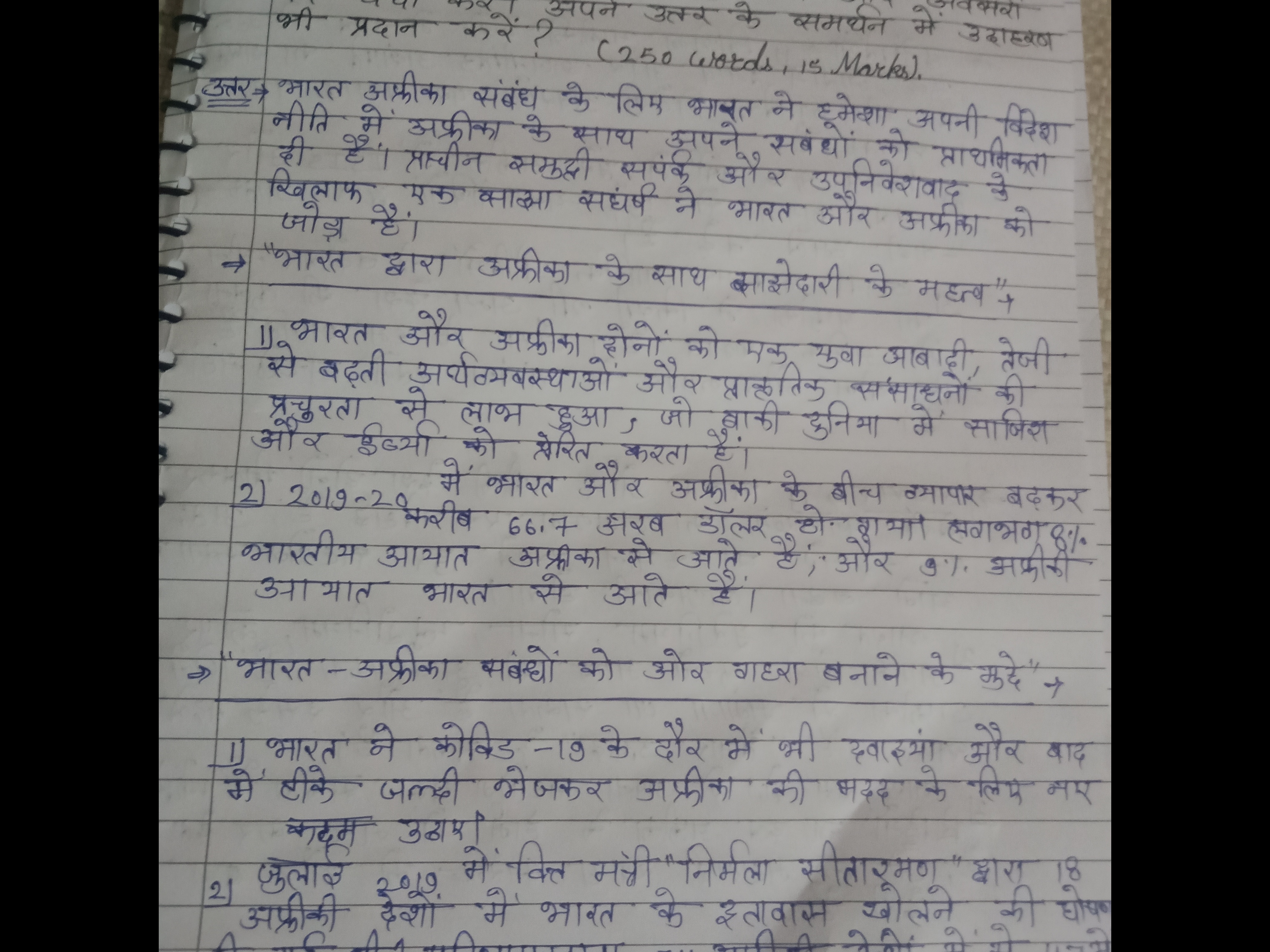 - भूमिका: भारत और अफ्रीका के बीच ऐतिहासिक और सांस्कृतिक संबंधों के महत्व को बताते हुए अपने उत्तर की शुरुआत करें, फिर भारत की वैश्विक आकांक्षाओं के संदर्भ में इस साझेदारी के महत्व को रेखांकित करें।