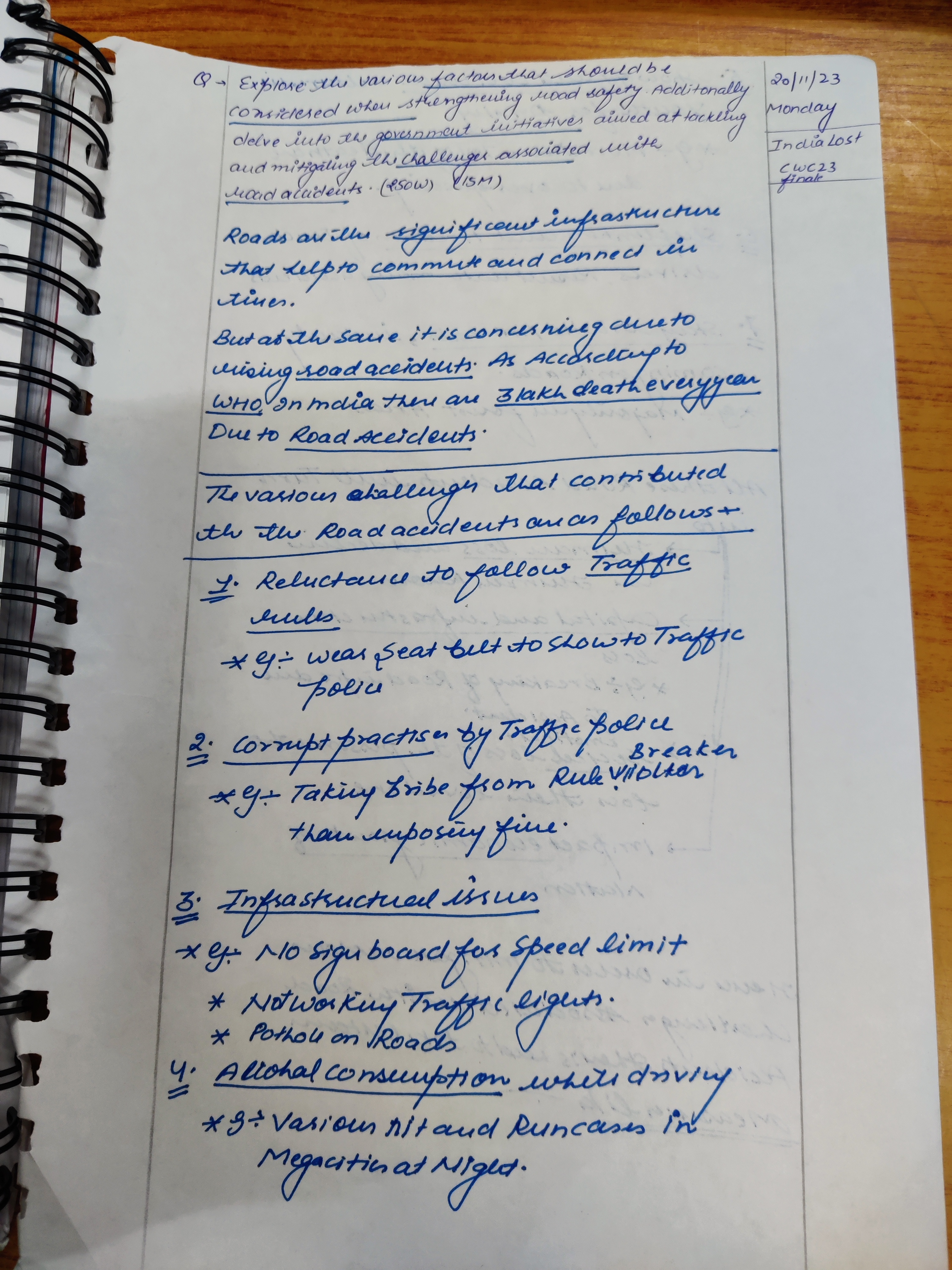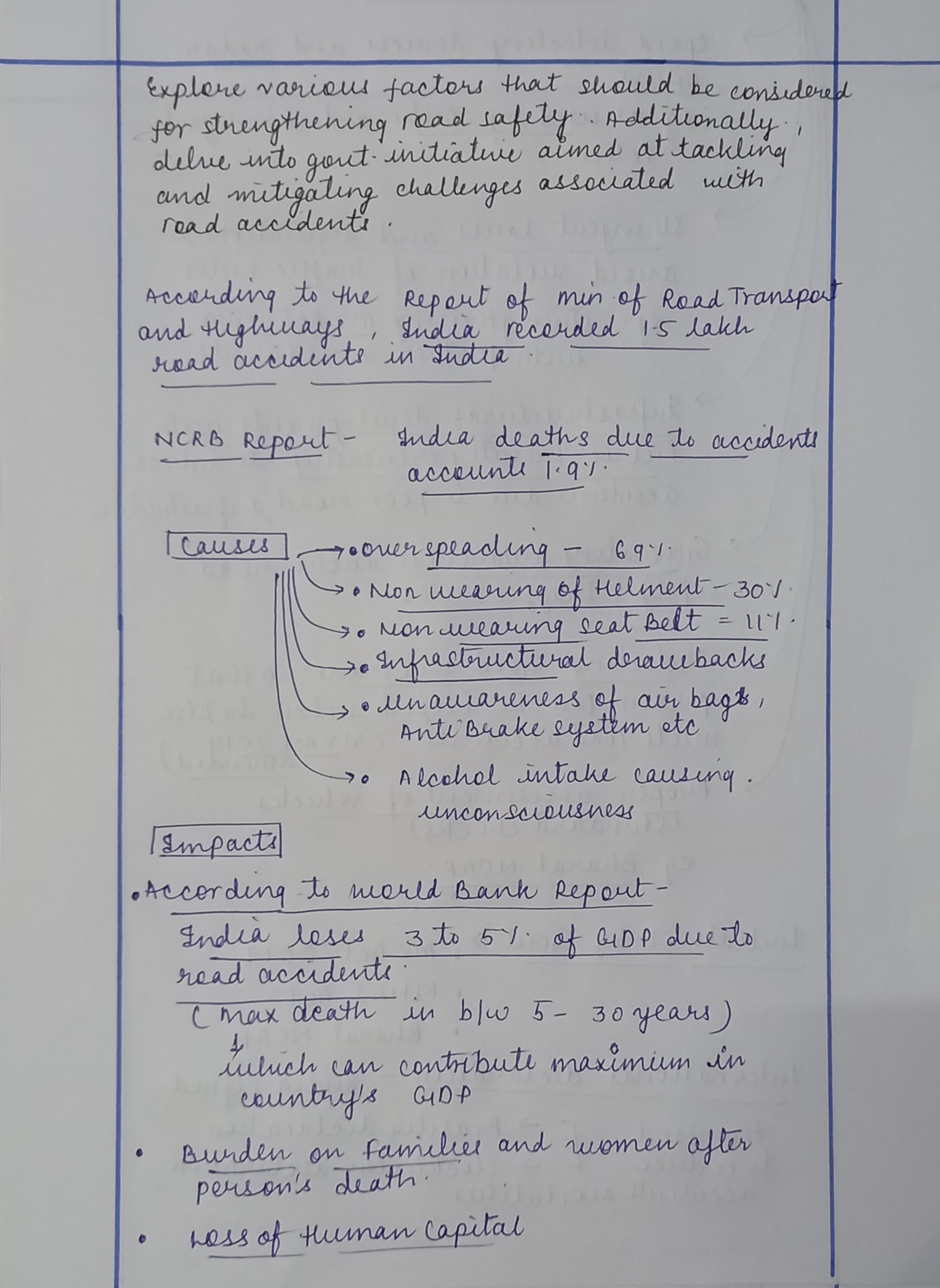 Road safety is a critical public health and development issue globally, and particularly in India, where the rate of road accidents is among the highest in the world. Strengthening road safety involves a multifaceted approach, addressing infrastructure, human behavior, vehicle safety, and emergency response mechanisms.