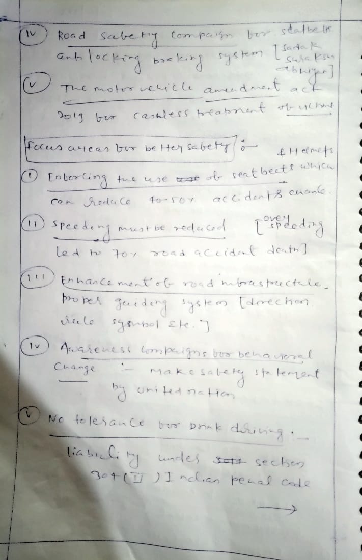 Strengthening road safety is a comprehensive task that requires the collaboration of government, private sector, civil society, and individual citizens. While significant steps have been taken through various initiatives, continuous evaluation and adaptation of strategies are necessary to keep pace with changing dynamics and technological advancements. A sustained focus on education, enforcement, engineering, and emergency care is essential to significantly reduce road accidents and fatalities in India.