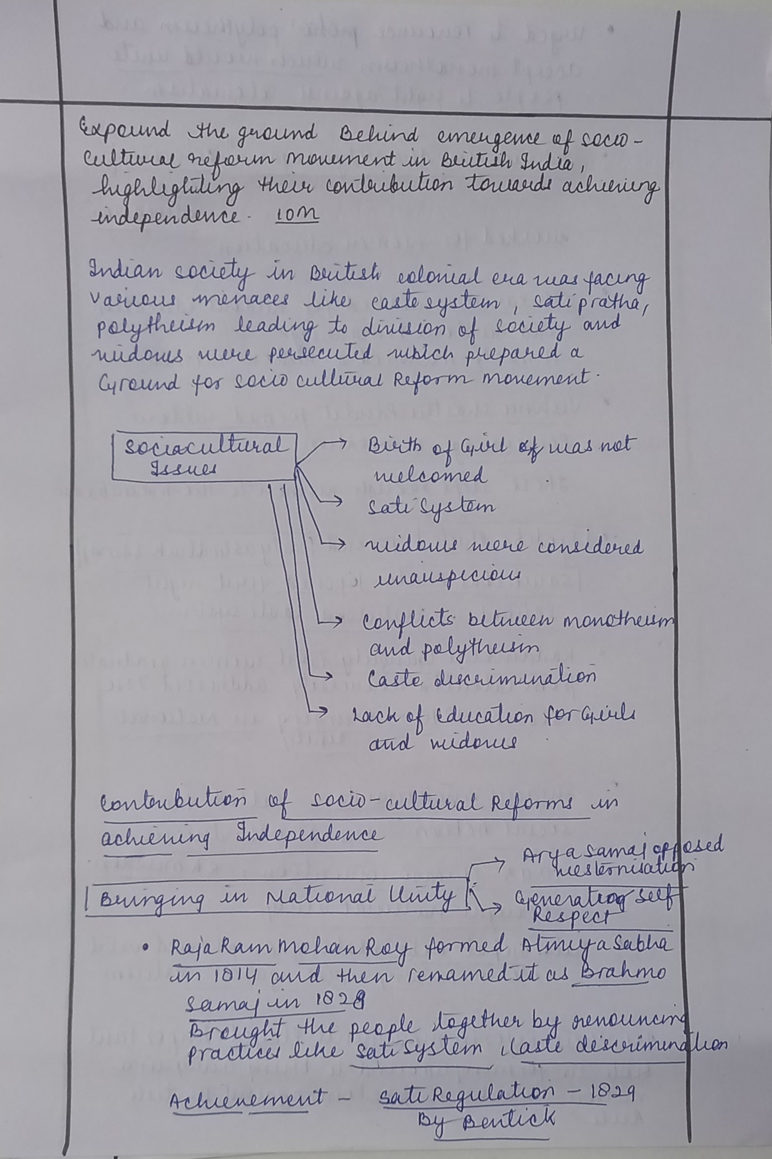 - Write about the contributions of socio-cultural reform movements towards achieving independence.