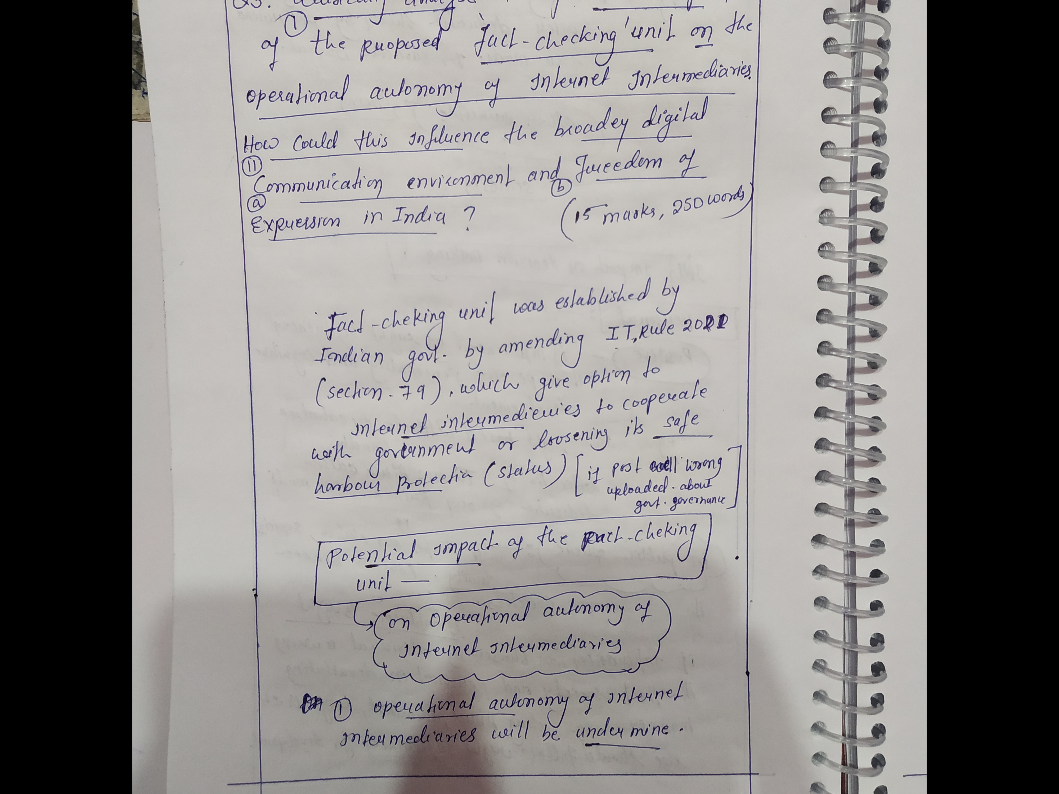 - Discuss the potential impact of the proposed ‘fact-checking’ unit on the operational autonomy of internet intermediaries.