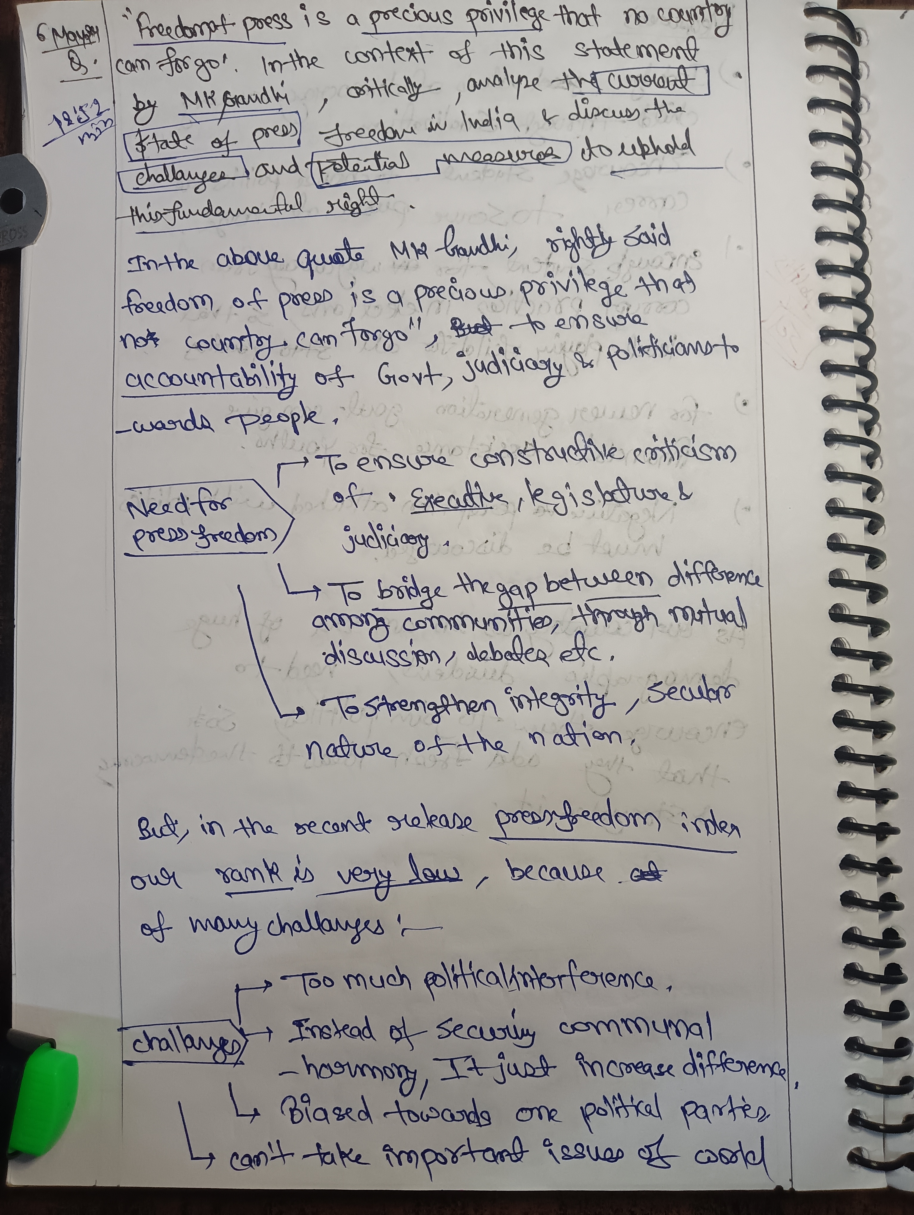 - Conclusion: Highlight the necessity of safeguarding press freedom in a democracy, emphasizing collective responsibility in addressing challenges and implementing measures to ensure a free press in India.