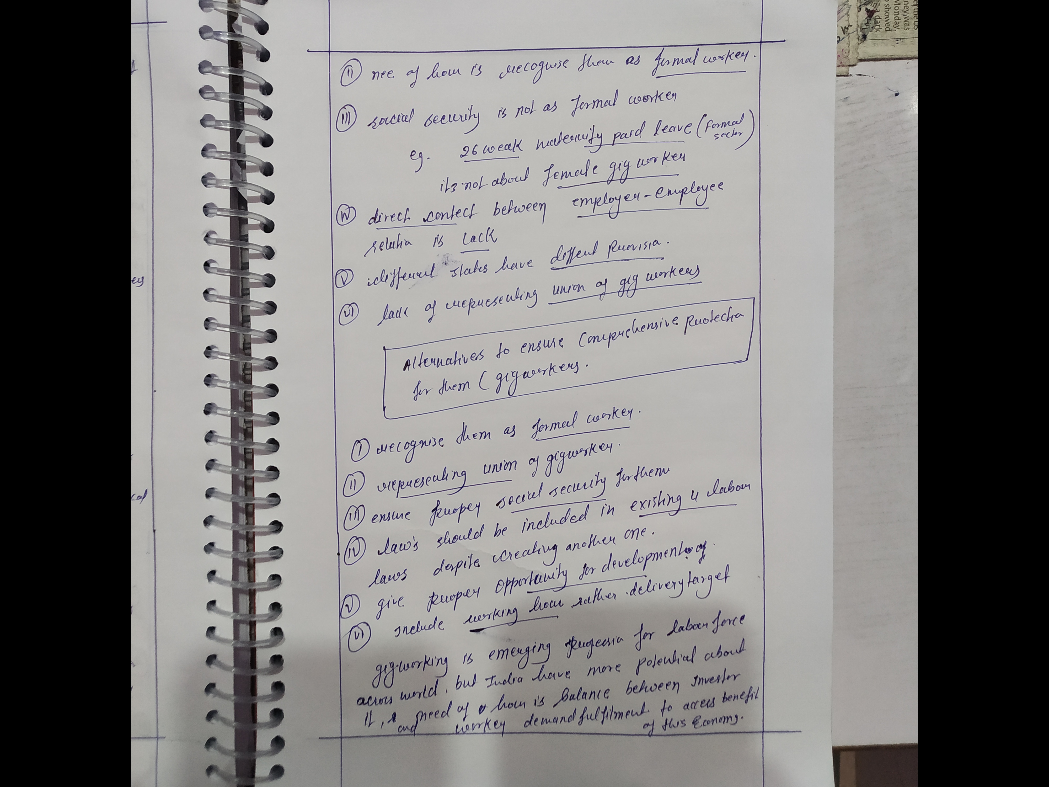 - Discuss the challenges that the gig economy presents to traditional labour laws and social security framework.