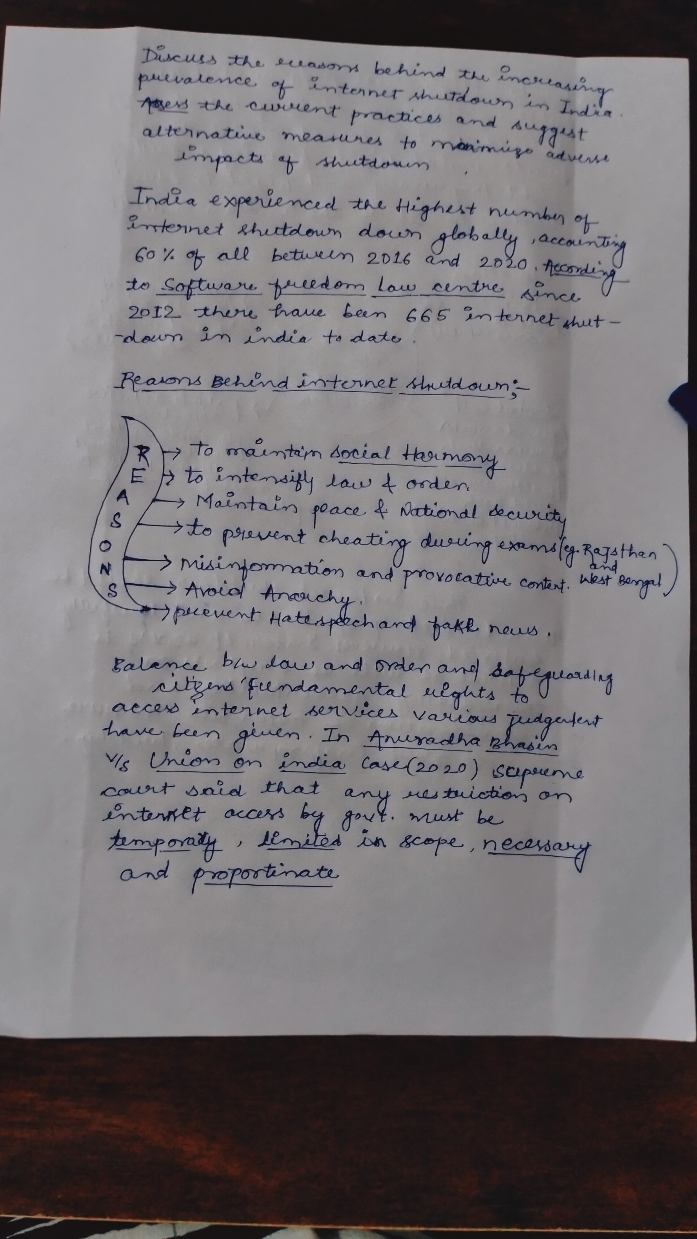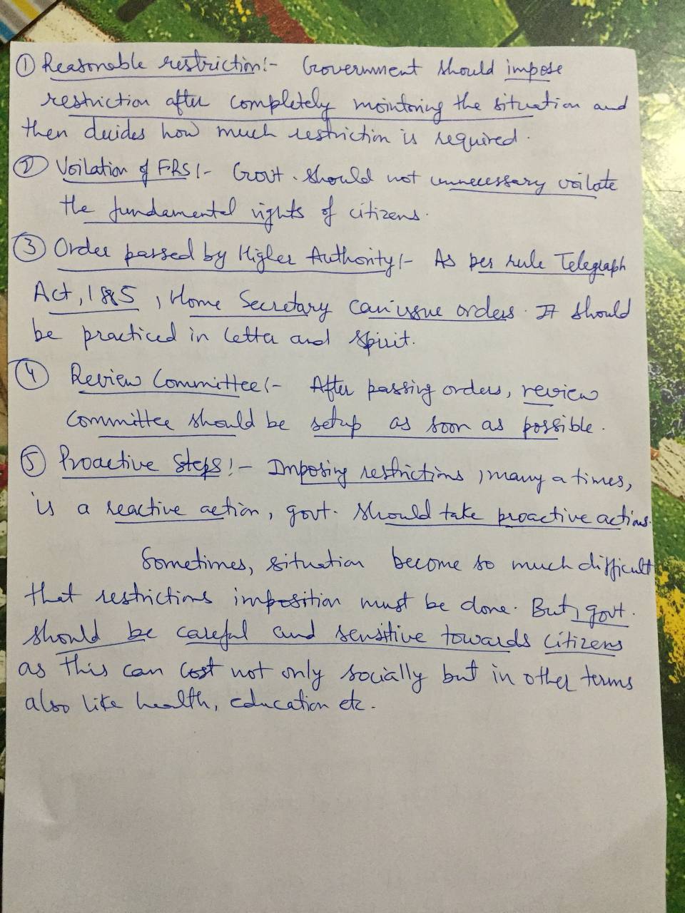 bring concepts like “Law of proportionality” this concept highlight that the restriction on the civil liberties only be in proportion of the eminent danger and not in excess..