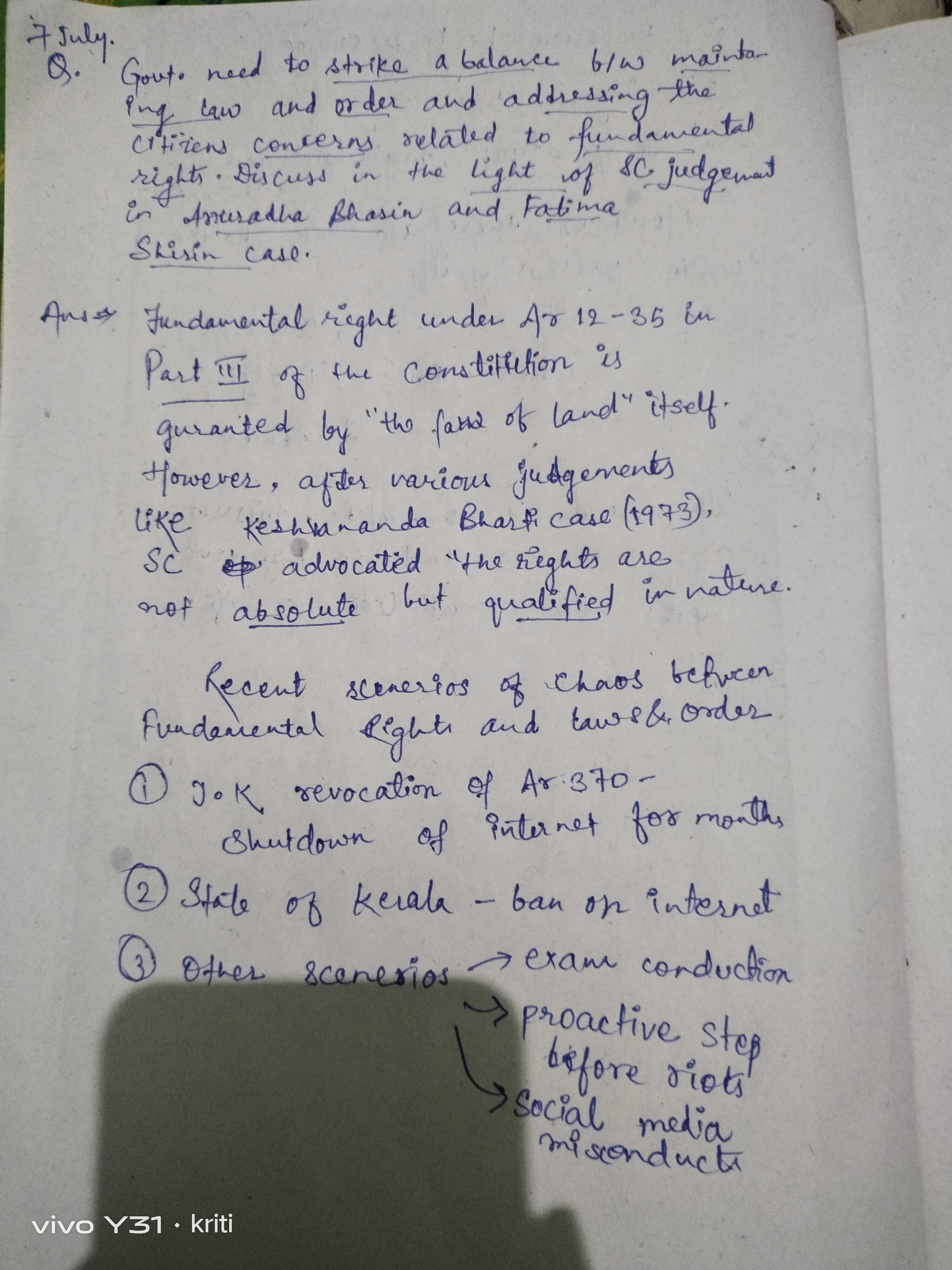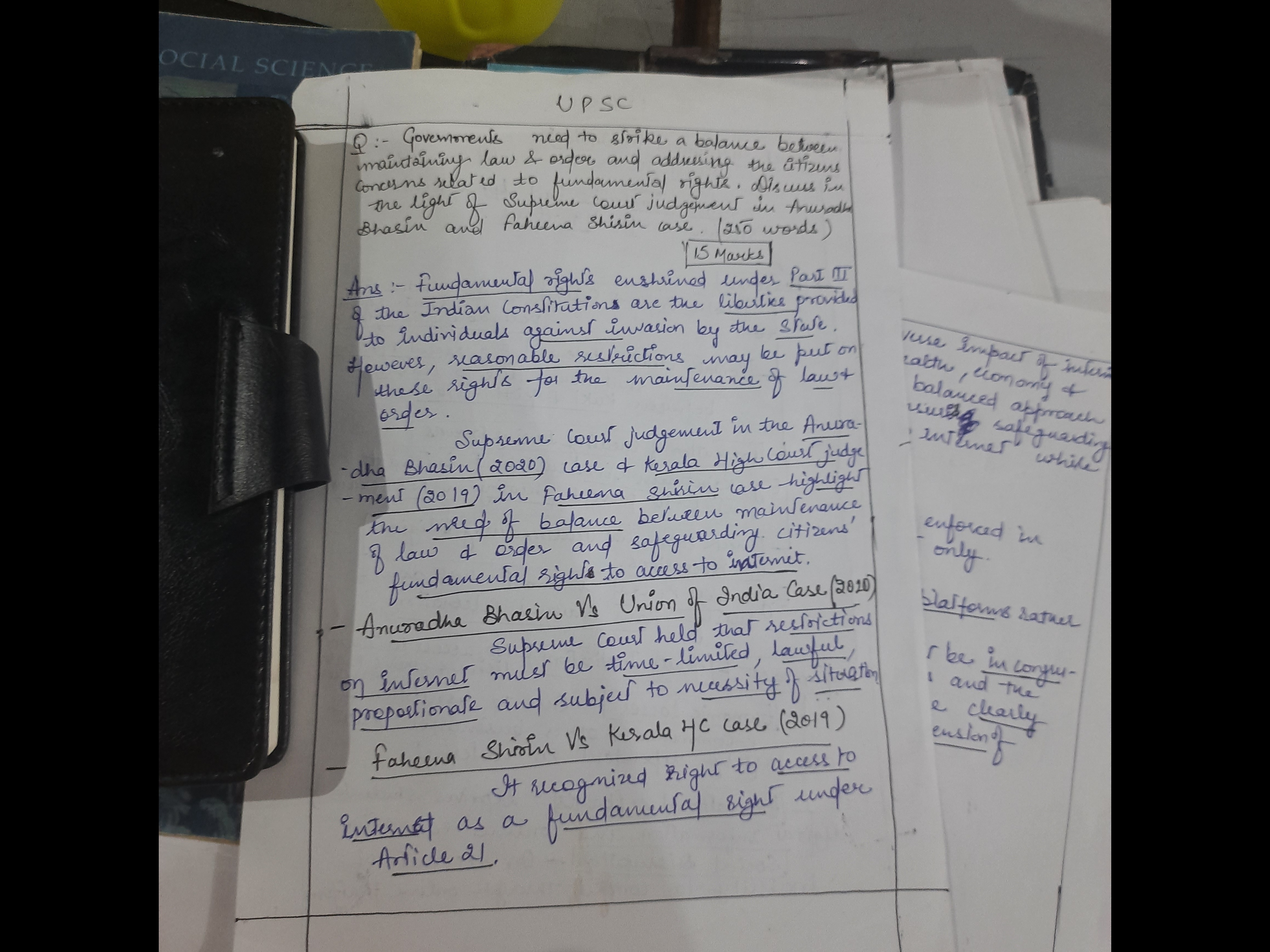 The tension between maintenance of law and order and the protection of fundamental rights is a classic dilemma faced by governments worldwide. A democratic government must strike a careful balance between these two aspects to ensure the functioning of a just and equitable society. This becomes especially relevant in situations where there’s a perceived threat to public order or national security. Two key judgments by the Supreme Court of India, in the Anuradha Bhasin v. Union of India case and the Faheema Shirin R.K v. State of Kerala and others case, highlight this tension and bring forth pertinent issues around this balancing act.