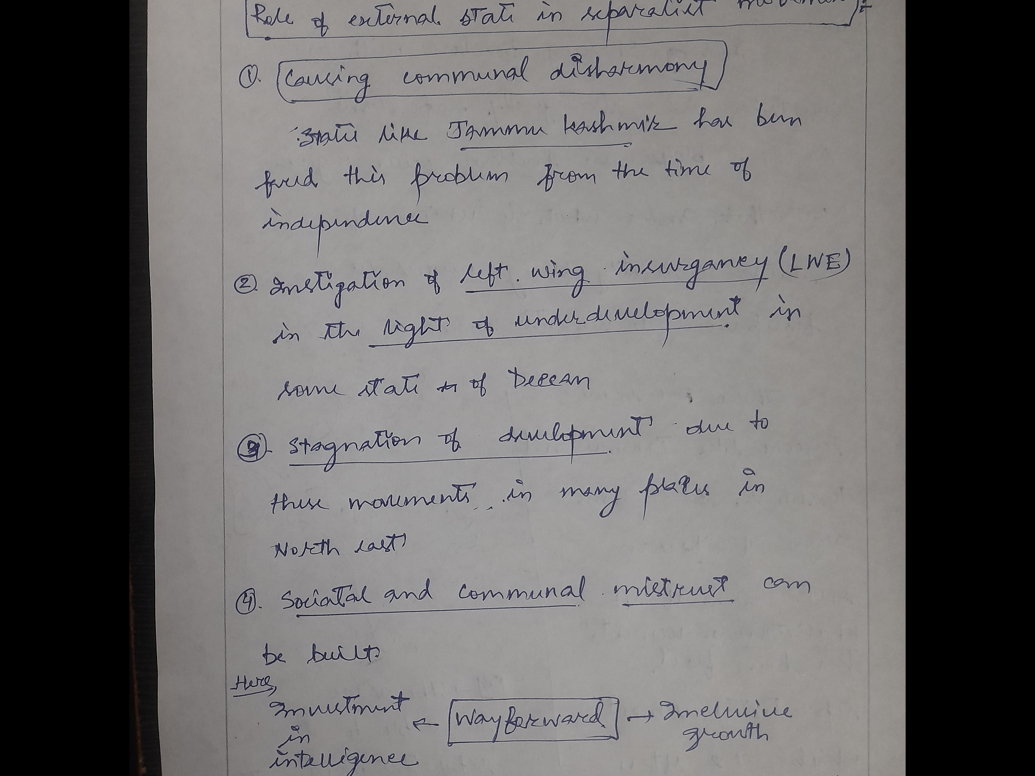 - Write role of external state actors in exacerbating separatist movements in specific regions of India