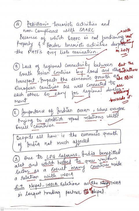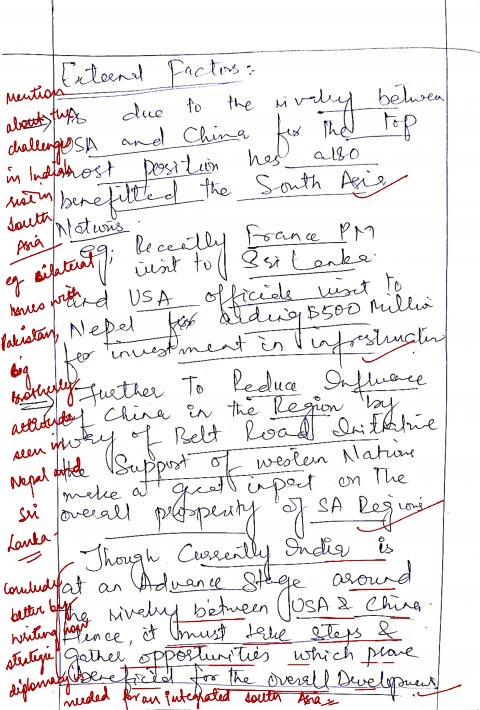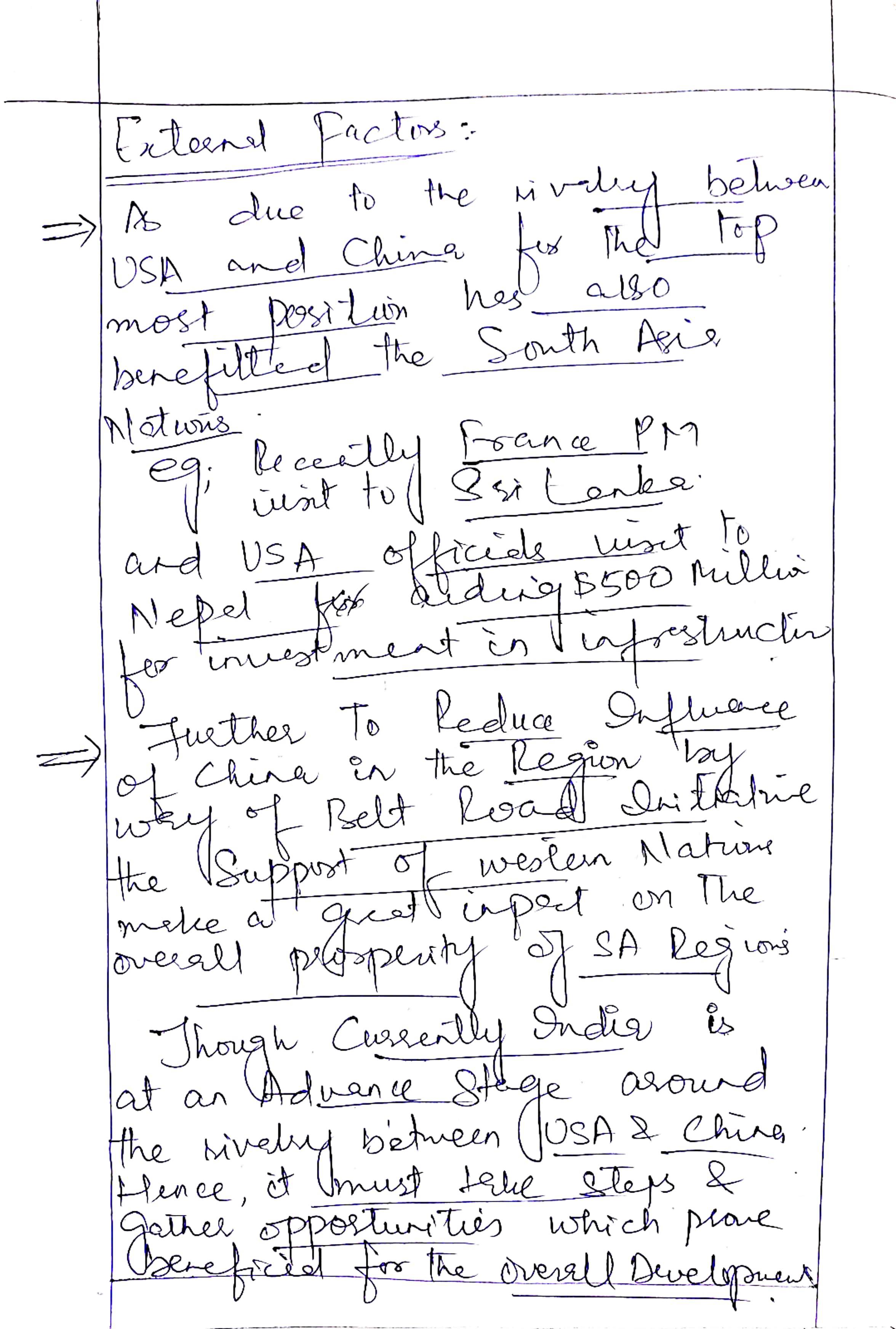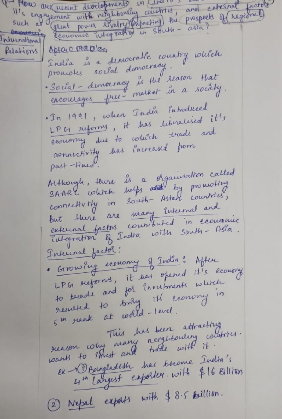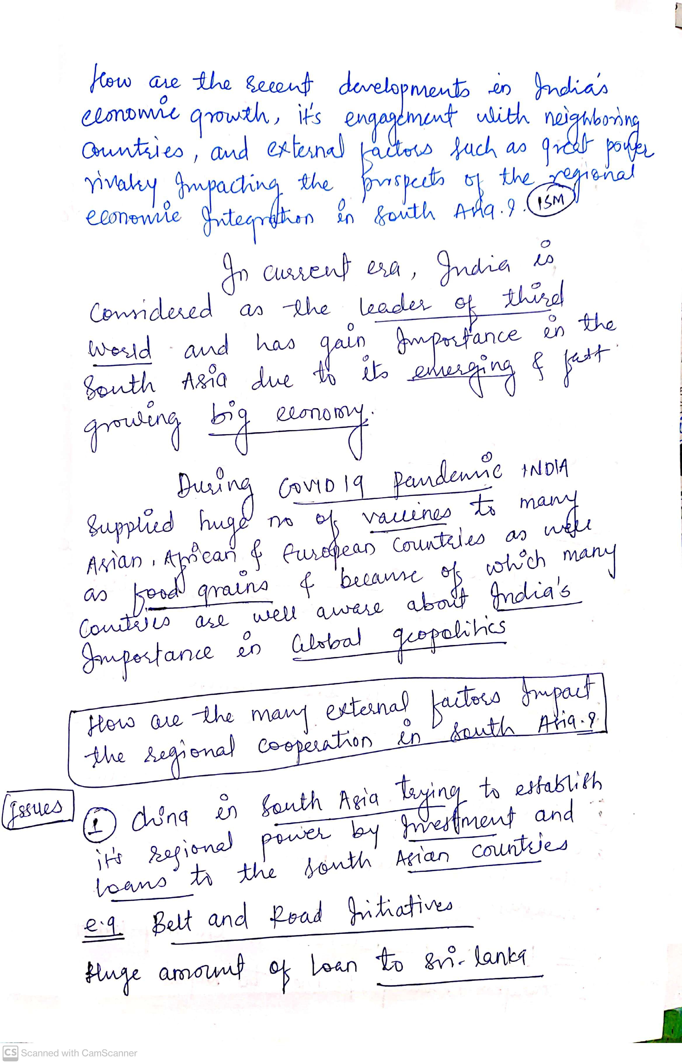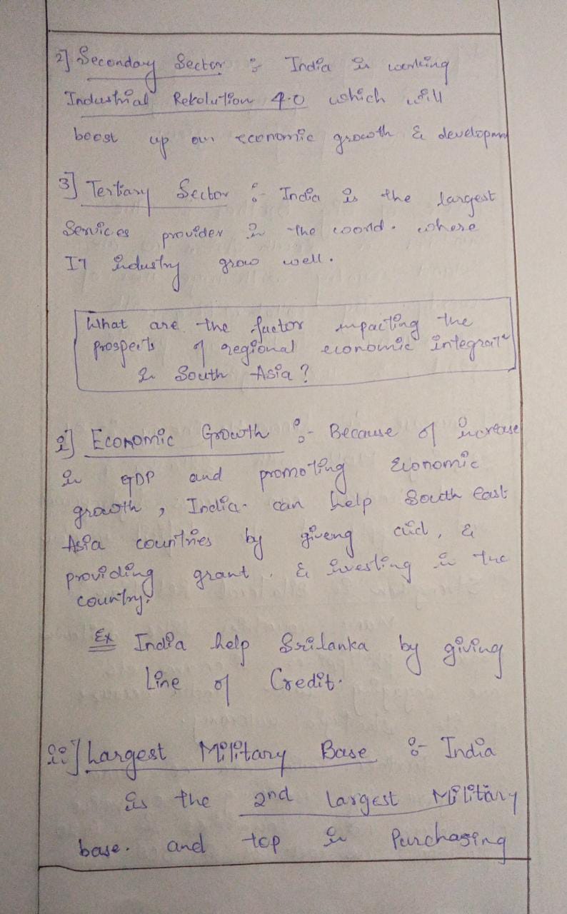 Q. How are recent developments in India’s economic growth, its engagement with neighboring countries, and external factors such as great power rivalry impacting the prospects of regional economic integration in South Asia? (15 Marks, 250 Words)