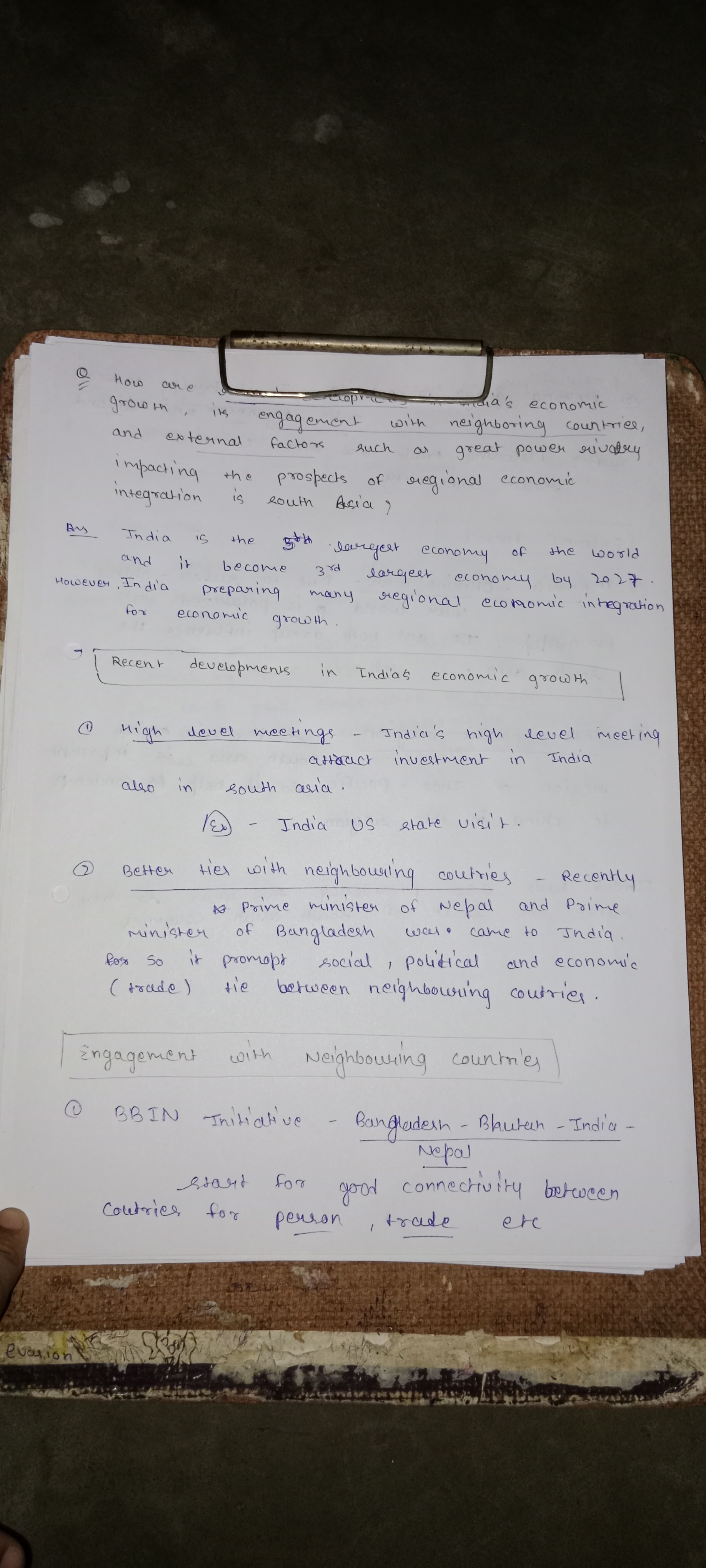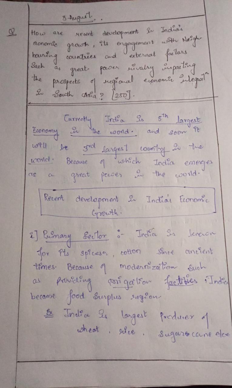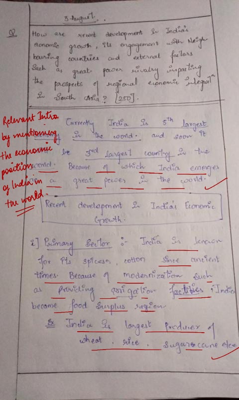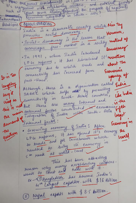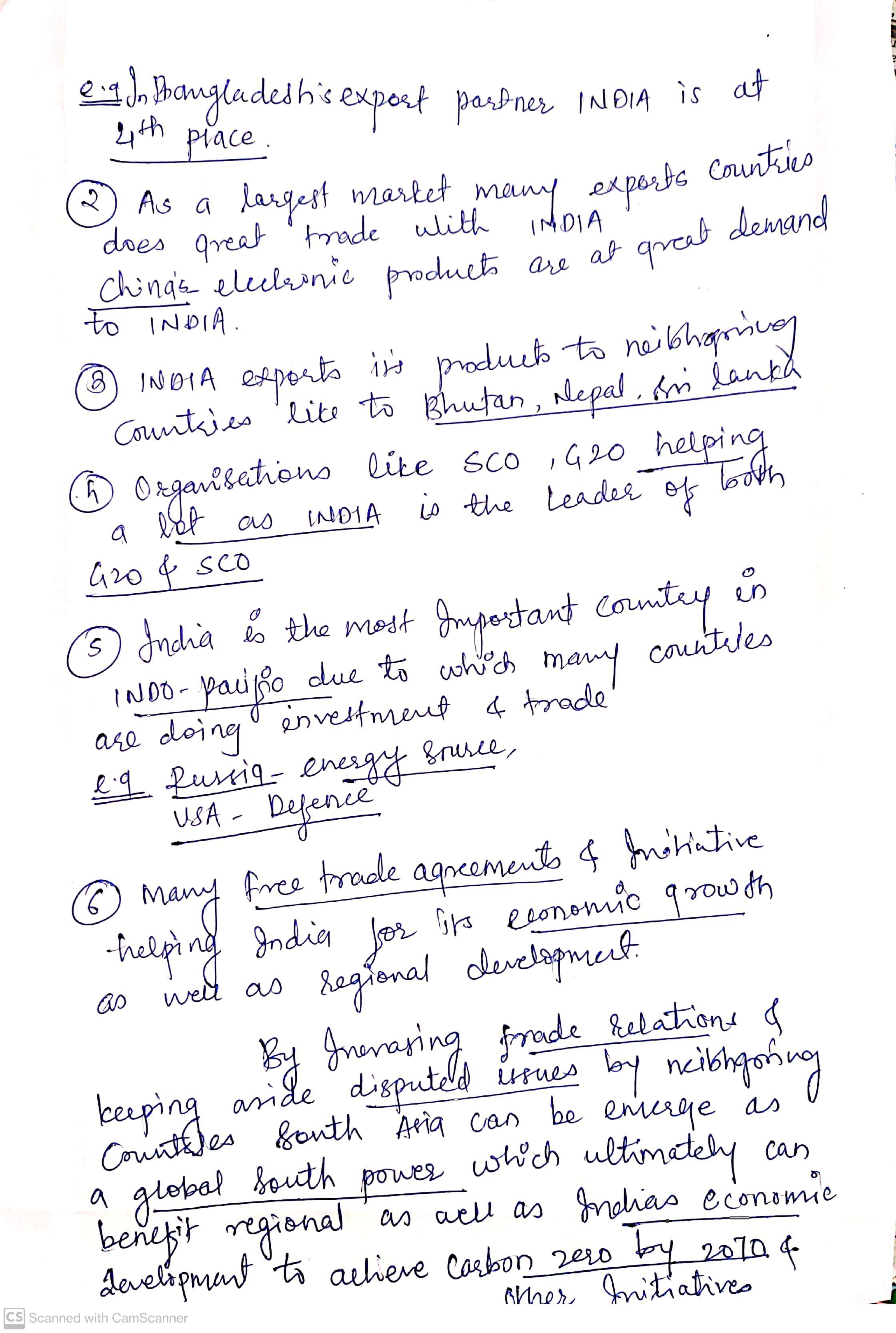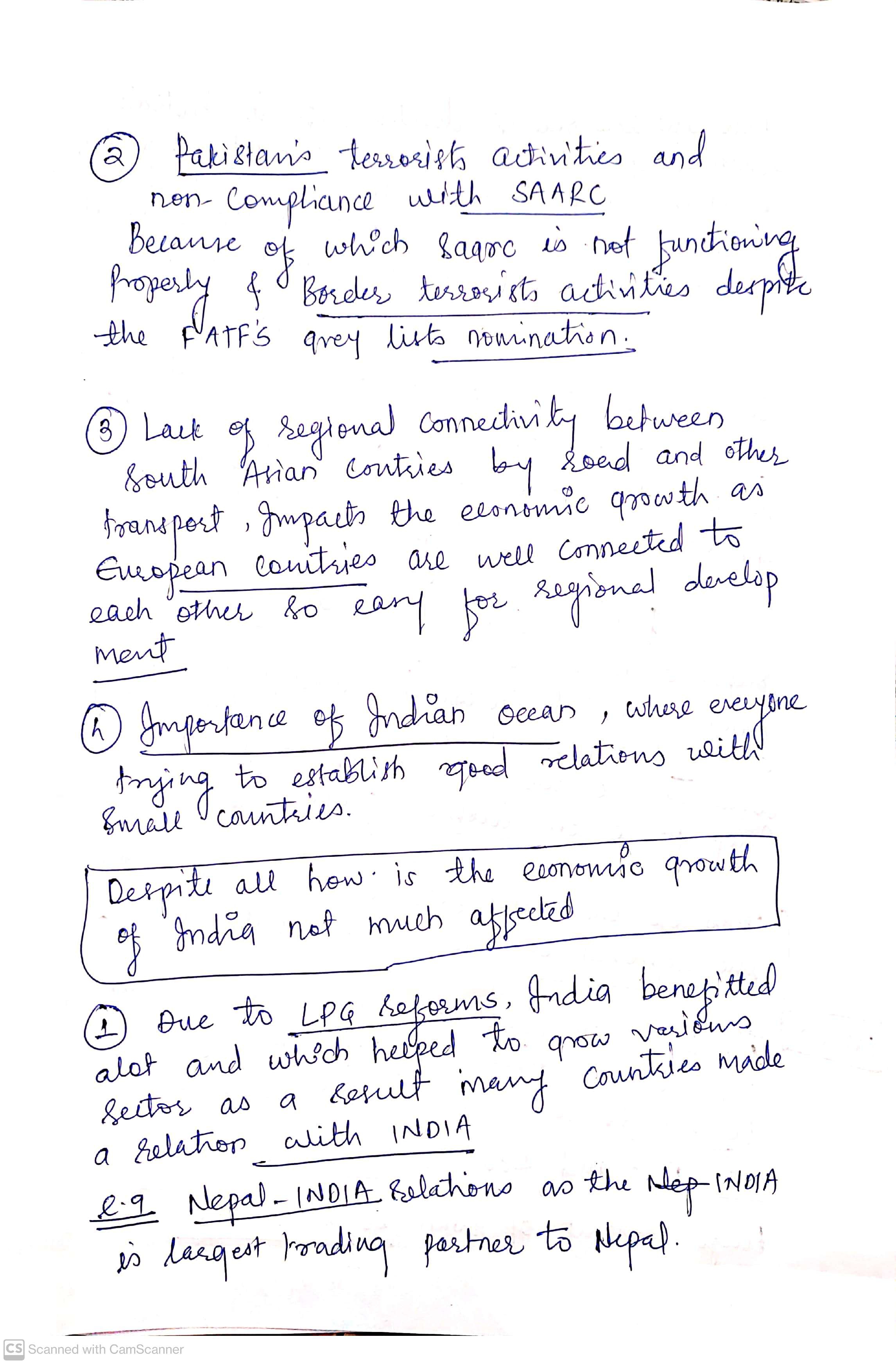 Q. How are recent developments in India’s economic growth, its engagement with neighboring countries, and external factors such as great power rivalry impacting the prospects of regional economic integration in South Asia? (15 Marks, 250 Words)