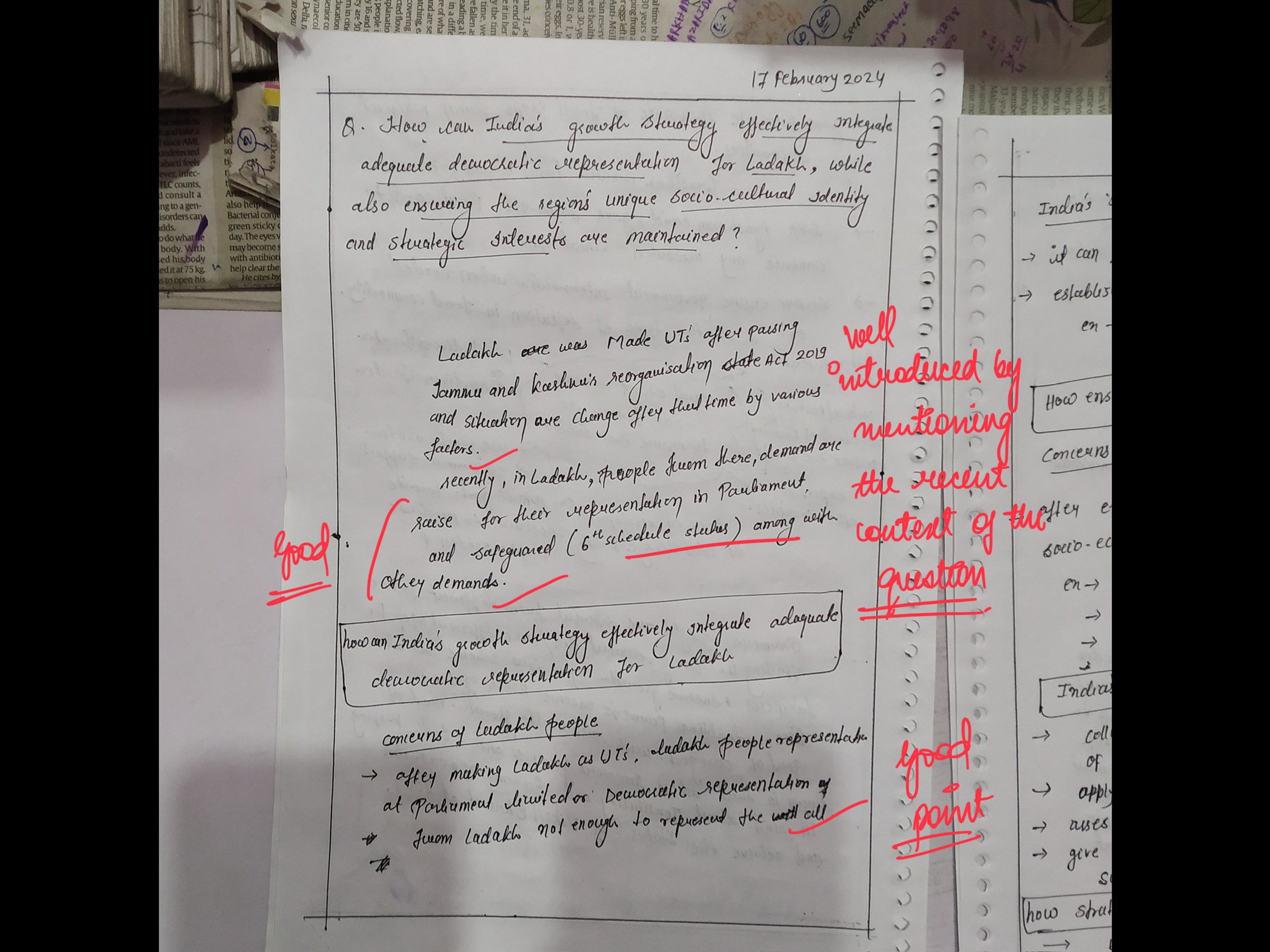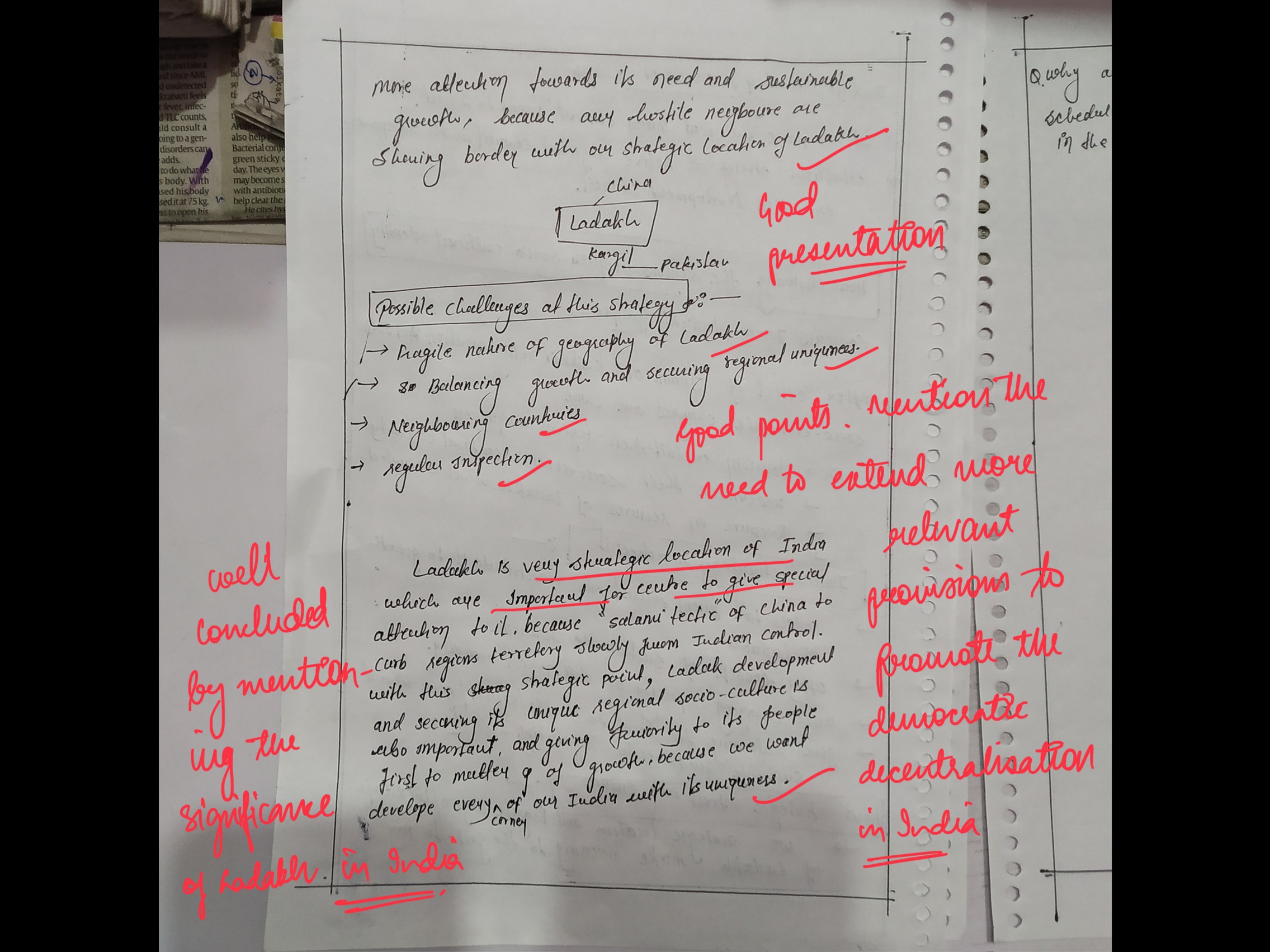 - Introduction: Address the need for a nuanced strategy in integrating Ladakh into India’s development plan, focusing on balancing democratic values, cultural preservation, and strategic concerns.