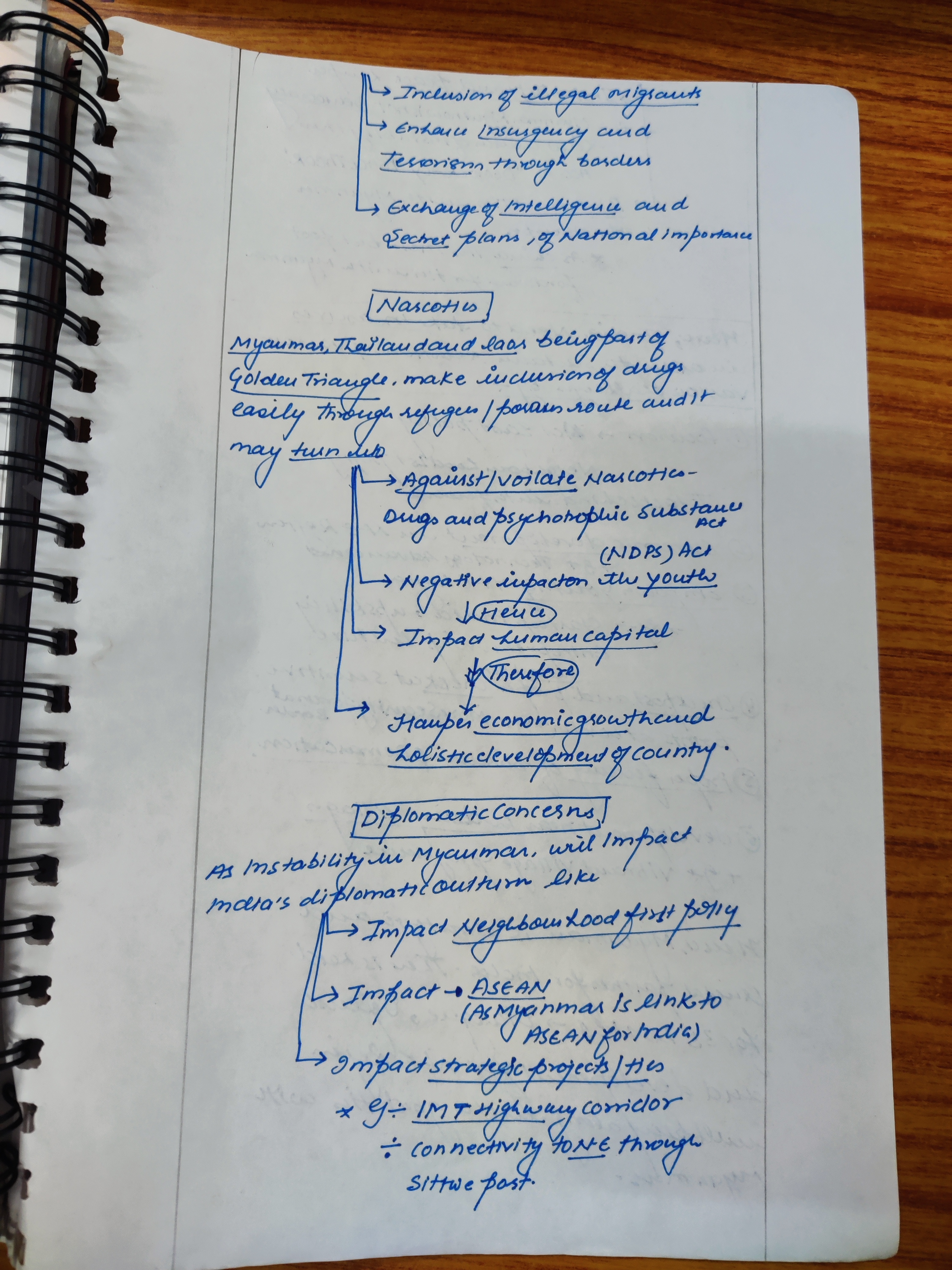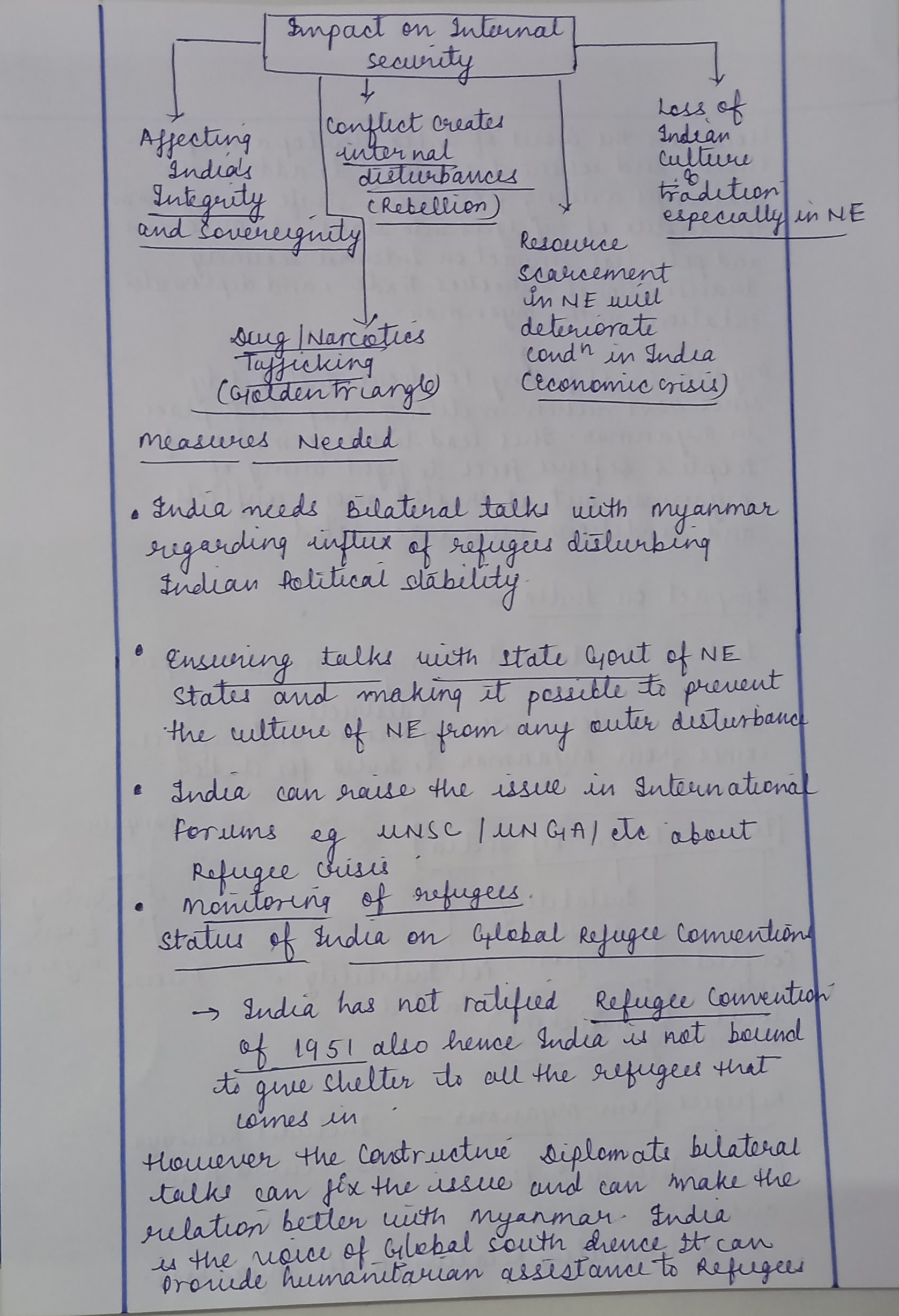 • Introduction: Begin by highlighting the ongoing civil strife in Myanmar and its direct impact on India, especially in border states like Mizoram and Manipur.