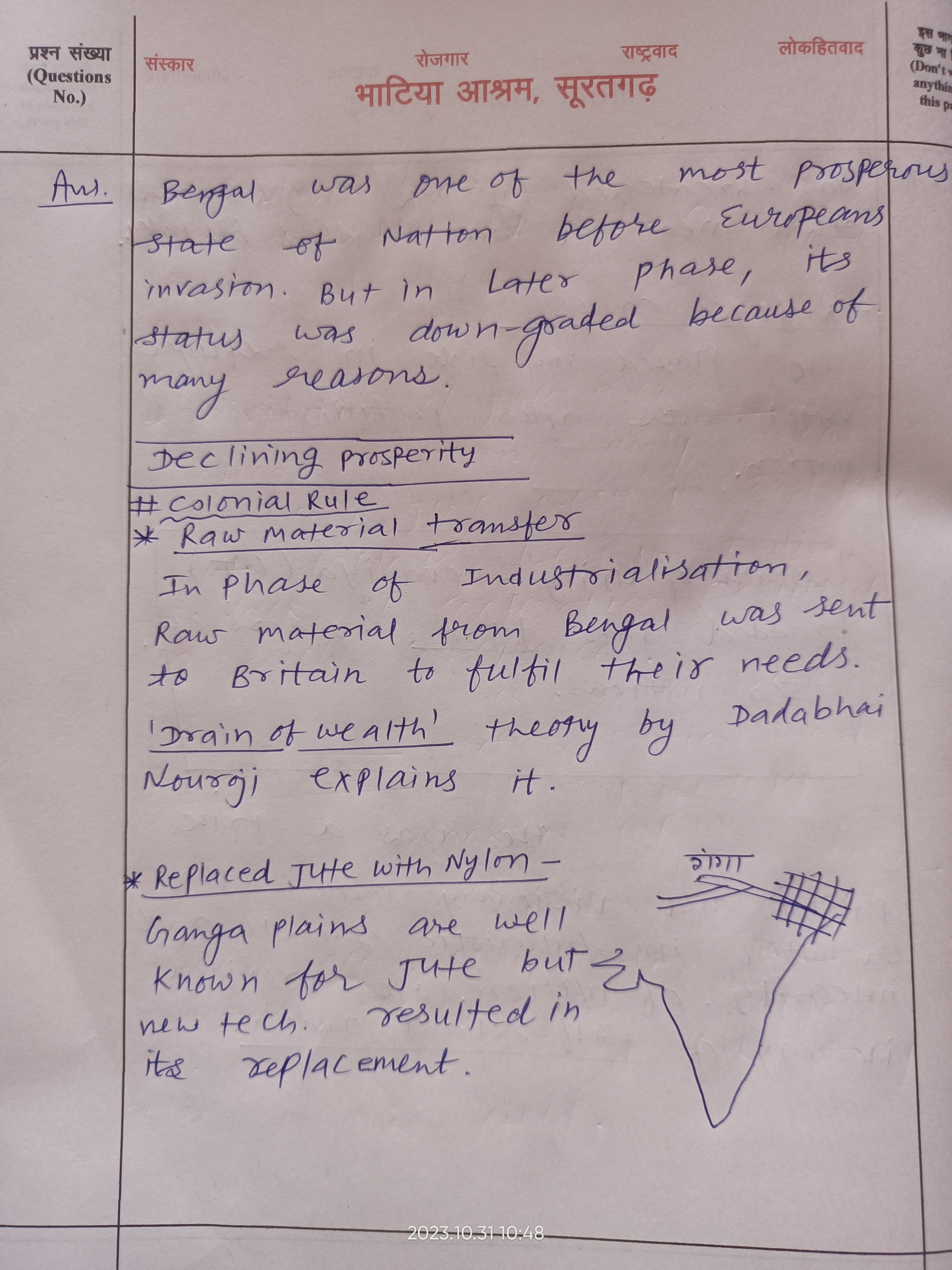 - Colonial Exploitation: The British shifted their capital from Kolkata to Delhi in 1911, marking a symbolic decline of Bengal’s prominence. Additionally, Bengal faced de-industrialization during the colonial era, with traditional industries like muslin suffering.