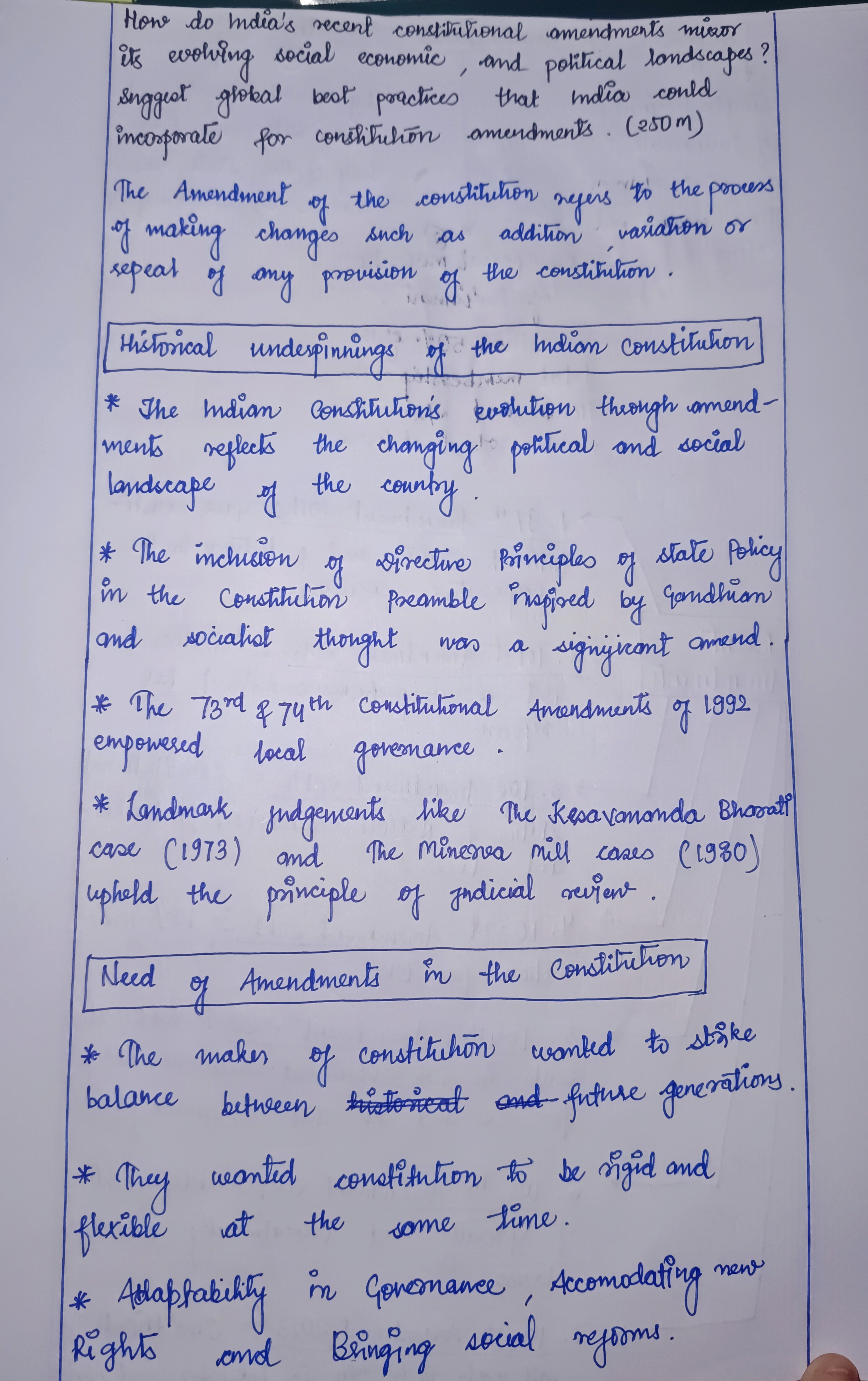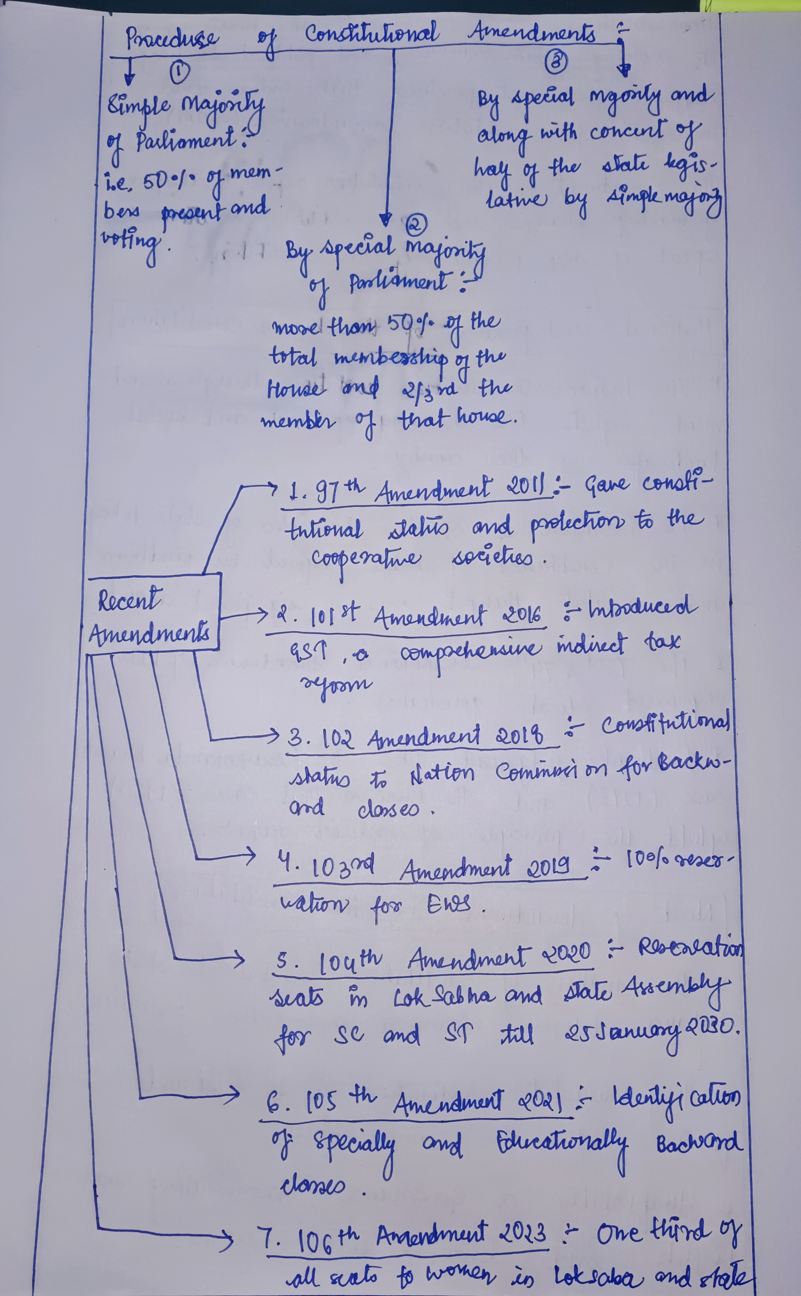 - Write how India’s recent constitutional amendments mirror its evolving social, economic and political landscapes