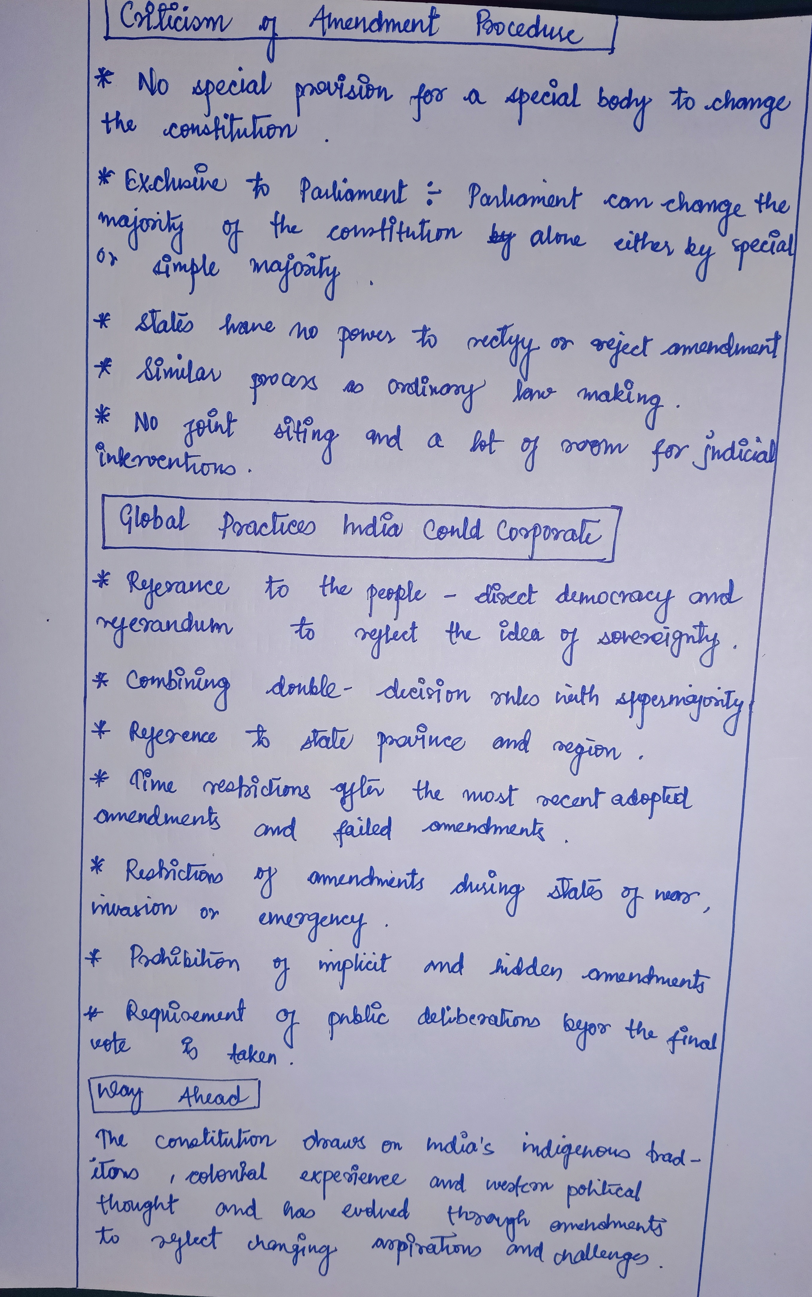India’s constitutional amendments indeed mirror its evolving landscape. While the Indian amendment process is robust, imbibing global best practices can further fortify its amendment process, ensuring vibrant democratic ethos, responsive governance, and a resilient Constitution that stands the test of time and diverse challenges.