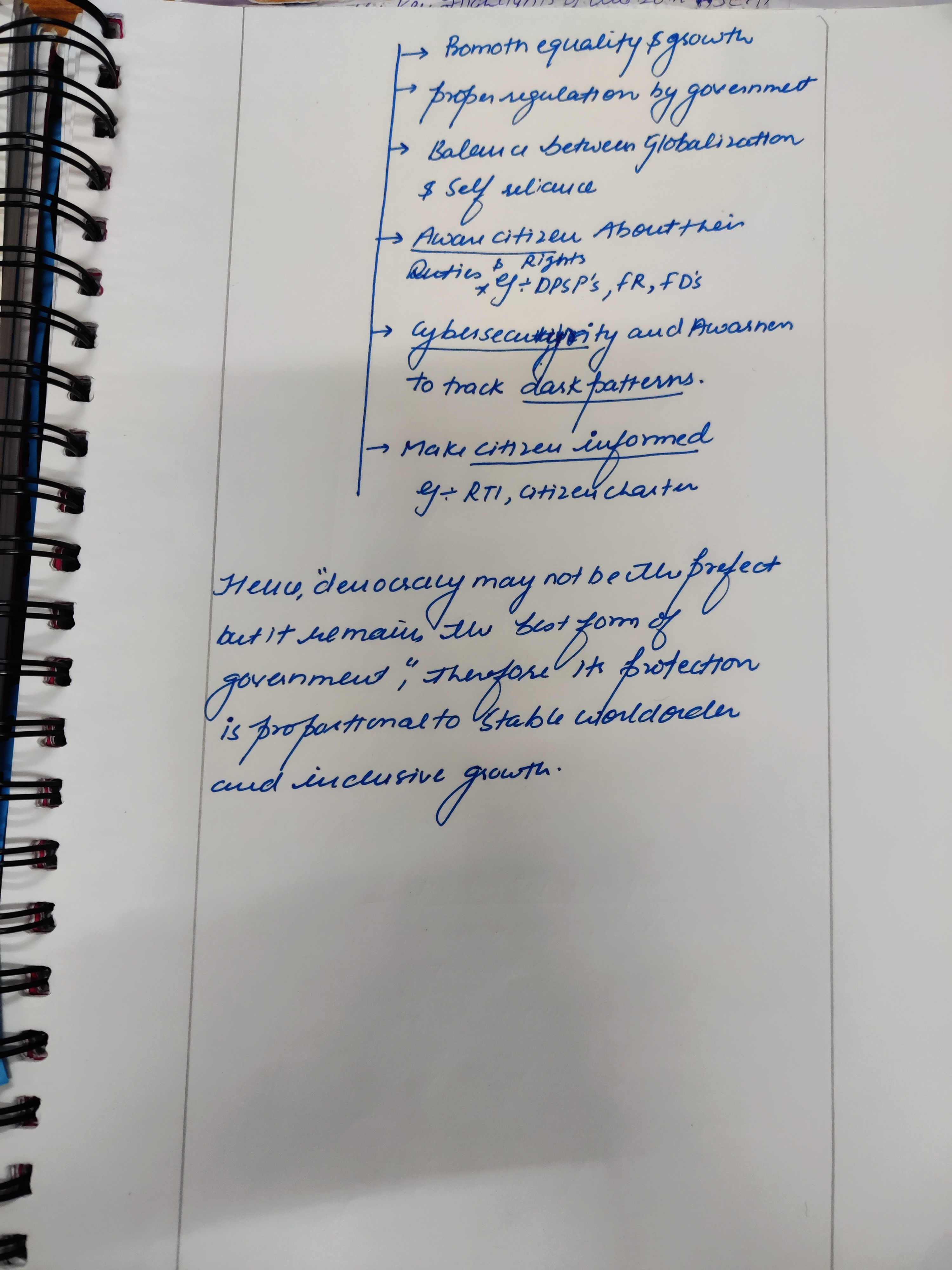 The challenges posed by digital technologies, unregulated globalization, and economic inequality to democracy are not insurmountable, but they require vigilant regulation, responsive policy-making, and robust institutional mechanisms to uphold democratic values. In India, there is a pressing need for comprehensive data protection laws, fair digital literacy programs, and a balanced approach to globalization that protects domestic interests. To tackle inequality, policies must focus on inclusive growth, equitable taxation, and the eradication of corruption. Upholding democracy in the age of rapid change demands not just government action but also a collective commitment to the principles of justice, liberty, equality, and fraternity as enshrined in the Constitution of India. Only by addressing these challenges holistically can the world’s largest democracy hope to set a global example of how diversity and technology can coexist with democratic values and socio-economic equity.