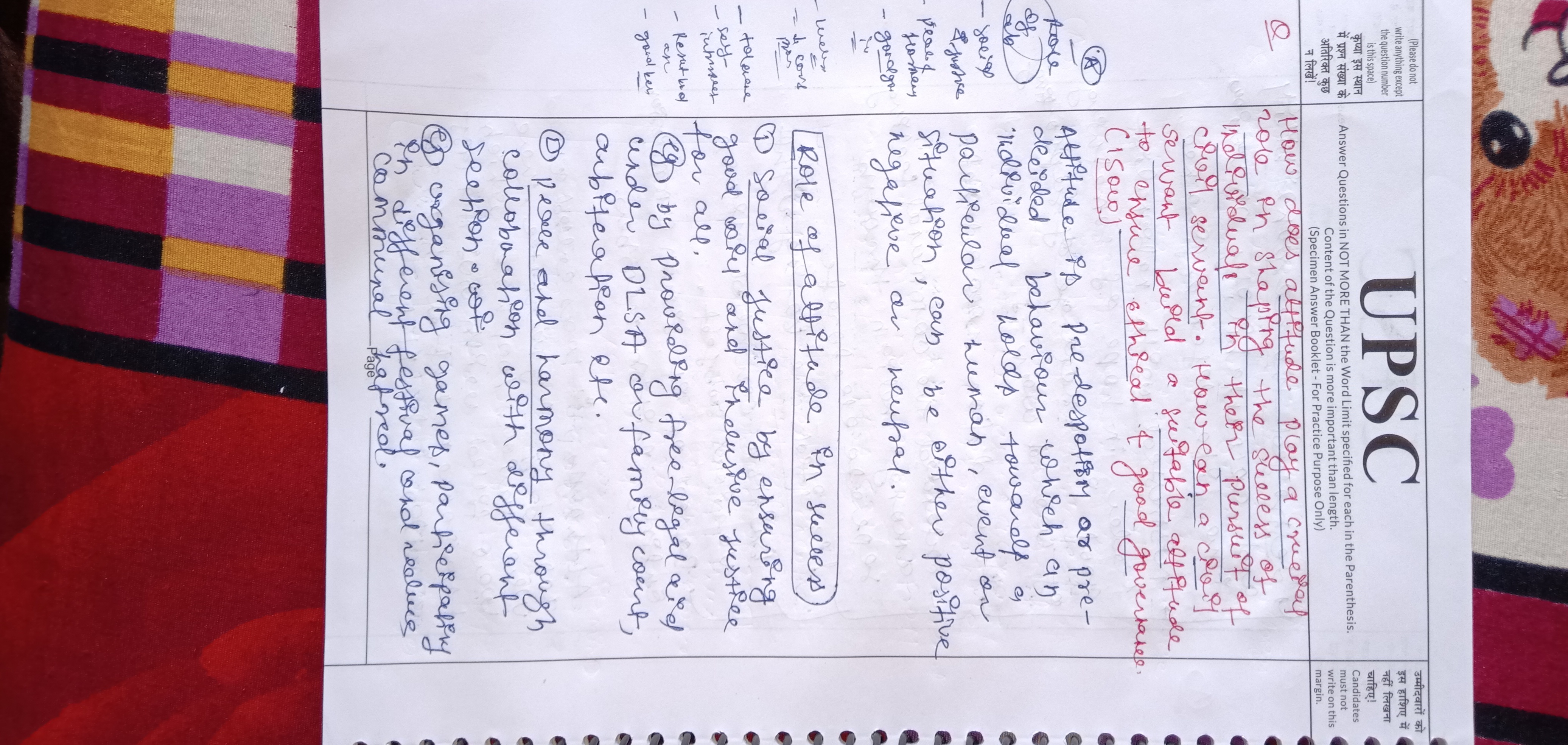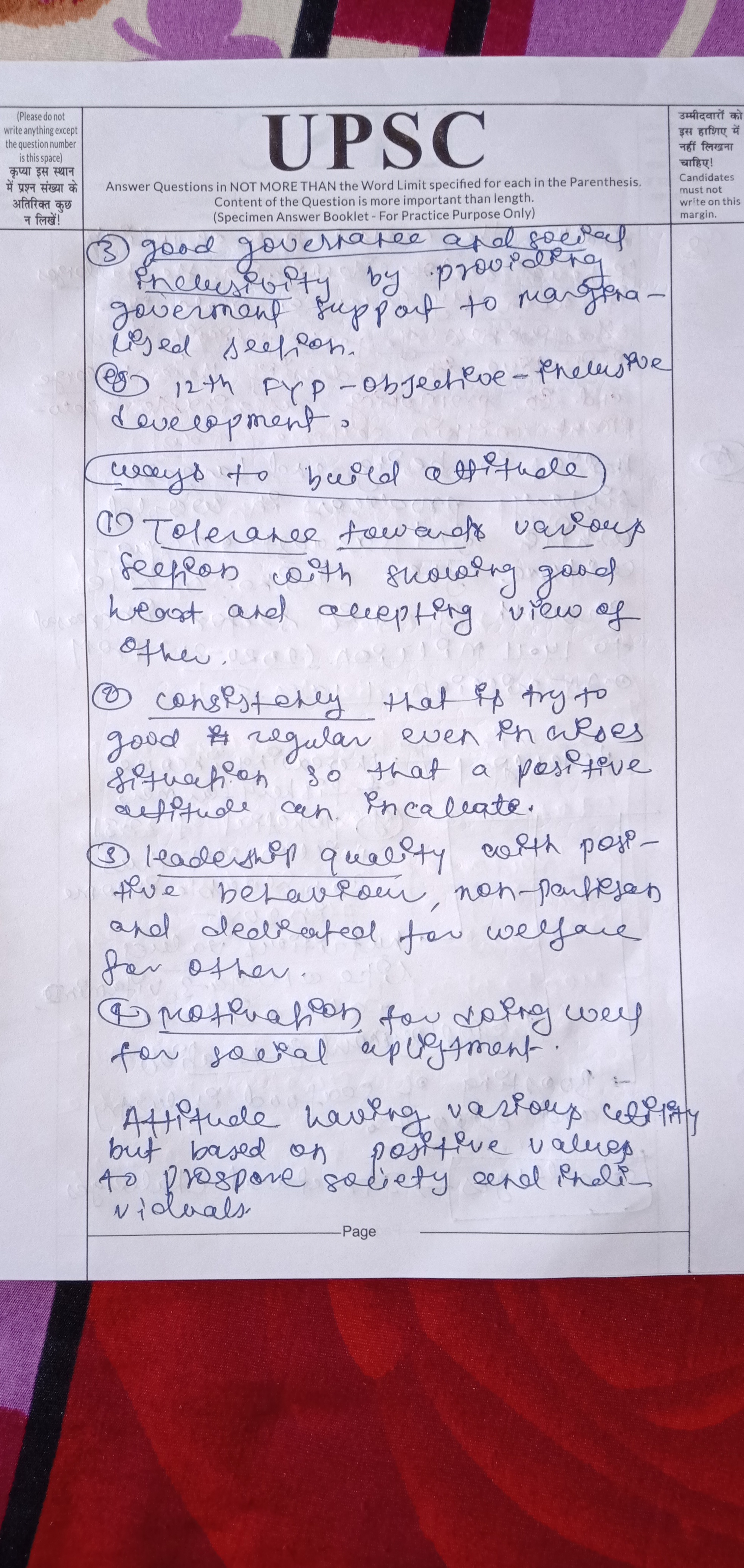 Q. How does attitude play a crucial role in shaping the success of individuals in their pursuit of civil services. How can a civil servant build a suitable attitude to ensure ethical and good governance? (10 marks, 150 words) additional