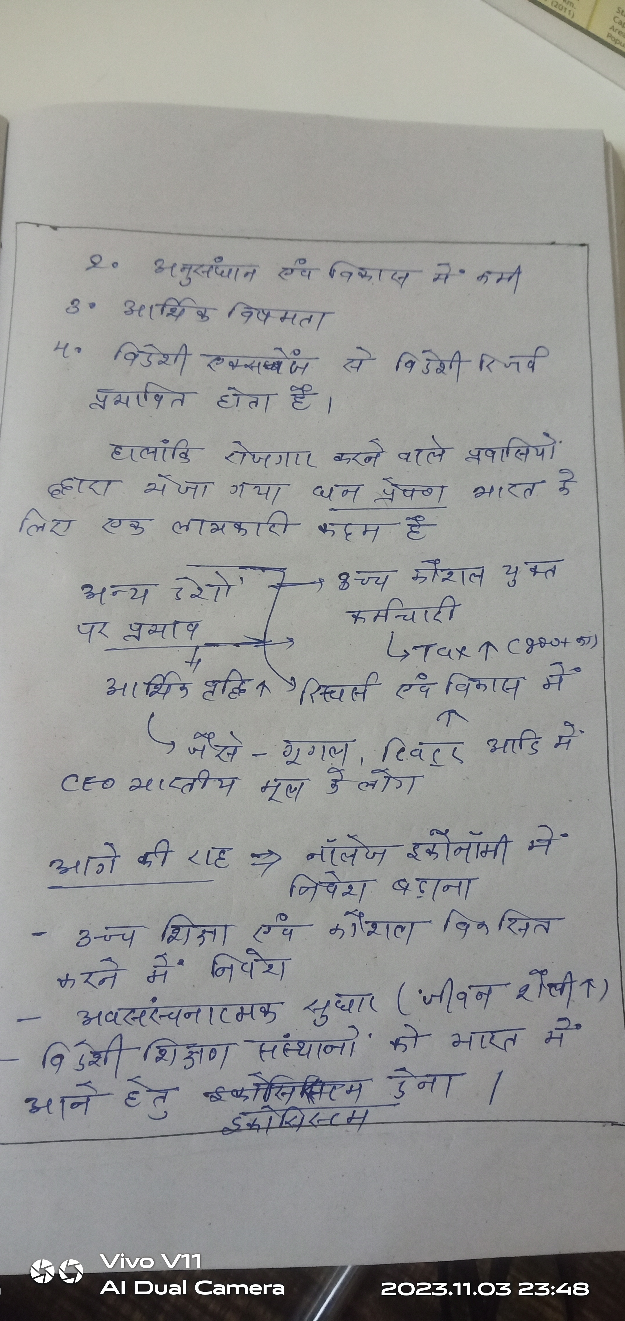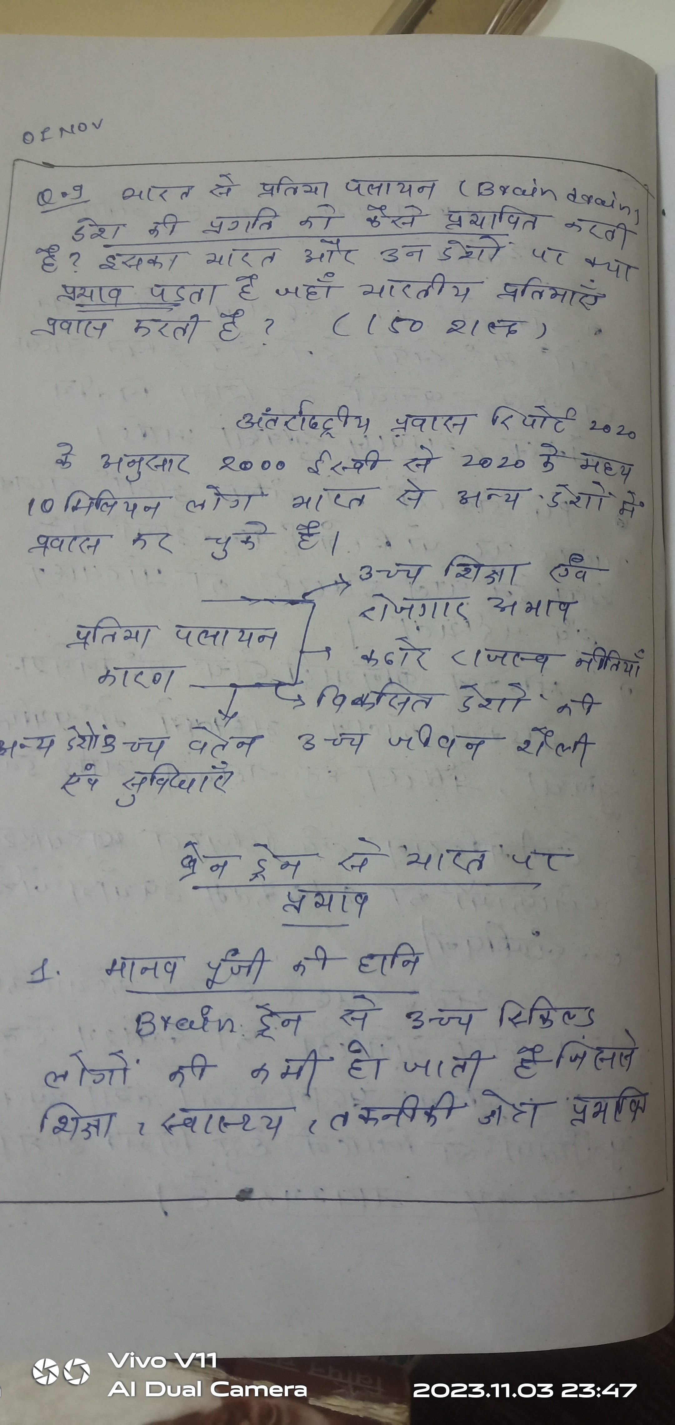 - निष्कर्ष: प्रतिभा पलायन के दोहरे प्रभाव को संक्षेप में प्रस्तुत करते हुए निष्कर्ष निकालें, इस बात पर जोर देते हुए कि जहां यह भारत के लिए प्रतिभा की हानि को रेखांकित करता है, वहीं यह वैश्विक जुड़ाव के अवसर भी पैदा करता है।