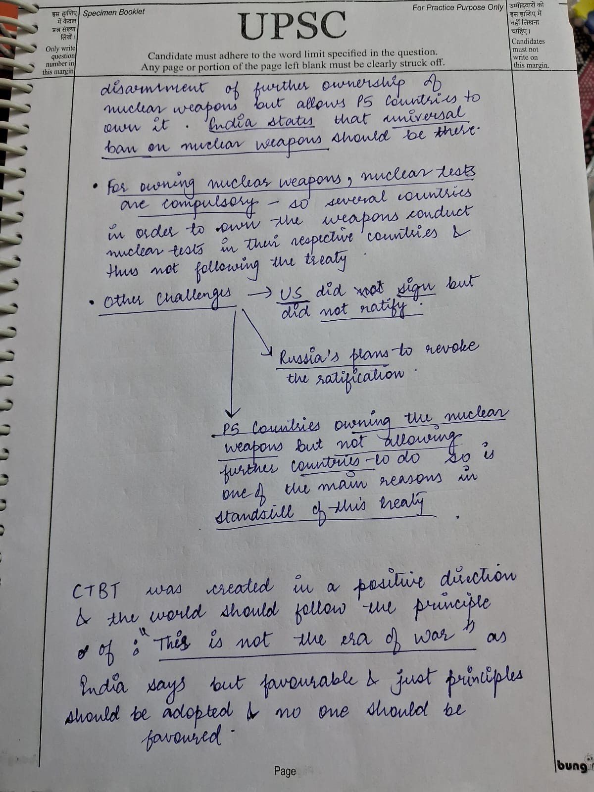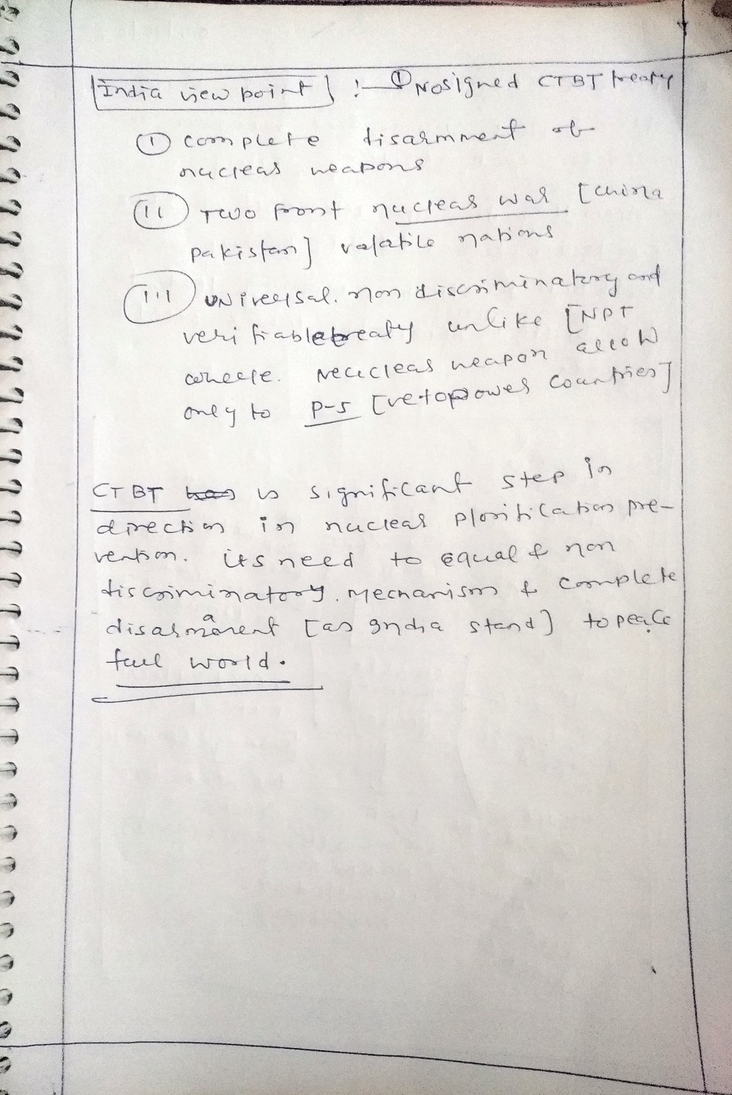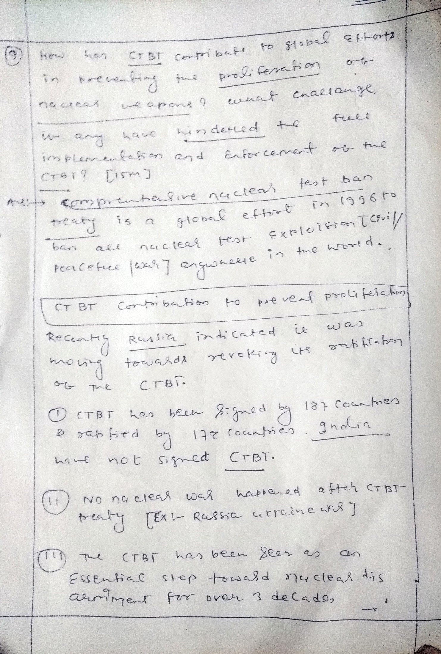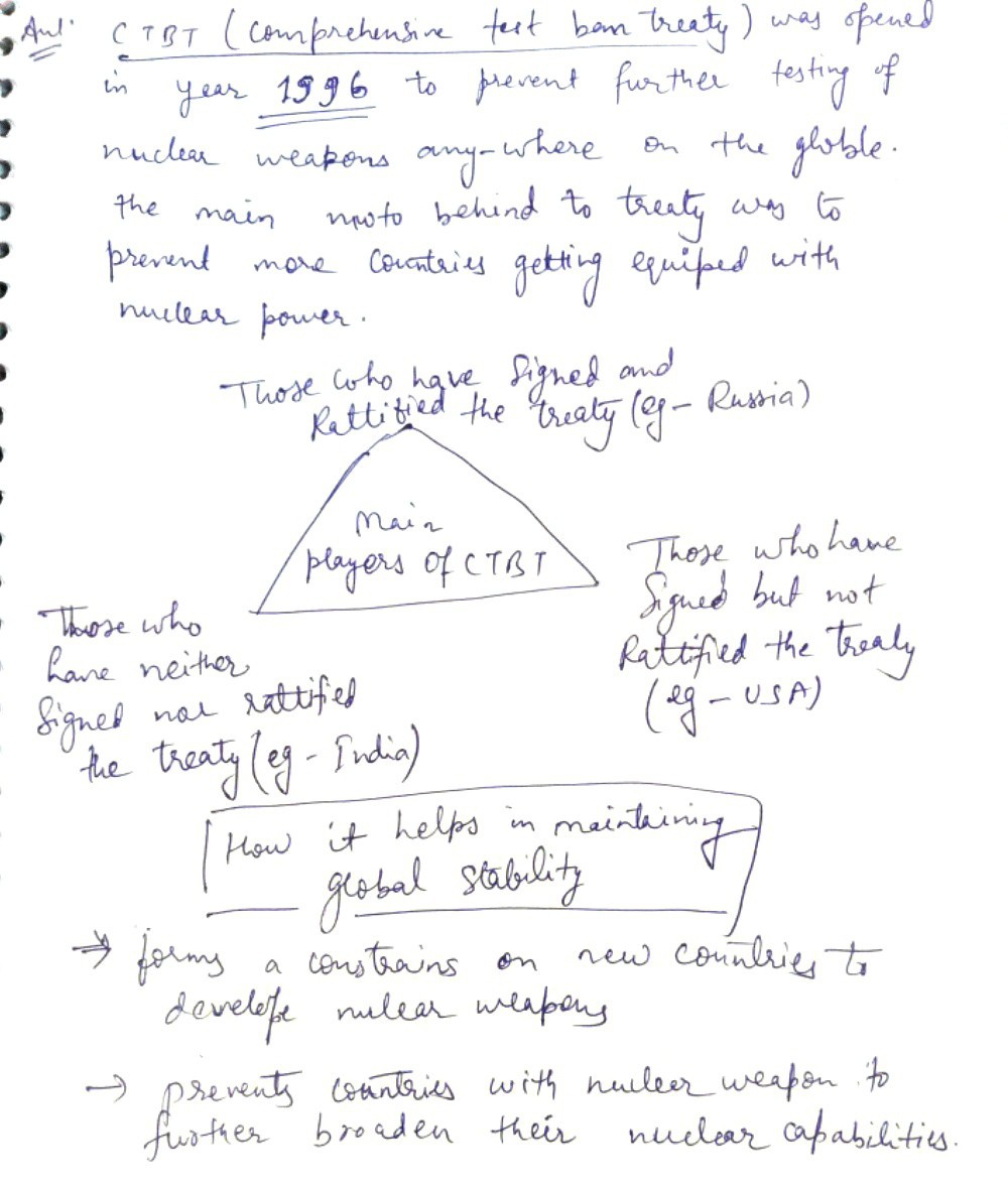 Answer is nice …..just one thing, “Recently Russia indicated” + “1 st point” should have been before the heading “CTBT contributions to prevent proliferation”