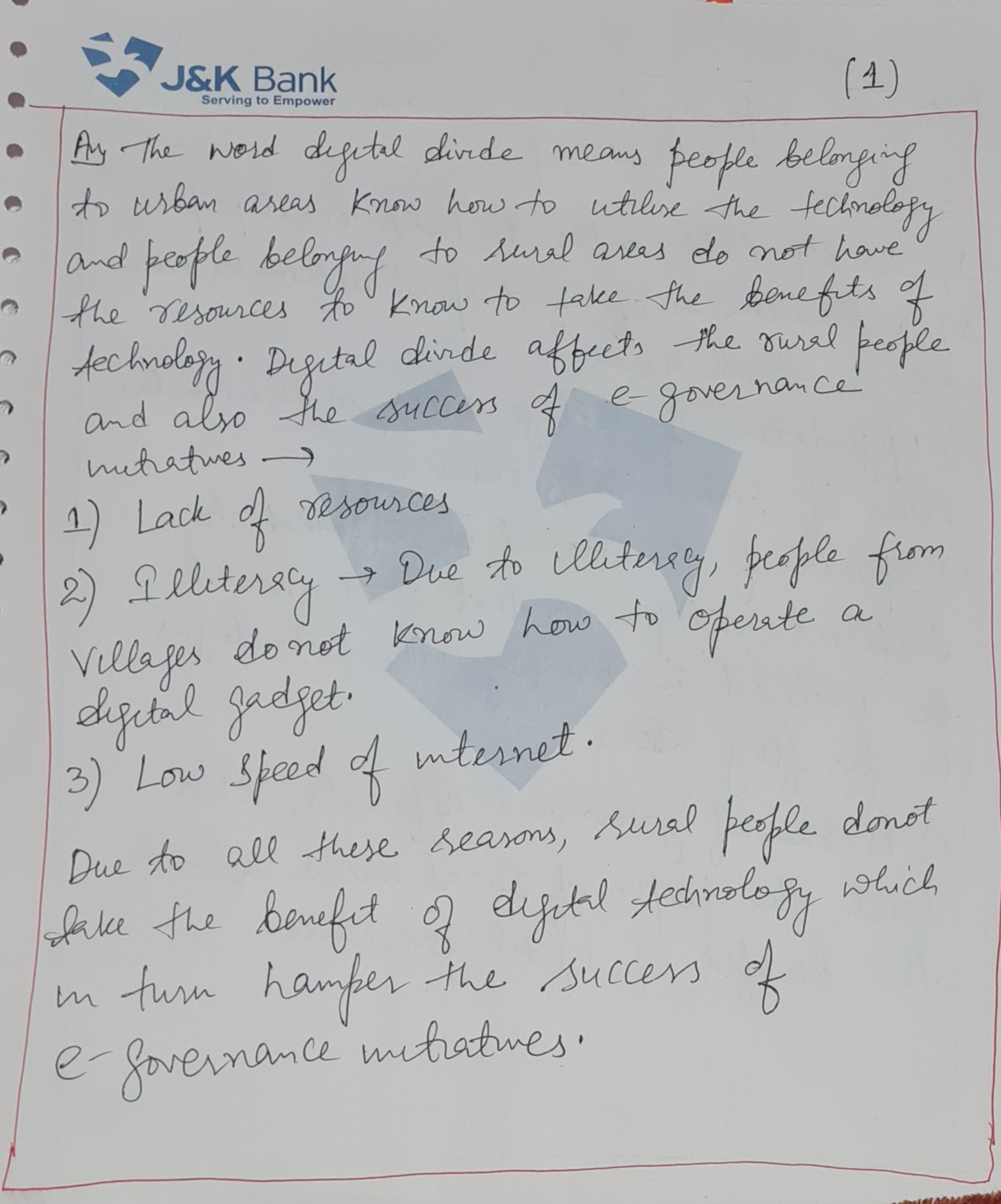 For instance: Low bandwidth in villages under the Digital India initiative affects the functionality of e-governance platforms, hindering services like Aadhaar verification and digital payments.