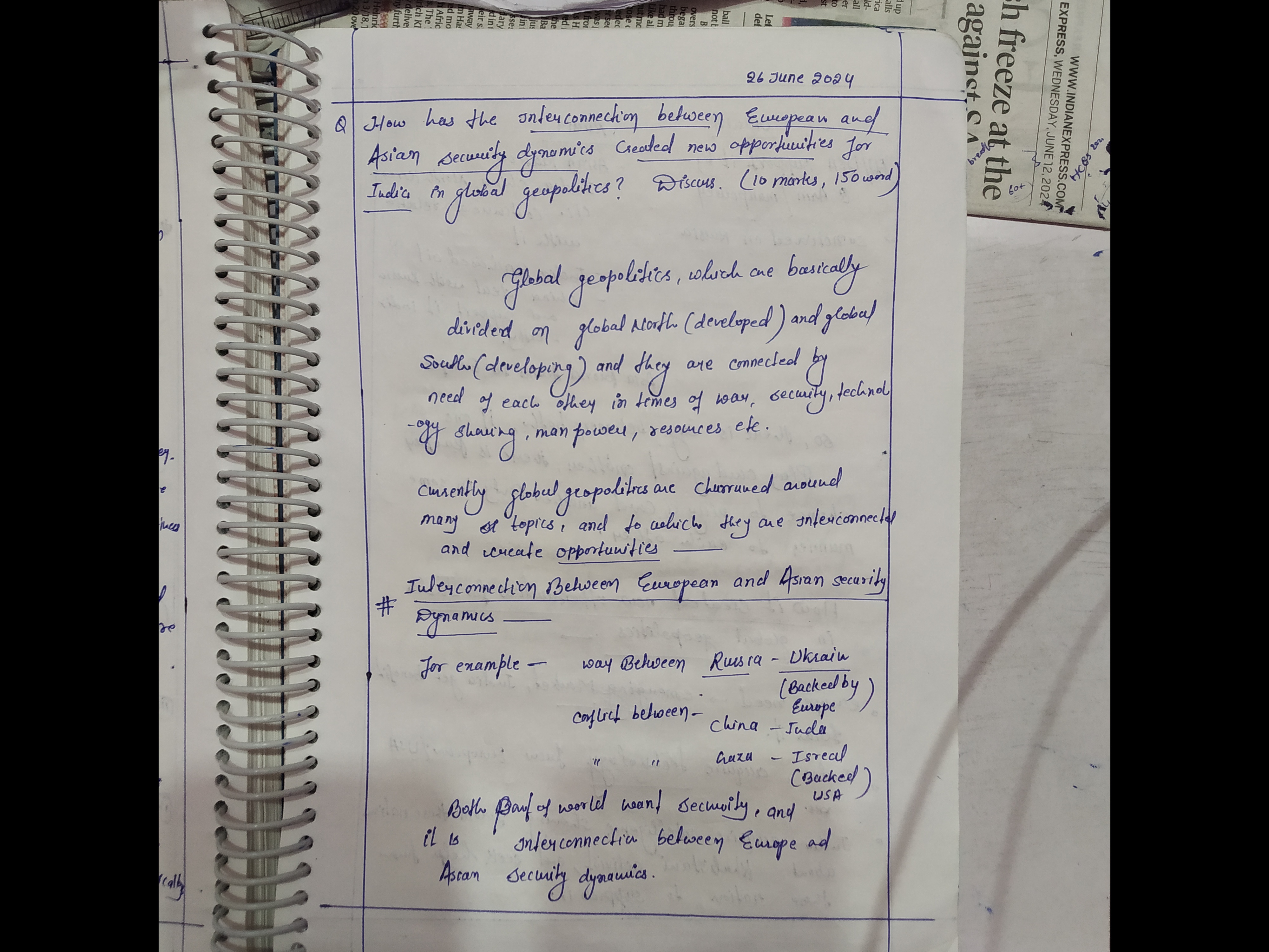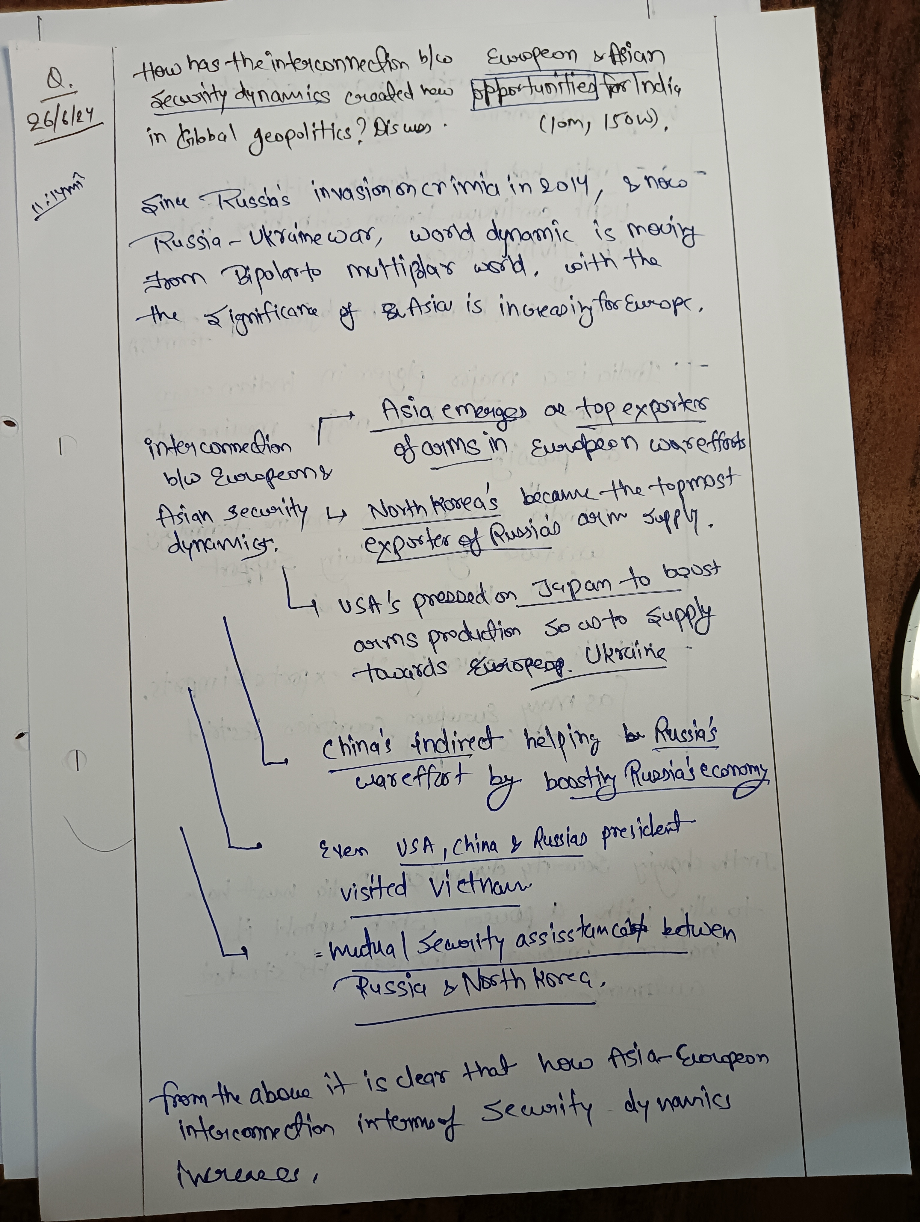 - Detail the evolving security dynamics between Europe and Asia and its implications for India.